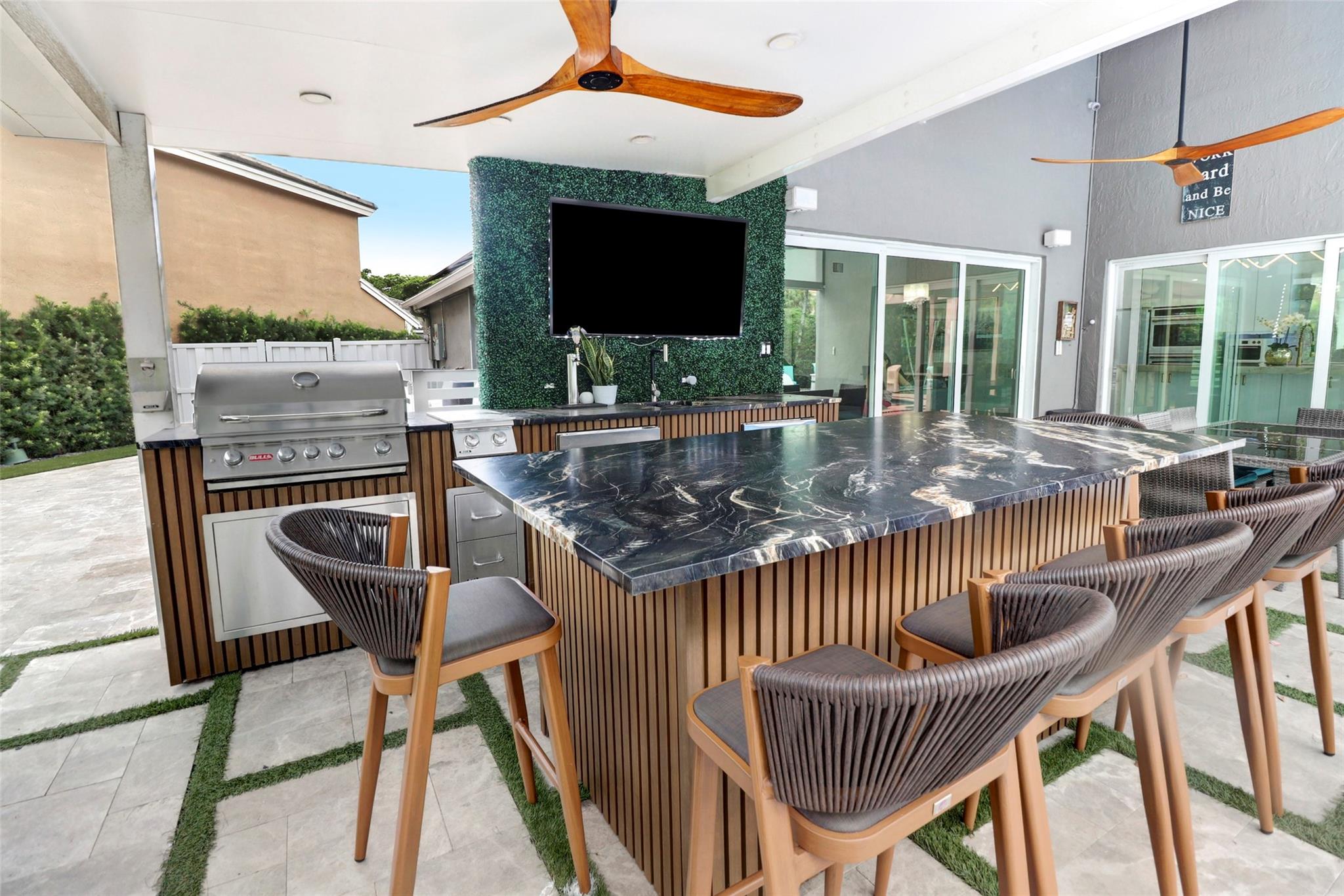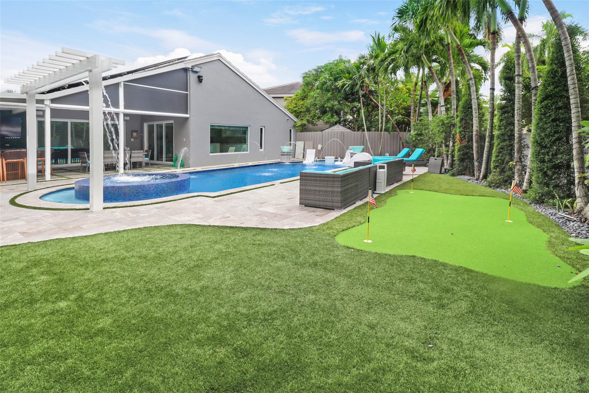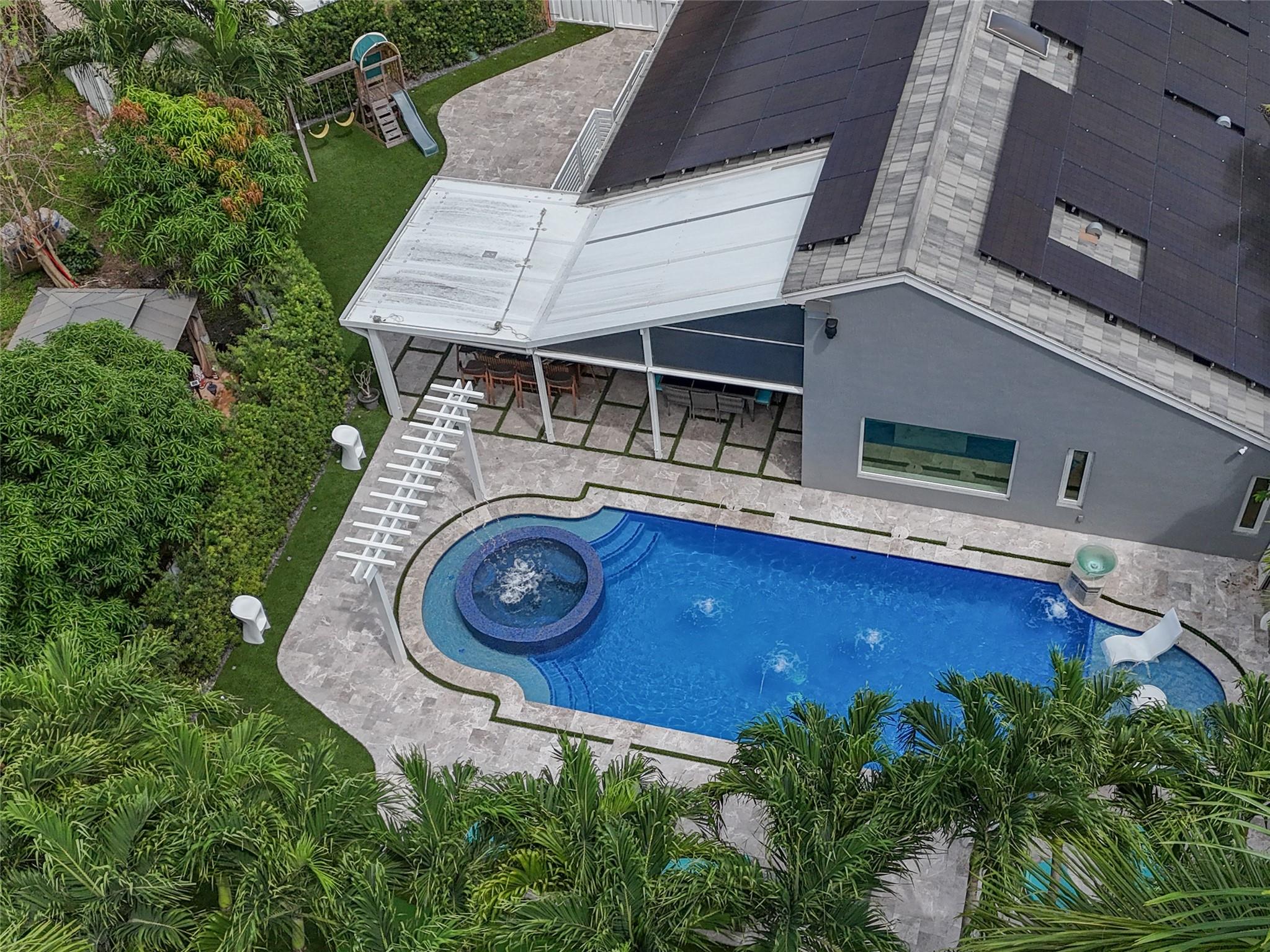 Welcome to your private resort-style retreat! This updated home offers the perfect blend of luxury, comfort, and functionality. Step outside to your backyard oasis featuring a sparkling resort-style heated/cool pool & jacuzzi with waterfall, fully equipped outdoor kitchen, lush artificial grass, and kids’ playground. Inside, enjoy a modern kitchen with high end finishes and new upgraded appliances. The open layout creates a warm and inviting flow throughout the home. Energy efficiency meets style with solar panels that keep utility low. It has been thoughtfully upgraded to provide peace of mind and everyday convenience. This home truly has it all—luxury, sustainability, and family-friendly spaces—ready for you to move right in!
