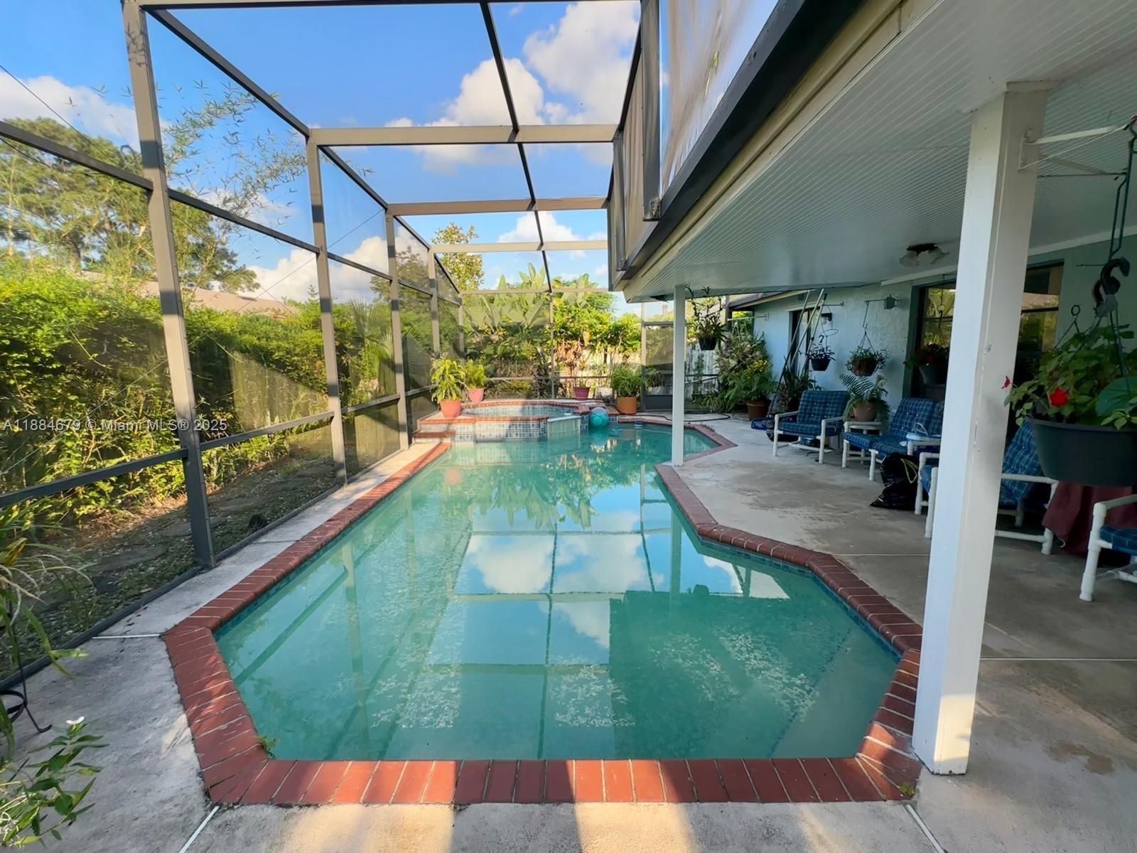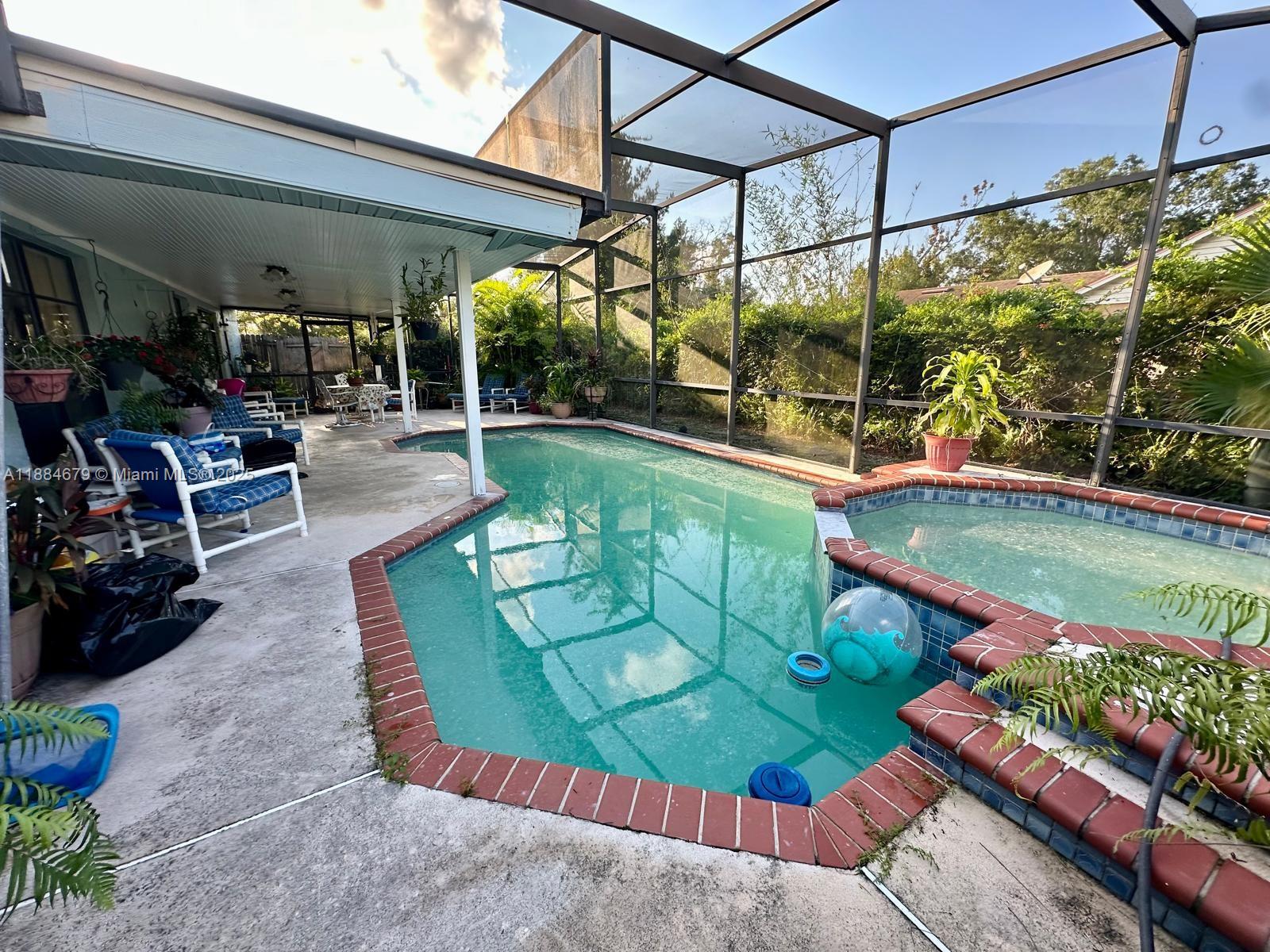 JUST REDUCED. Corner lot in sought after Hunters Trace offering plenty of space and potential with a split floor plan and inviting outdoor retreat. The home includes a kitchen/living room with a cozy fire place, a formal family room, formal dining room, and laundry room. The master bedroom en suite is on one side of the home, while the three additional bedrooms are located on the opposite side providing both privacy and functionality. Outdoors, enjoy Florida living with a screened-in pool, and spa with a gas heater, ideal for unwinding or entertaining. While the home is well-maintained, it offers the opportunity for updates and personal touches. Conveniently located near shopping, dining, and major roadways, this home is full of potential to become your perfect Orlando retreat.