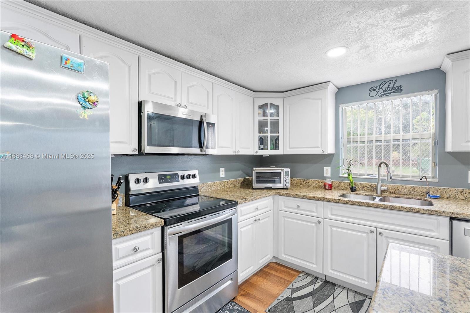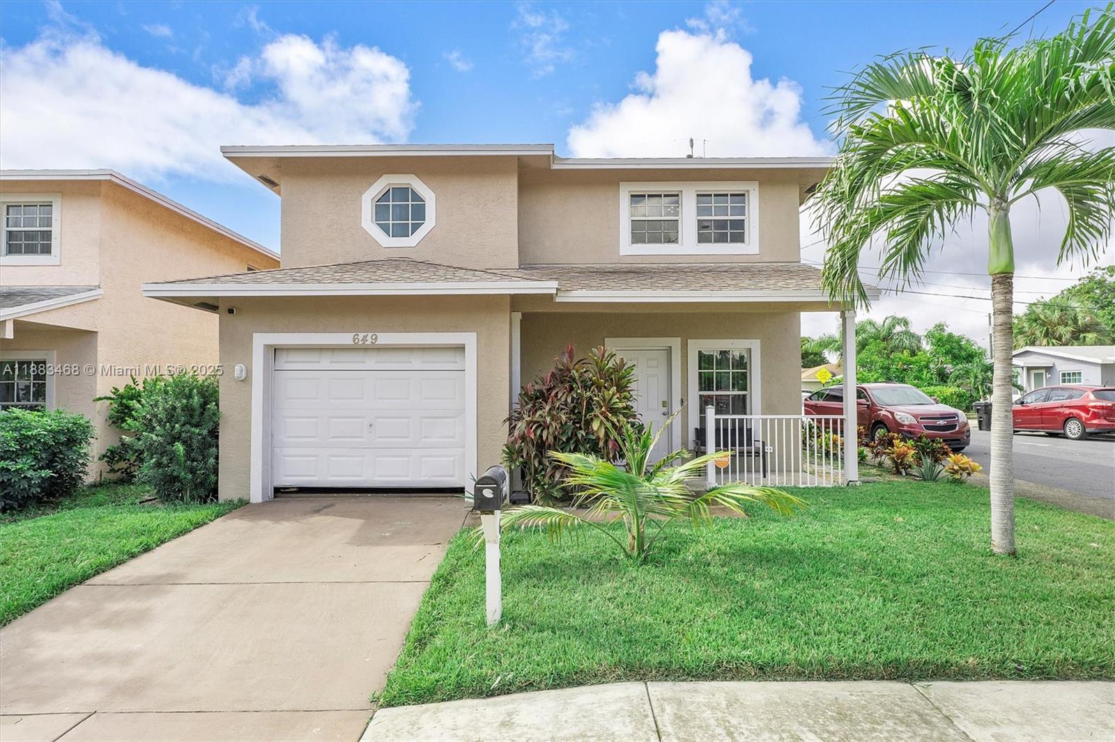 No HOA! Welcome home to style & comfort! This spacious home blends smart updates with a welcoming open design. Upon entry, you’ll be greeted by a grand two-story entry & a statement chandelier that sets the tone for the entire home. The open floor plan creates the perfect flow from living to dining, while the updated kitchen with modern appliances makes cooking a delight. Upstairs you’ll find updated flooring & nicely sized rooms, each with its own walk-in closet. Newer A/C & water heater, appliances included (plus an extra fridge in the garage!) & hurricane shutters for peace of mind. Garage, security cameras & thoughtful updates throughout make this home truly move-in ready. Whether entertaining or relaxing, this home offers a lifestyle of comfort & practicality with a touch of elegance.