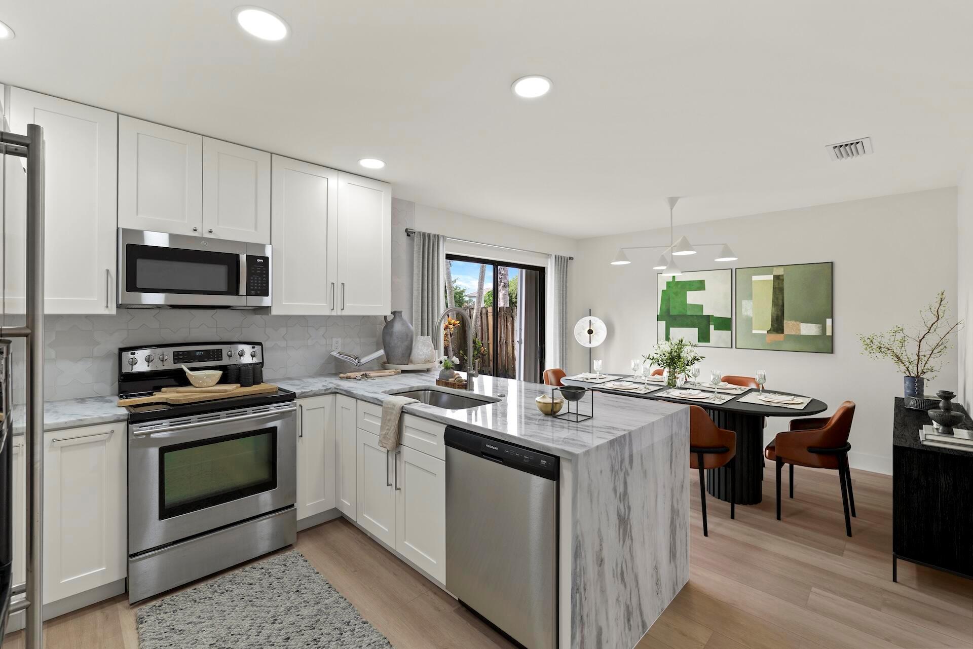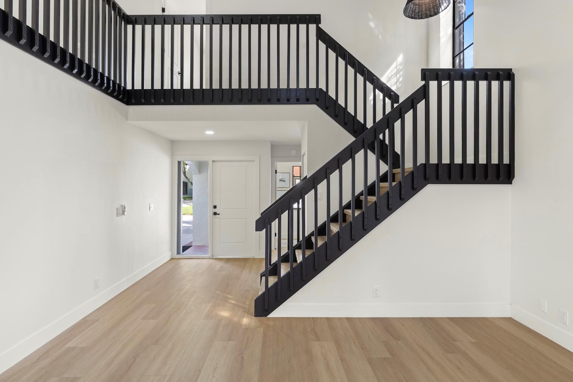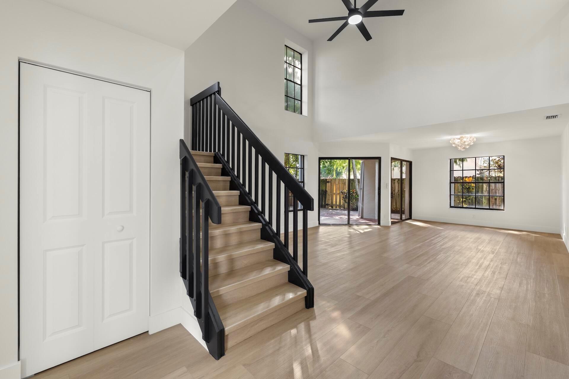 Move-In Ready Wellington Home | 4 Bedrooms | No Rental Restrictions | Low HOABeautifully updated 4BR/2.5BA in the heart of Wellington, close to equestrian venues, schools, and amenities. Features a bright open layout and fully renovated kitchen with white shaker cabinetry, marble waterfall island, and modern finishes. Recent upgrades include fresh paint, new doors, baseboards, LVP flooring, refinished stairs, lighting, fans, and new A/C. Primary suite offers walk-in closet and oversized bath with dual vanity and upgraded shower; guest bath also updated. Spacious backyard with mature shade, accordion shutters, impact window, and garage storage. Community amenities include lakefront pool, dock, and picnic area.