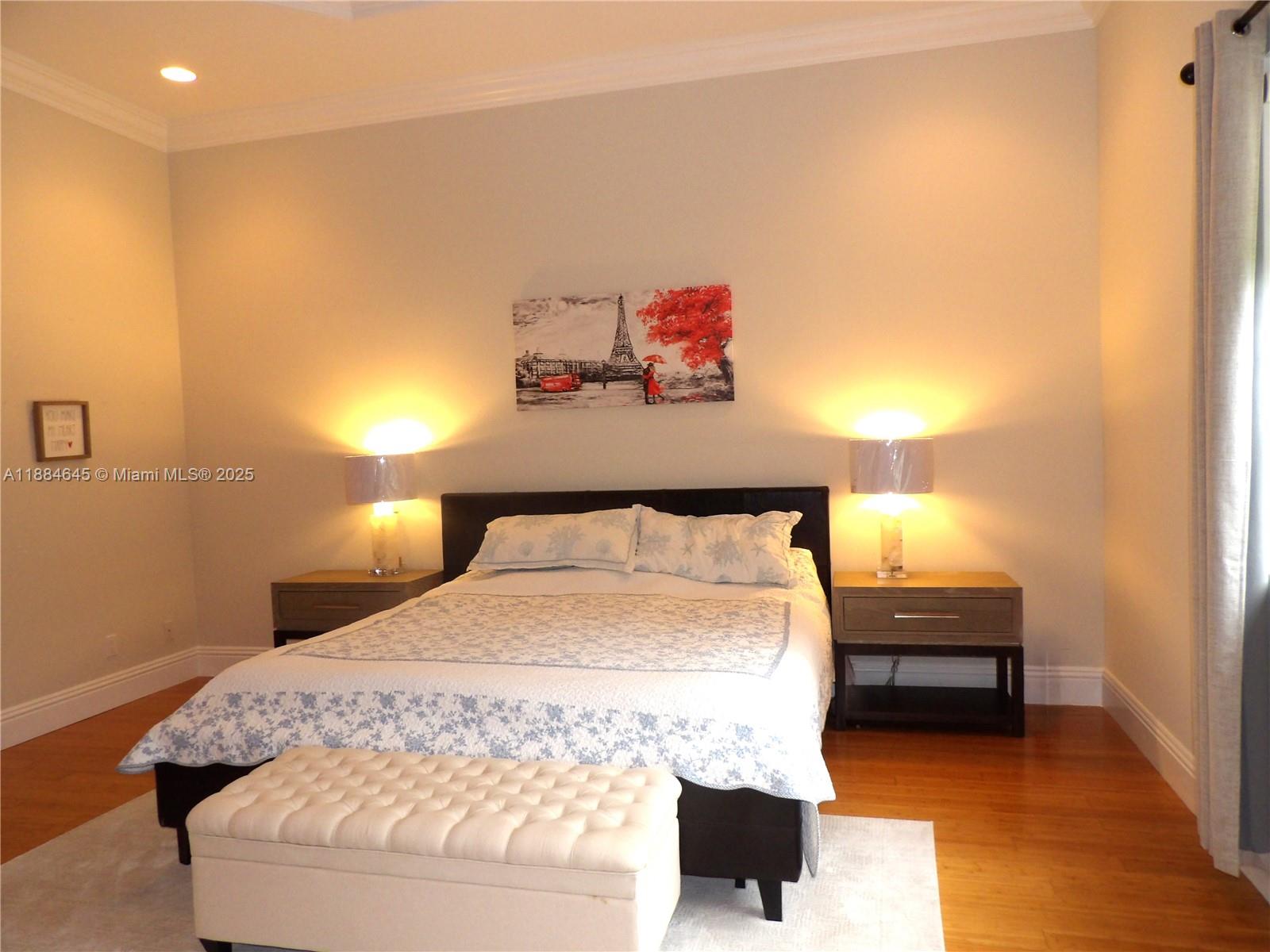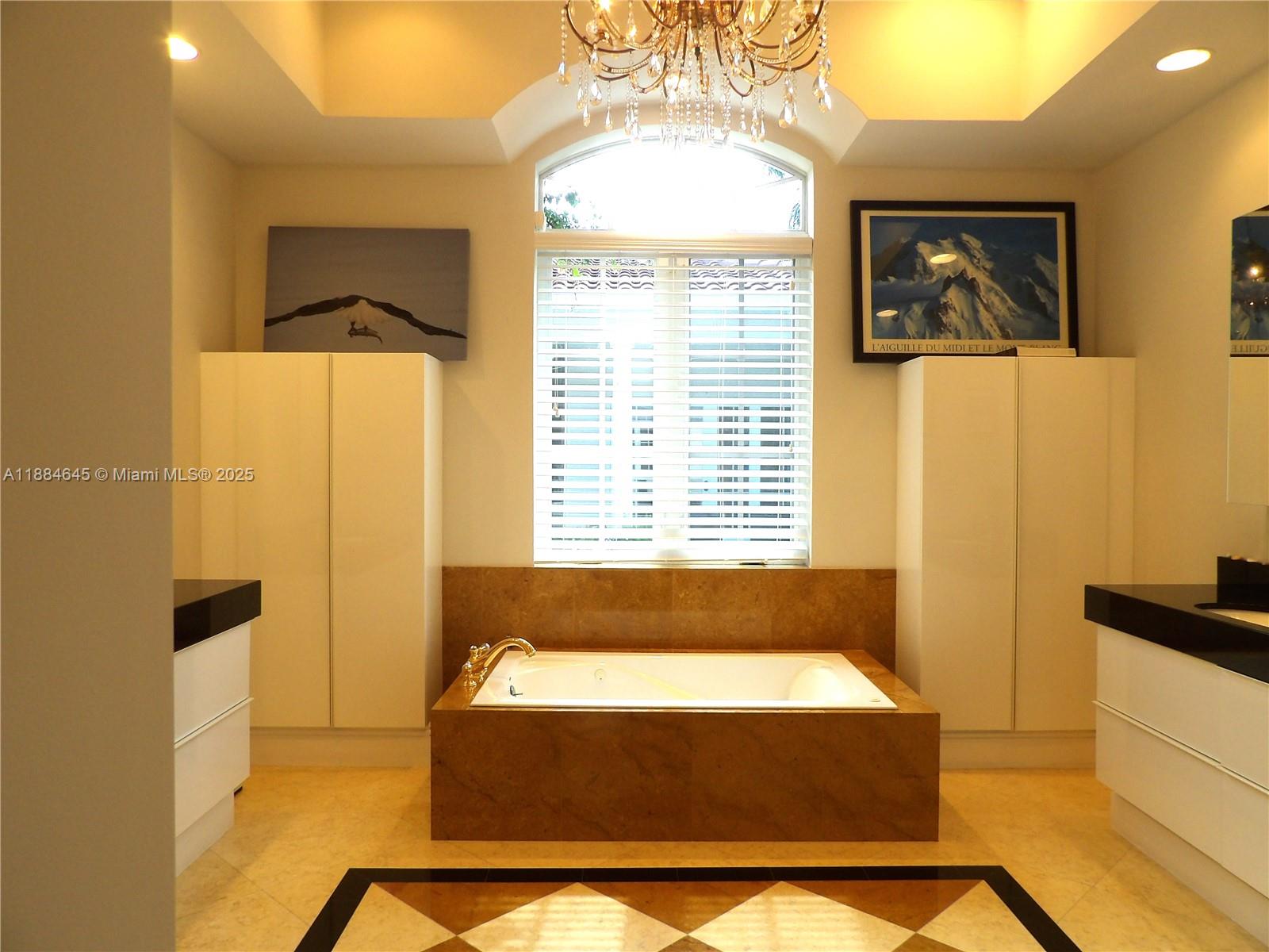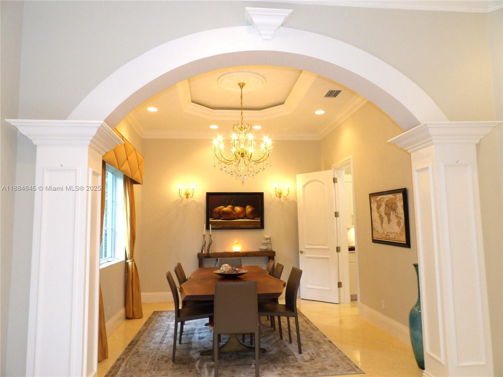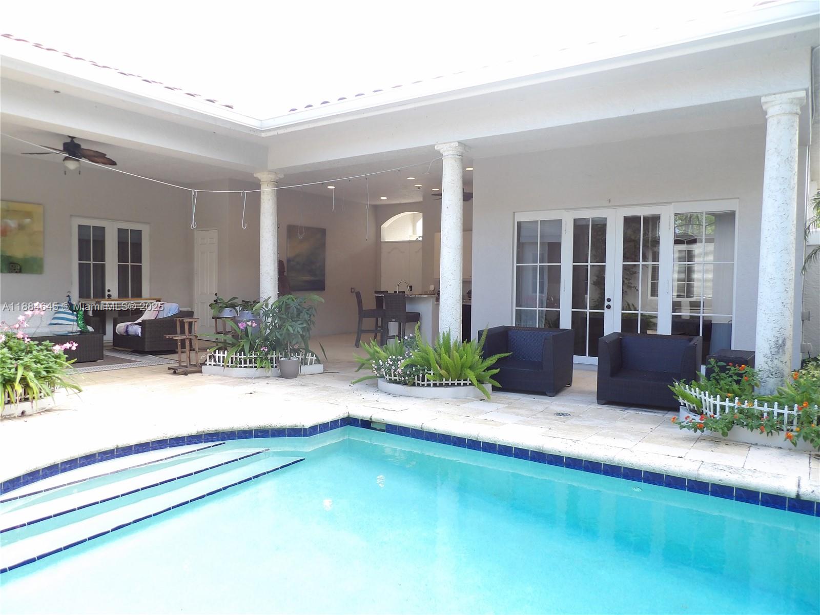 Elegant custom estate in prestigious Presidential Estates, built in 2008 with hurricane-safe construction rated to 240 mph. This home offers 4 spacious bedrooms, an office, and 3.5 baths. The classically center courtyard true private retreat features a private guest quarters, pool, fountain, and summer kitchen—perfect for entertaining or relaxing. Inside, a brand-new quartzite gourmet kitchen pairs with solid wood cabinetry, seemles tile flooring. Elegant details include Egypcian marble thougout, Swarovski crystal chandeliers, and gold accents for timeless sophistication. Set on a 110x137 lot plus a ¼-acre canal easement with direct access to Lake Mangonia, two kayaks included. Just minutes to downtown, beaches, airport, and premier shopping. This home offers both luxury and convenience.
