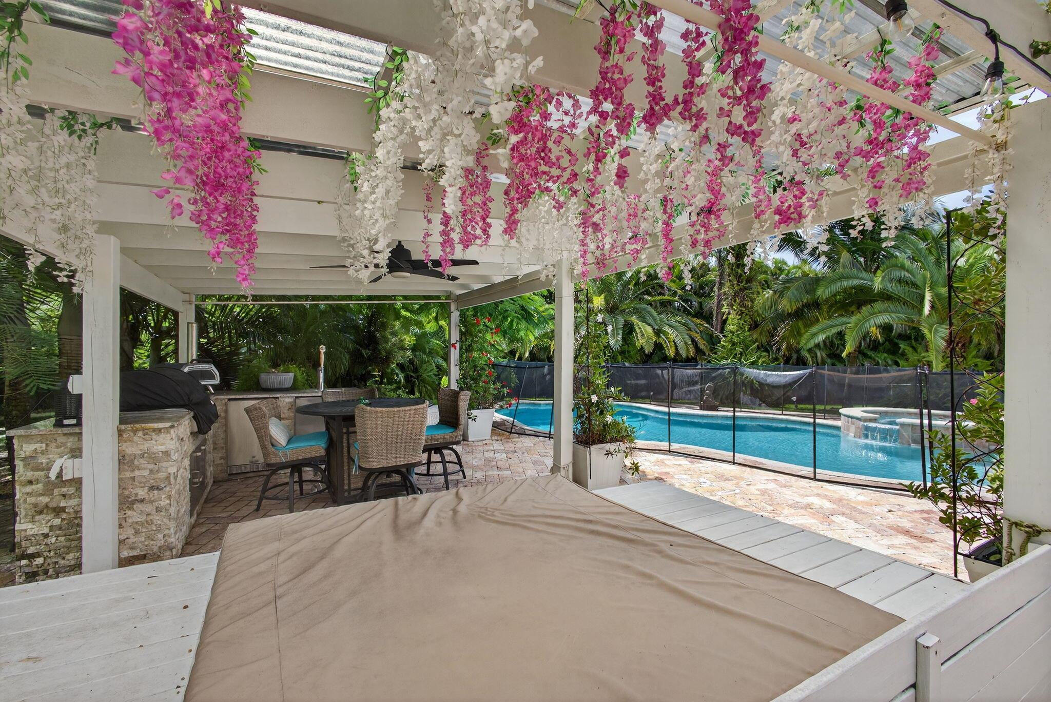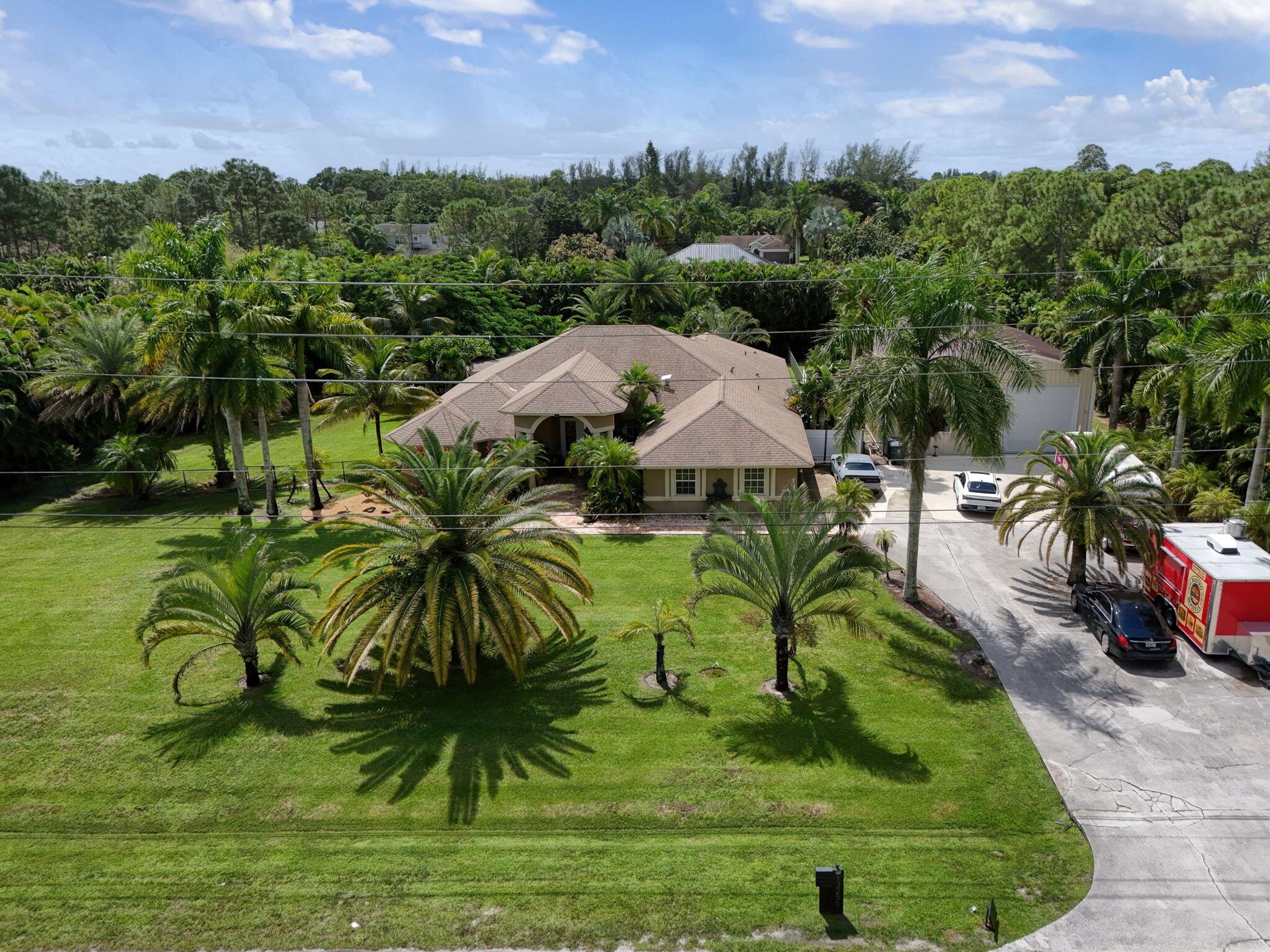 Discover a rare opportunity to own 2 buildings on 1.37 acres in a NO HOA restriction-free community. The spacious POOL home features 2 Master Suites, open floor plan, new kitchen. SUMMER KITCHEN (build in 2023) with grill, refrigerator, and keg cooler, perfect for entertaining. The 3-car garage includes a 2-car bay currently finished as an A/C flex room. In addition, a free-standing 1,700 sq. ft. insulated and fully air-conditioned building (build in 2023) with an office, half bath, WAREHOUSE space & GARAGE. Paved road access, abundant storage makes this property ideal for both personal enjoyment and business use. Great location, 5min. from brand new Publix Shopping Plaza at Avenir Town Center (Walgreens, restaurants & more) on Northlake & Coconut Blvd)