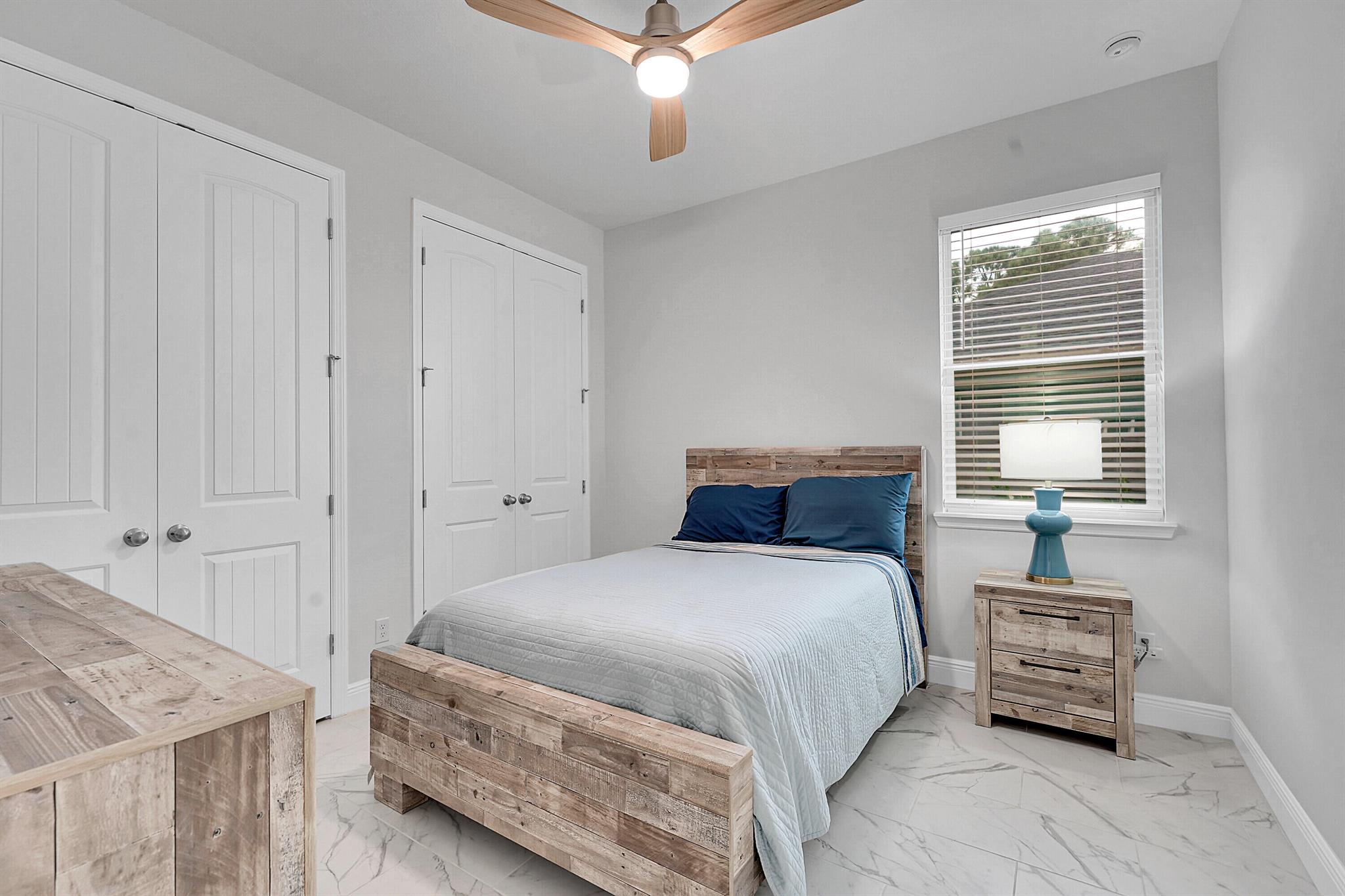 Welcome to your dream home! Built in 2024, this immaculate single-family home combines modern coastal elegance with comfort. Conveniently located near I-95 and the Turnpike, you'll have easy access to everything the Treasure Coast has to offer. 4 spacious bedrooms | 2 full bathrooms, Split bedroom floor plan with 9-foot ceilings & open-concept design. Porcelain tile floors throughout. Gourmet kitchen with 42'' white shaker cabinets (soft-close). Quartz counters throughout! Spa-like primary suite with a luxurious walk-in shower featuring dual shower heads, His and her walk-in closets! Large fenced-in backyard, perfect for pets and entertaining 2-car garage with upgraded polyaspartic flooring (10-year warranty). No HOA - enjoy freedom and flexibility. Minutes from I-95 and the Turnpike, with