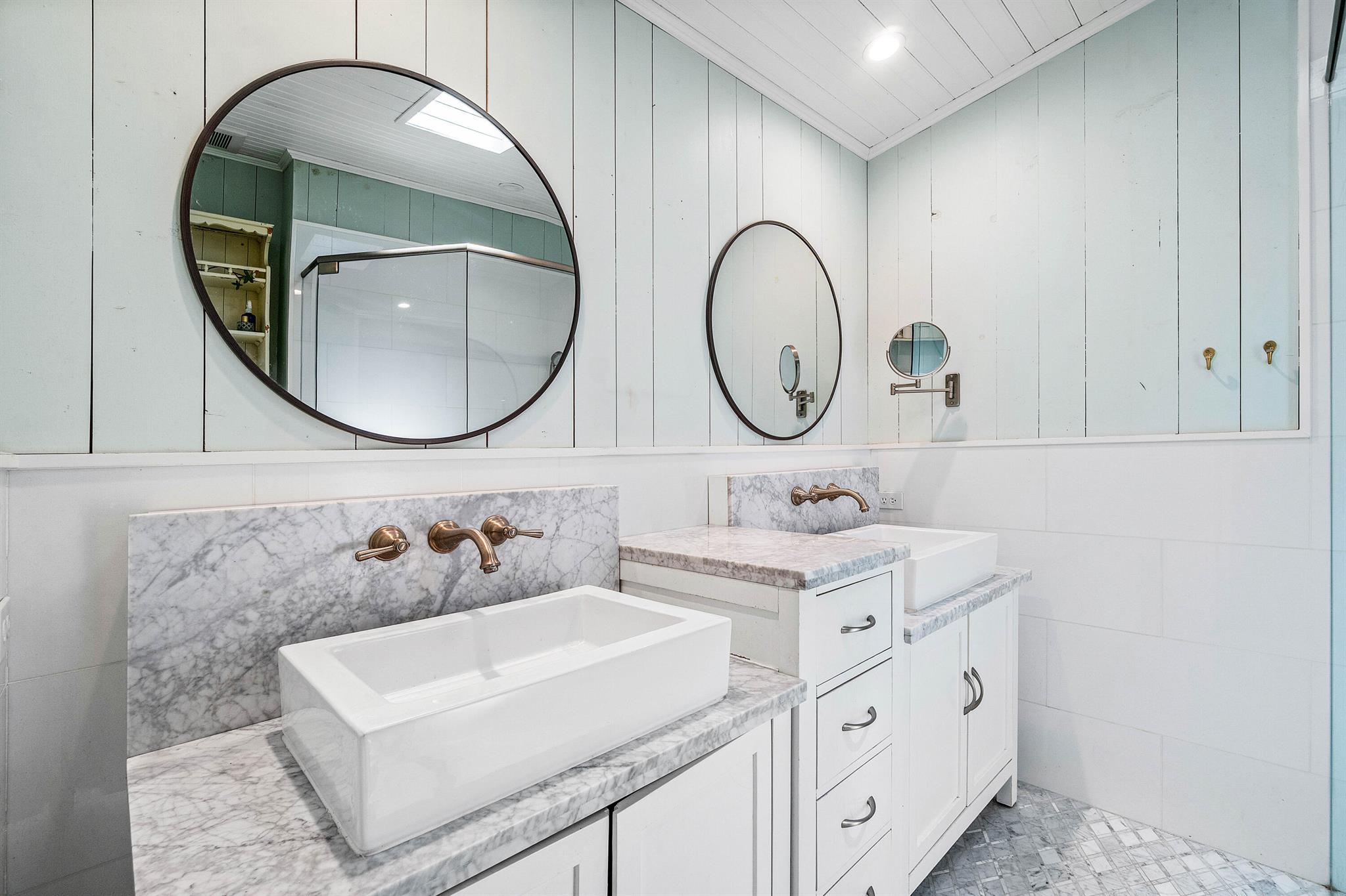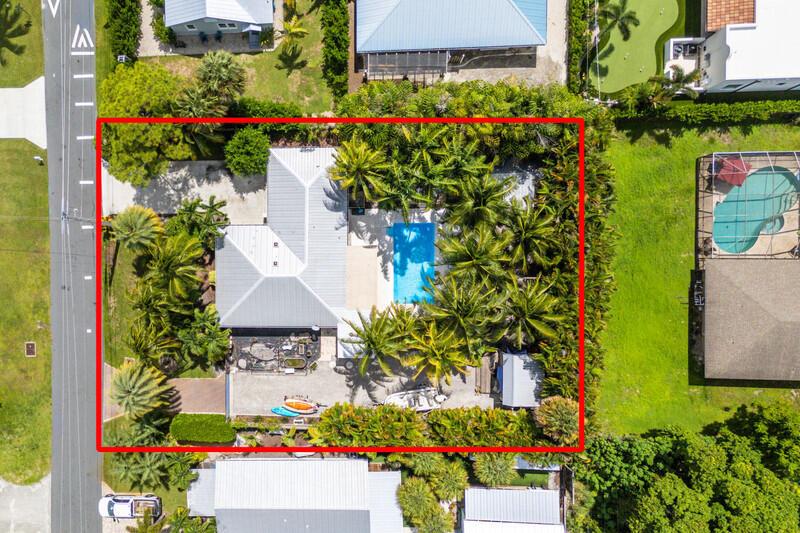 Located in the heart of downtown Stuart, this beautifully updated mid-century home offers 3 bed, 2 bath, and sits on over 1/3 of an acre. Warm wood details, including a unique curved slatted wall, add character throughout. The air-conditioned garage doubles as a versatile flex space, while the upgraded bathrooms feature high ceilings, skylights, and elegant finishes.The double lot is the true standout, offering a spacious yard, heated saltwater pool, summer kitchen, RV hookup, and two finished bungalows -- perfect for guests, home offices, or creative studios (w/income producing potential). Also, an outdoor shower, room for boats and outdoor toys, & space for a garden.Just steps from downtown restaurants, shops, cafes, and scenic waterways - Live like your always on vacation