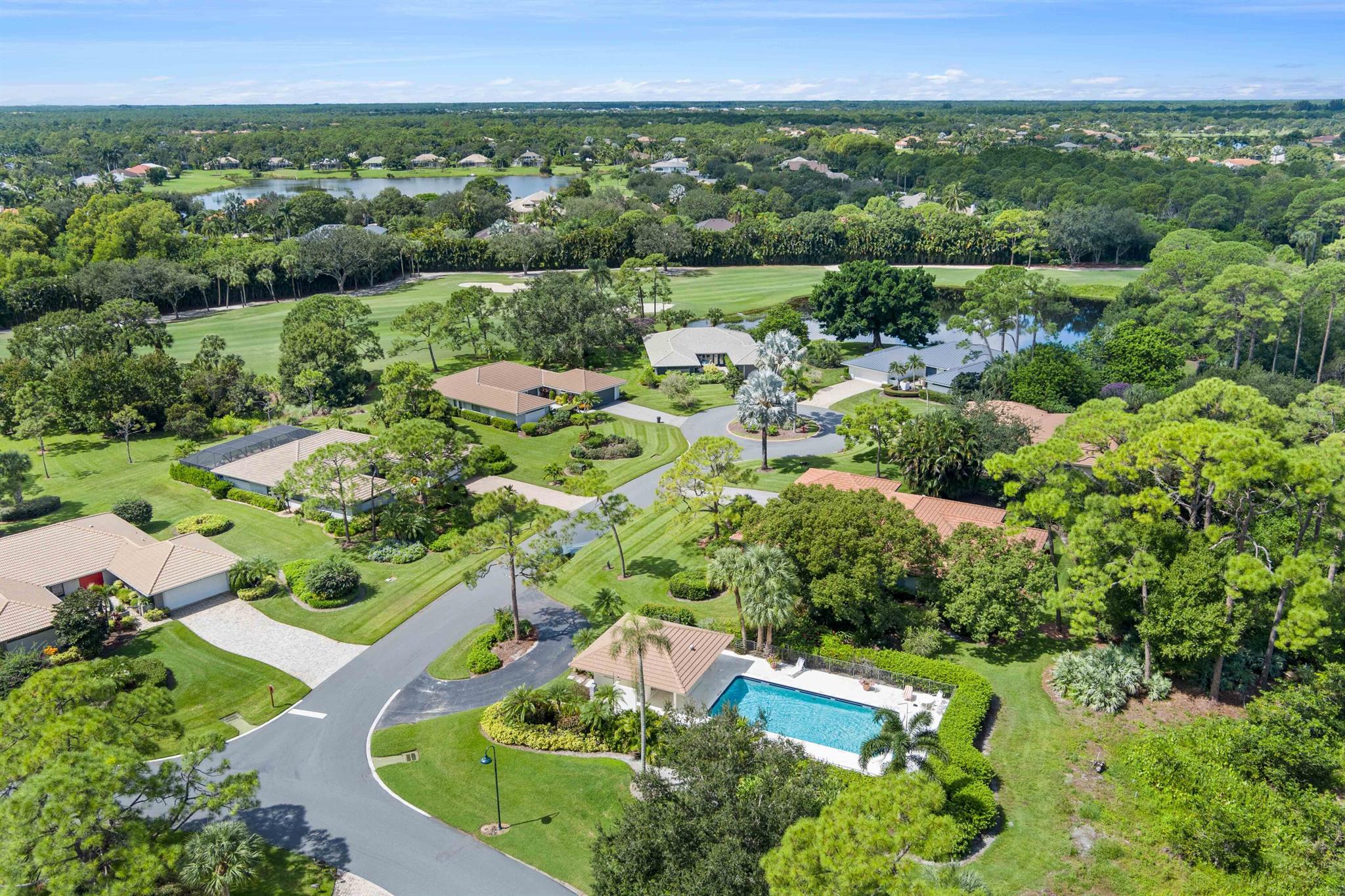 Tucked away on a private cul-de-sac, this beautiful home sits on an oversized lot and comes with impact windows for peace of mind. From every window, you can enjoy panoramic views of the golf course and the sparkling pond, creating a setting that truly feels like a retreat.Inside, soaring cathedral ceilings enhance the spacious living and dining rooms, while the bright eat-in kitchen is filled with natural light and offers plenty of space for casual dining. The home features tile flooring throughout, plantation shutters on the windows, and a screened lanai with a beautiful awning, offering the perfect spot to relax outdoors.The air-conditioned garage, provides extra comfort and includes dedicated space for a golf cart, making it ideal for the Florida lifestyle !