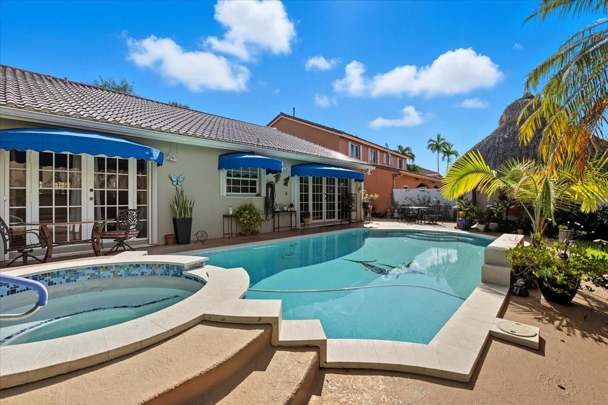 Welcome to your dream home! This beautifully maintained 3-bedroom, 2-bath residence features an open-concept floor plan perfect for modern living and entertaining. Step into the spacious living area with seamless flow into the kitchen and dining spaces, all filled with natural light. Enjoy your own private backyard oasis complete with a sparkling pool with salt water chlorination system, relaxing spa jacuzzi, and a charming cabana—ideal for hosting guests or unwinding after a long day. Conveniently located near major highways and popular shopping destinations, this home offers both comfort and convenience in one perfect package. Only 20 minutes to Hard Rock Stadium and in A+Rated Schools.