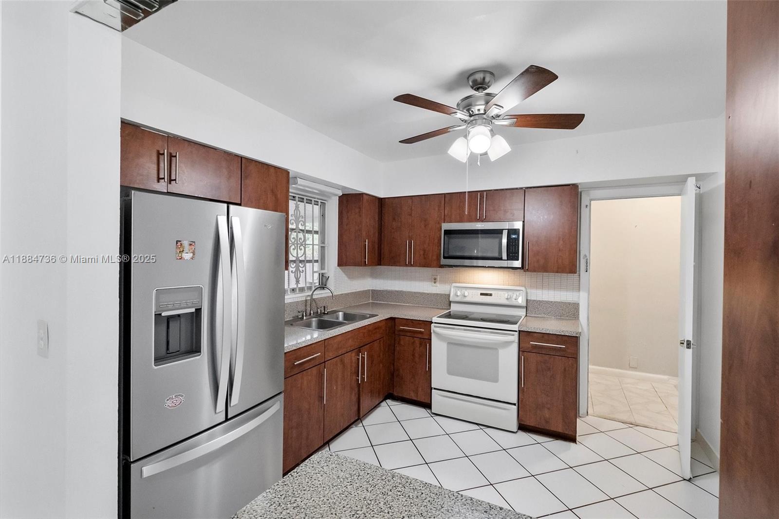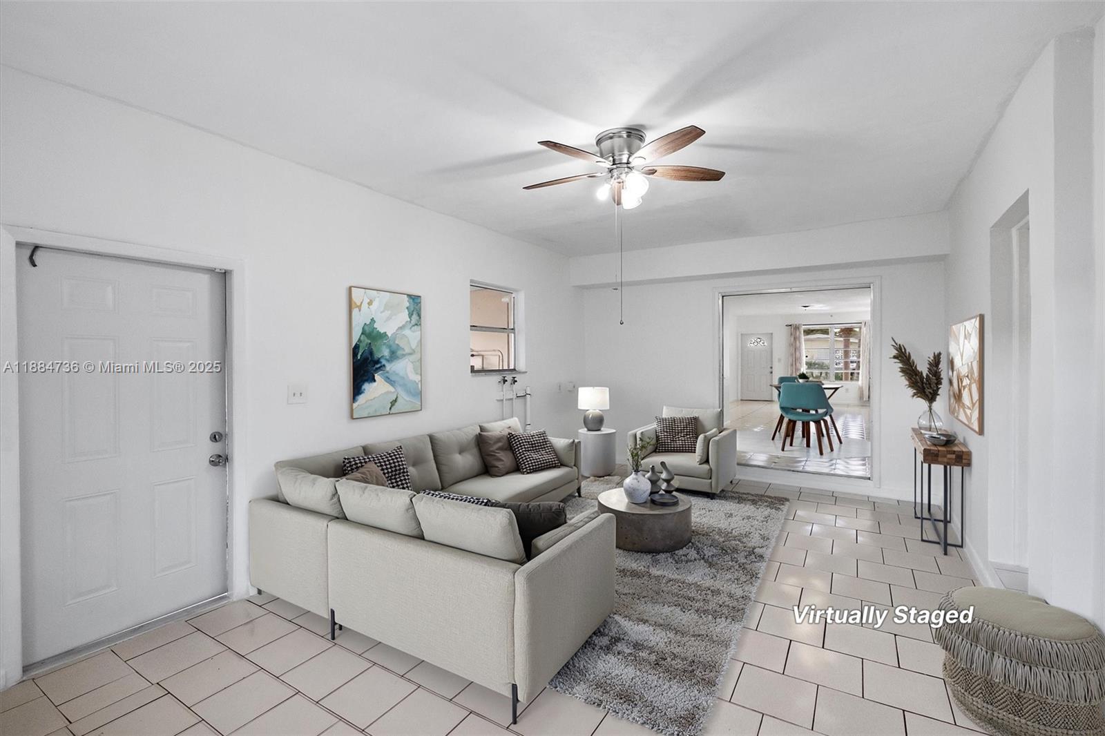 This charming 3-bedroom, 3-bath home features a bright, open floor plan with tile flooring that flows seamlessly from the living and dining areas into the family room. Freshly painted and move-in ready, it boasts a screened patio and spacious fenced backyard—perfect for weekend gatherings, pets, or your dream pool oasis. A brand-new roof (Aug 2025) and complete hurricane shutters offers peace of mind, while parking right at your front door adds convenience. Ideally located near the Golden Glades Interchange, sandy beaches, vibrant shopping, and popular restaurants, this home is an inviting choice as a primary residence or investment. No HOA fees or restrictions!