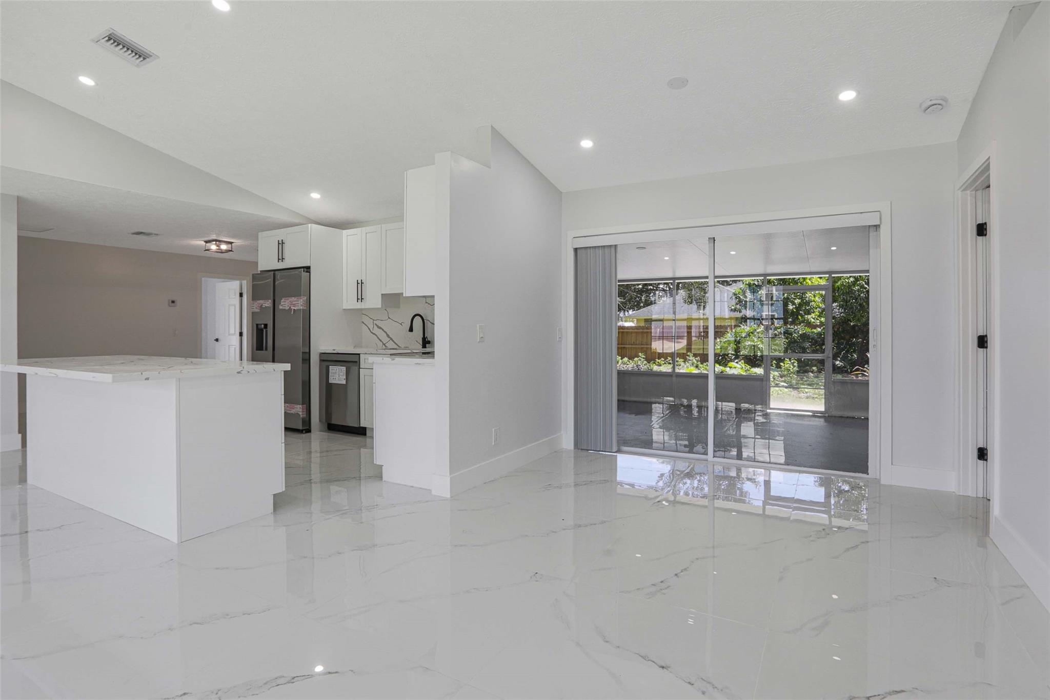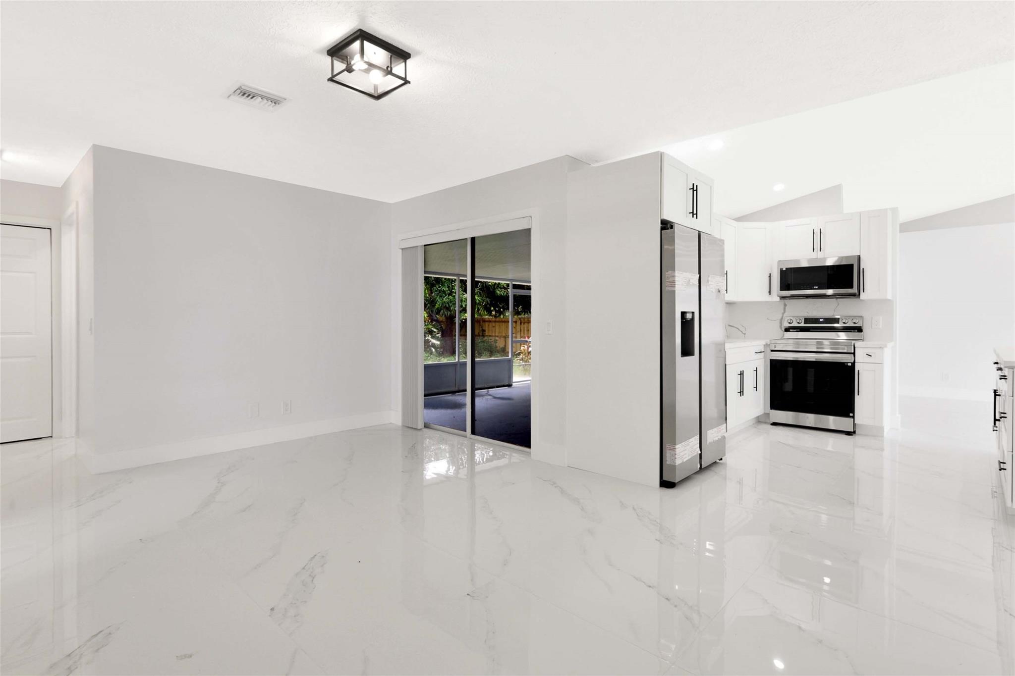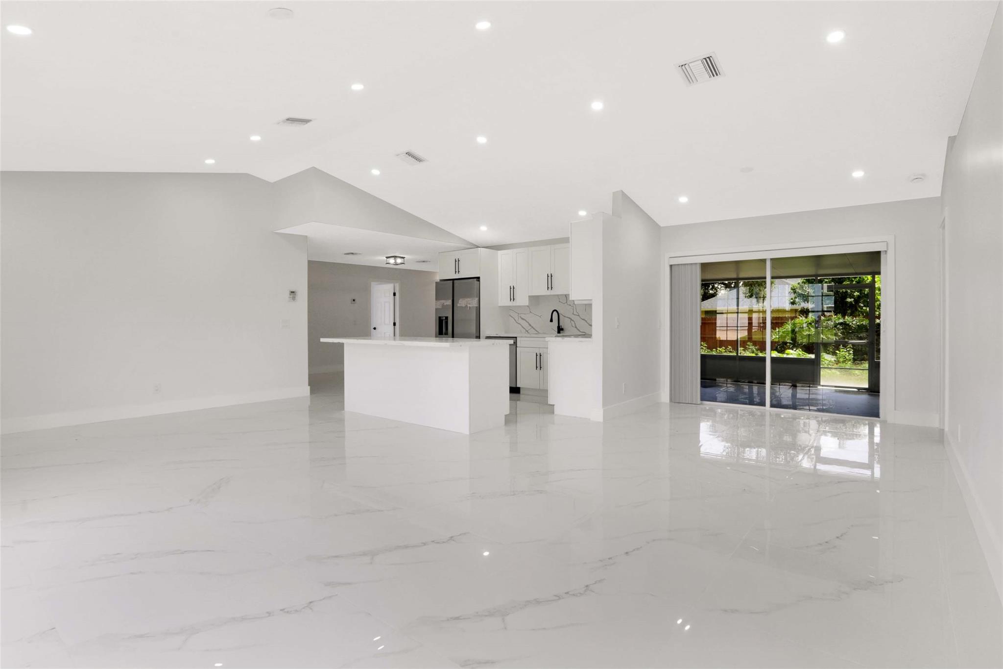 No HOA! unique styled non-cookie-cutter home! Step into modern Florida living with this beautifully renovated 3BR/2BA Port Saint Lucie home featuring a split-bedroom layout and 2-car garage. Recent upgrades include a new roof (2024) and central A/C (2025). The kitchen boasts 36" shaker cabinets, Calacatta quartz countertops with full backsplash, and stainless-steel appliances (2025). Sleek 32x32 porcelain tile runs throughout, with both bathrooms fully updated in 24x48 porcelain tile and contemporary finishes. Added features: LED recessed lighting, zebra blinds, matte black fixtures, and fresh interior/exterior paint (2025). Move-in ready, turnkey, and ideally located near shopping, dining, schools, and highways. Easy to show via Showing Time or LA.