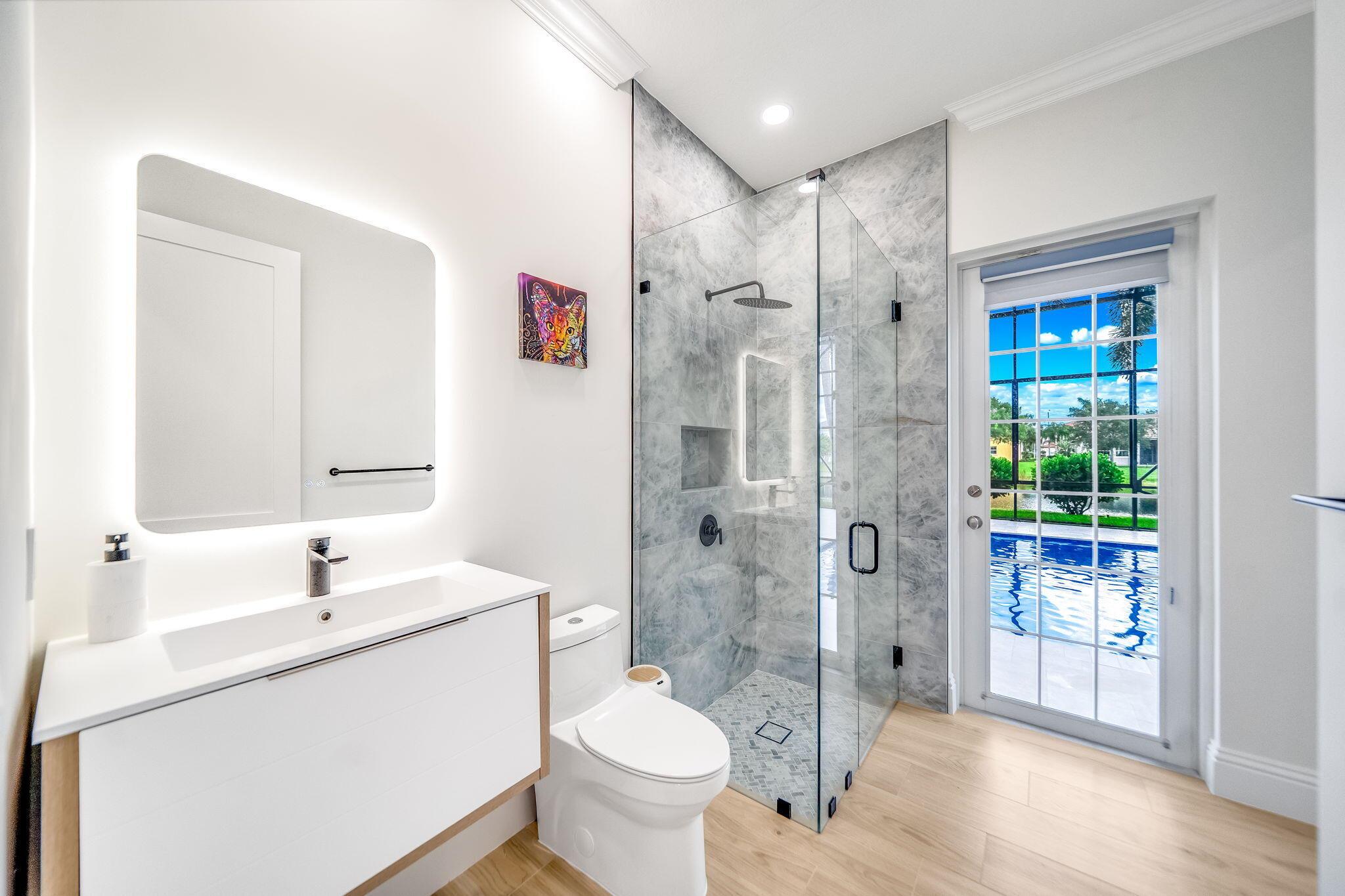 Welcome to Olympia! 5 bedroom, 5.5 bath estate home with office/den, huge flex room and loft area. Two-stories screen enclosure with sun protection top screens. Second level balcony. Humongous master suite wing with freestanding jacuzzi tub. Property outlines multiple built-ins throughout, top-of-the-line finishes, fully variable speed HVAC systems, multiple iPads and Jandy panel for smart home integration. Custom white oak stair railing with stainless steel rods. Walnut wood veneer wall panels entertainment TV wall. Circular driveway with lush landscape. Enormous pool with spillover spa and marble deck. Summer kitchen with 42'' 5-burners grill. Several smart features. Complete air conditioned gym and much more. Very unique property located in resort-style Wellington gated community.