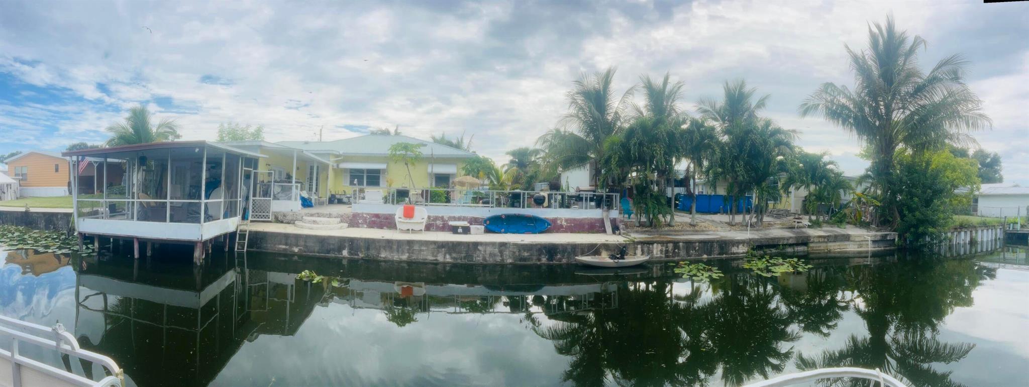 DOUBLE LOT, 1/3 ACRE CANAL FRONT with LAKE ACCESS 130' CONCRETE SEAWALL, JUST MINS FROM THE LOCK TO LAKE OKEECHOBEE. NO HOA. Space for your BOAT/RV. Unique opportunity to own your own Tropical Mini-Resort Waterfront Oasis! Tie Up Your Pontoon Out Back & Cruise the Canal to Lake Okeechobee. Tucked away in a peaceful community yet just minutes from town, this unique single-family home offers the perfect retreat for those looking to escape the hustle and bustle. Whether you're dreaming of a relaxing vacation getaway within driving distance from West Palm or a fisherman's paradise where you can catch fish right from your backyard, this home delivers. This home offers immediate livability and charm, while being thoughtfully priced for those who may wish to make personal improvements over