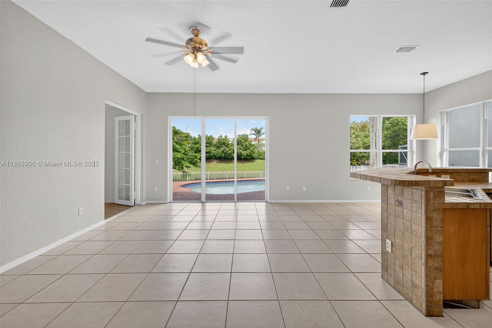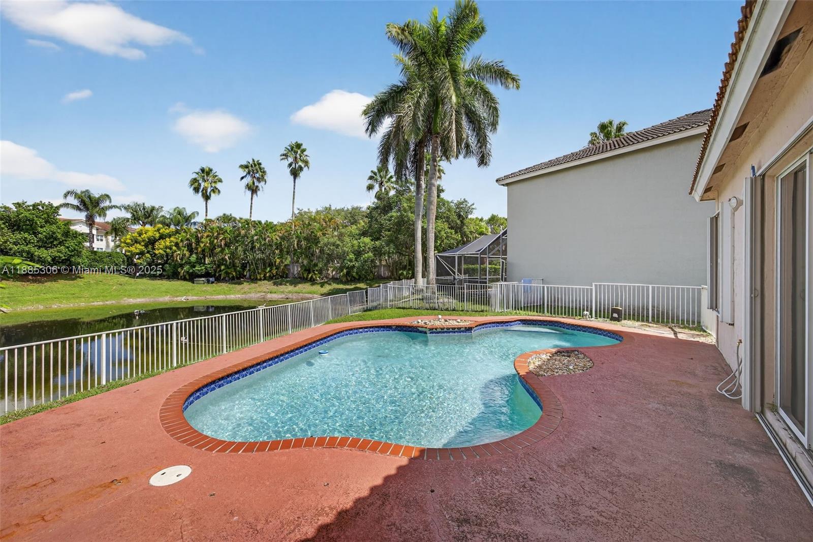 Great opportunity to live in this carpet-free 4-bedroom home with an open pool on a private waterfront fenced lot in this private gated East Parkland Community. The original covered patio area has been enclosed, offering a great den/sitting/nursery/office area off of the primary bedroom & more air-conditioned square footage. This flexible split floor plan with newer a/c & water heater allows 4th bedroom with no closet and double doors to be used as a bedroom, den, or office space. Home is bright and open with volume ceilings and offers a flexible floor plan with an Inside laundry room, oversized garage, accordion shutters, and a great convenient location. Priced to sell and make it your own with quick closing available. Monthly maintenance includes gate, community pool & lawn maintenance.