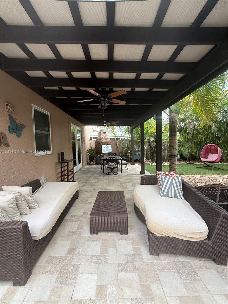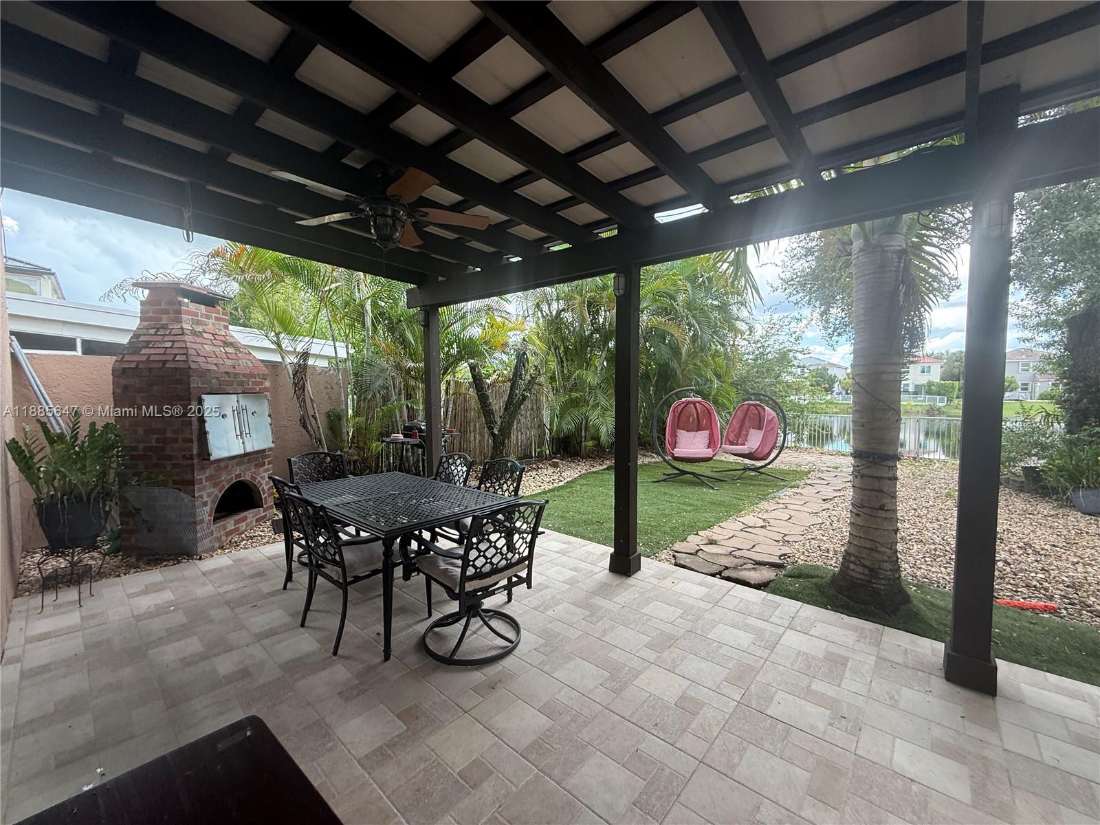 Highly Sought-after community gated with lots of amenities , This family oriented community home is perfect for as it's close to schools , shopping, restaurants . The home boast of new impact windows , French impact patio doors, White Quartz counter tops,White wood Cabinets, Spanish tiles thru out the property(on both Floors) , New Water heater 2025, Washer and Dryer 2025, AC 2018, dishwasher 2022, other stainless steel appliances 2023. Pergola 2023, Fence 2024.A Brick oven as well . Hook up for electric car the charger not included. This home is ready for a NEW FAMILY!