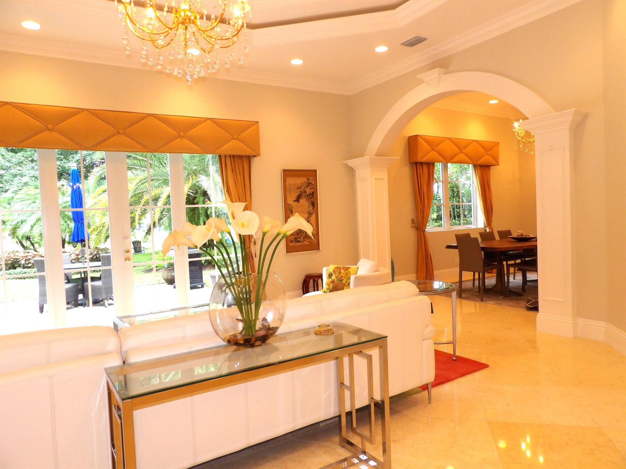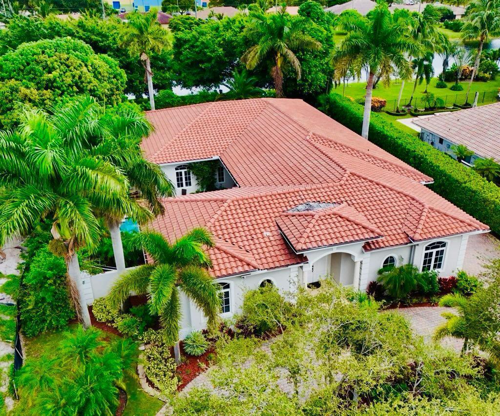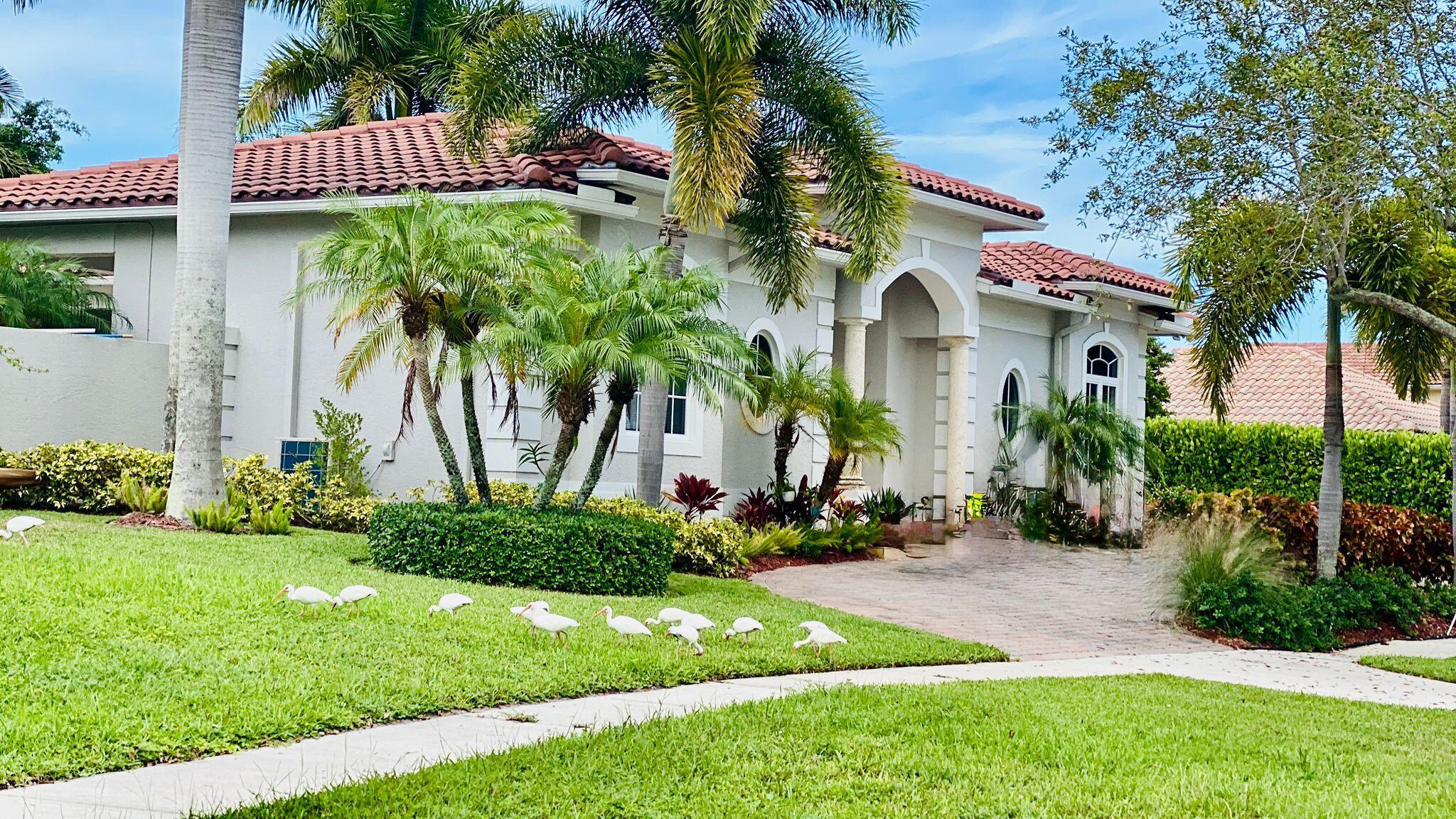 Elegant custom estate in prestigious Presidential Estates, built in 2008 with hurricane-safe construction rated to 240 mph. This home offers 4 spacious bedrooms, an office, and 3.5 baths. The classically center courtyard true private retreat features a private guest quarters, pool, fountain, and summer kitchen--perfect for entertaining or relaxing. Inside, a brand-new quartzite gourmet kitchen pairs with solid wood cabinetry, seemles tile flooring. Elegant details include Egypcian marble thougout, Swarovski crystal chandeliers, and gold accents for timeless sophistication. Set on a 110x137 lot plus a 1/4-acre canal easement with direct access to Lake Mangonia, two kayaks included. Just minutes to downtown, beaches, airport, and premier shopping. This home offers both luxury and convenience