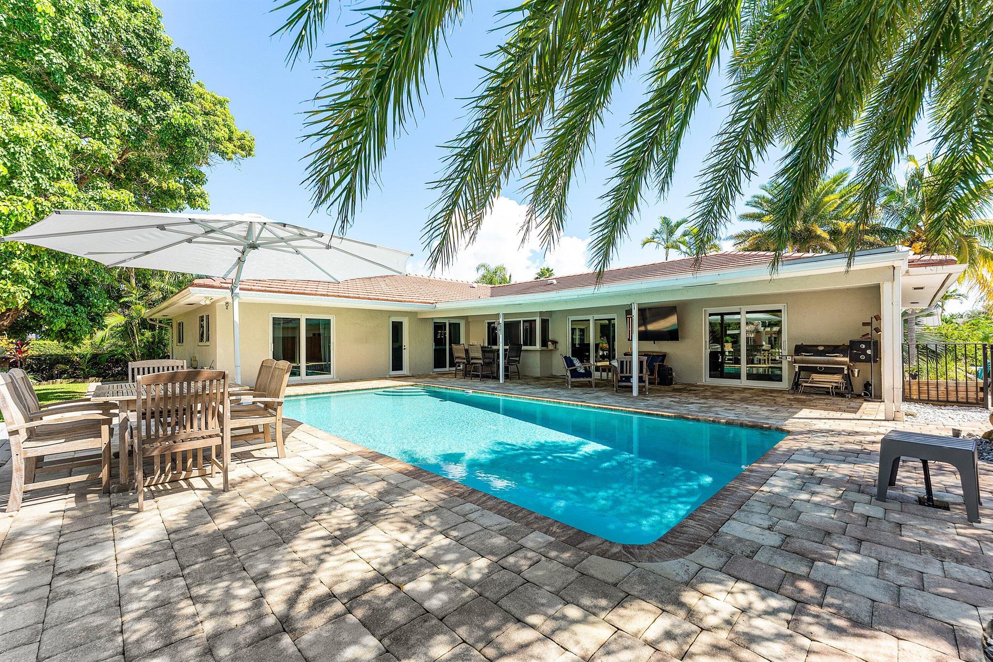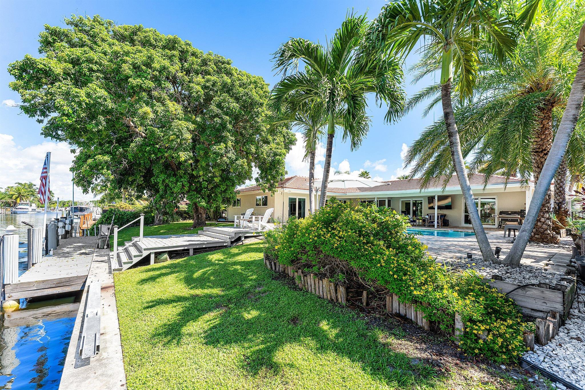 Welcome to 1219 SE 15th Avenue, a modern waterfront retreat in the heart of Deerfield Beach's coveted Cove neighborhood. With 90' of frontage and no HOA, you'll enjoy the ease of waterfront living on this oversized 10,600+ sf lot without restrictions. Bring your boat! Entertain freely, and make this home truly your own. Three spacious bedrooms plus a private office provide plenty of room to spread out, while the central kitchen featuring gas range and premium appliances makes cooking a centerpiece of the home.The backyard is a true highlight--an expansive covered patio, heated 30ft pool, and wide canal views create a resort-style setting. With 90 feet of deepwater frontage, a 20K lbs. boat lift, floating dock, and direct access to the Intracoastal, this property is a boater's dream.