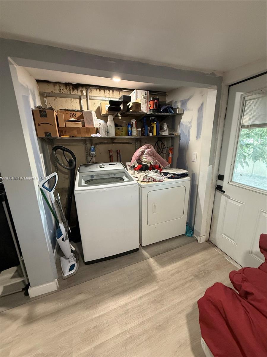 The house has 2 bedrooms, 1 bathroom, and a laundry room that was extended and can be used as an office. It comes with mini-split units in every room, including the office and living room. The living room unit is 24 BTU, and the bedroom units are 12 BTU each. The property has 19 solar panels (about 6–7 years old), as well as impact windows and doors. The roof is about 10 years old. The lot is fully fenced with white PVC around the perimeter and has a sprinkler system.