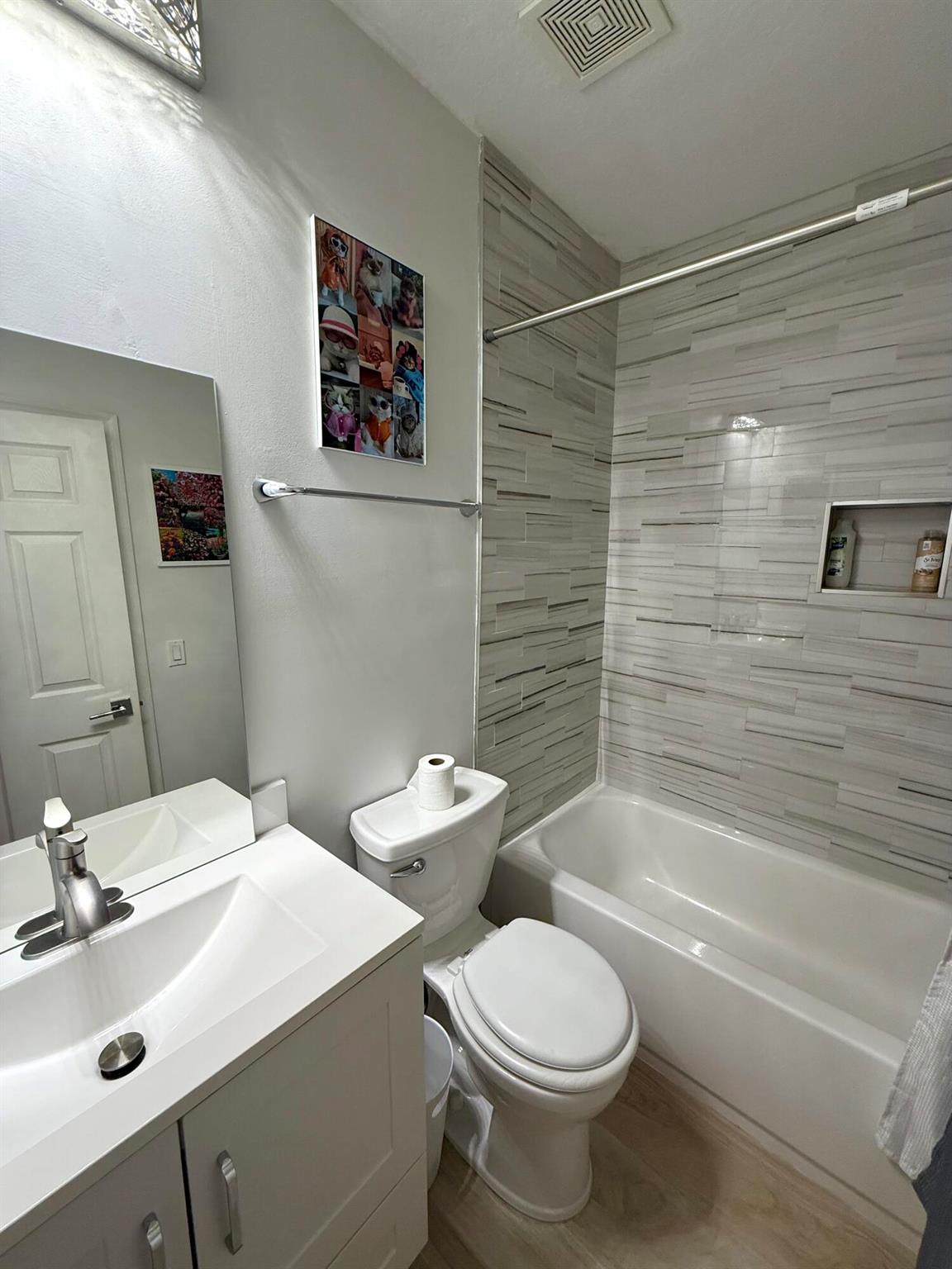 Welcome to Coastal Bay, a charming gated community just minutes from the beaches and downtown Delray. This 3-story, 3-bedroom, 3.5-bath townhome with a 2-car garage features elegant marble flooring and a versatile entry-level bedroom with a full bath - perfect for guests, a home office, gym, or media lounge.The second floor boasts an open-concept kitchen with 2023 LG stainless steel appliances, generous counter space, a dining area, a large living room, and a convenient half bath. Upstairs, the primary suite offers a walk-in closet and an updated master bath, while the secondary bedroom includes its own private full bath.Enjoy a vibrant, family-friendly community with a pool, jacuzzi, fitness center, internet, and cable - all included in the affordable HOA.