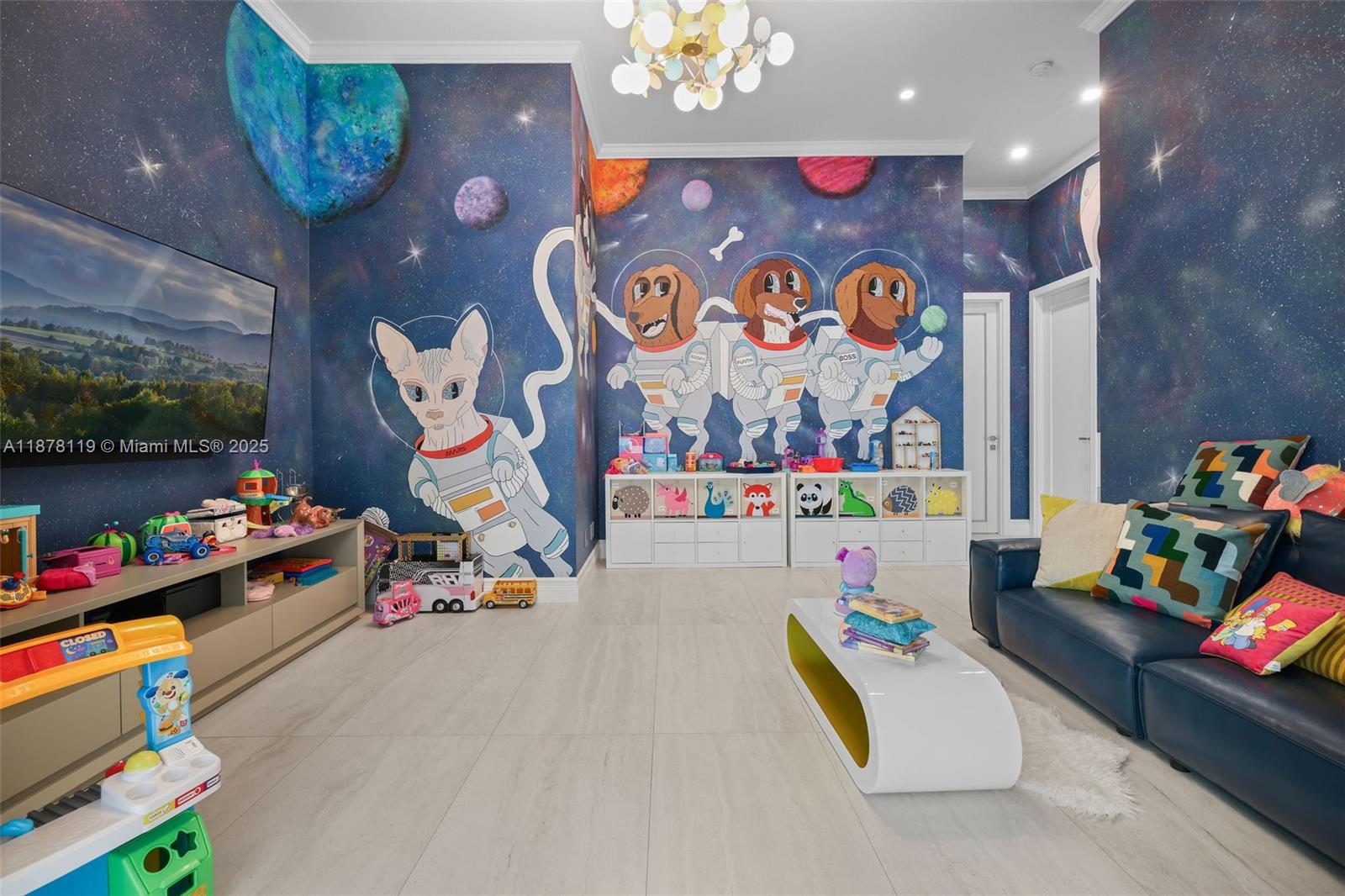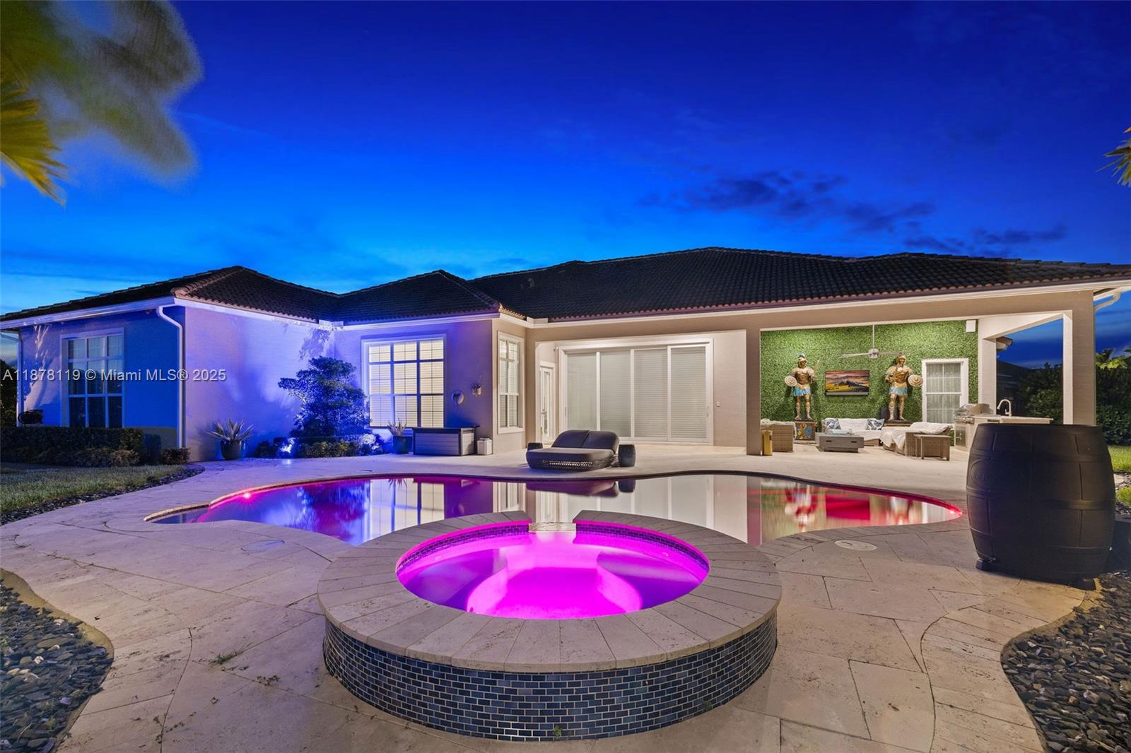 A Rarely Offered Designer Residence. One-of-a-kind 4-bedroom, 3.5-bath luxury home is a masterpiece, curated by a professional designer to embody elegance and sophistication. Nestled on an oversized lot, it offers privacy, space, and comfort. Step into your resort-style retreat, where a spectacular pool and jacuzzi glow with custom lighting, framed by illuminated landscaping. An outdoor fireplace adds warmth and ambience, perfect for evenings or entertaining. The residence is distinguished by its Ferrari-inspired 3-car garage, a rare feature blending sophistication with function. Every detail is thoughtfully designed, with bespoke finishes that elevate living. For those who demand the extraordinary, this home is a statement of luxury—offering beauty, privacy, and artistry inside and out.