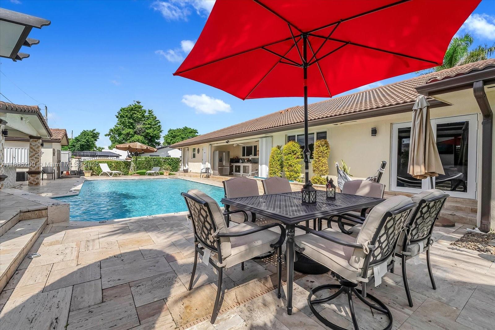 A special chance to own one of Doral’s most desirable homes! This stunning residence offers nearly 2,800 sf of refined living one of the rare oversized triple-lots. Recently renovated, this home features an updated tile roof, 2 new air conditions, impact doors and windows, a sparkling saltwater pool, a generator, completely upgraded bathrooms, and a spacious layout perfect for both entertaining and everyday living. Step outside to your private backyard retreat, where lush landscaping frames the pool deck, ideal for family gatherings or quiet evenings under the Miami sky. This backyard is special with multiple pergolas, covered terraces, accent lighting , and much more. One of the few Doral homes with no HOA restrictions. See it for yourself. Will not last long!