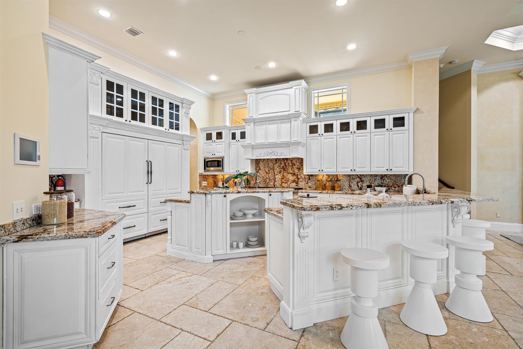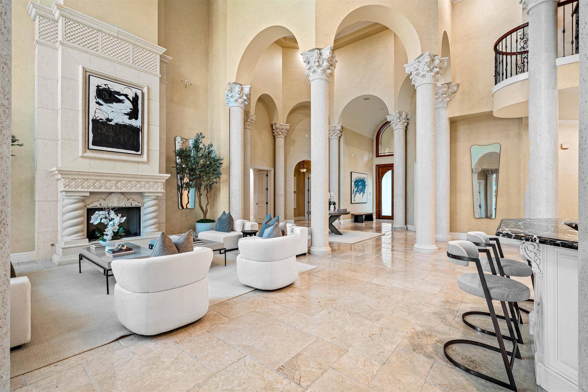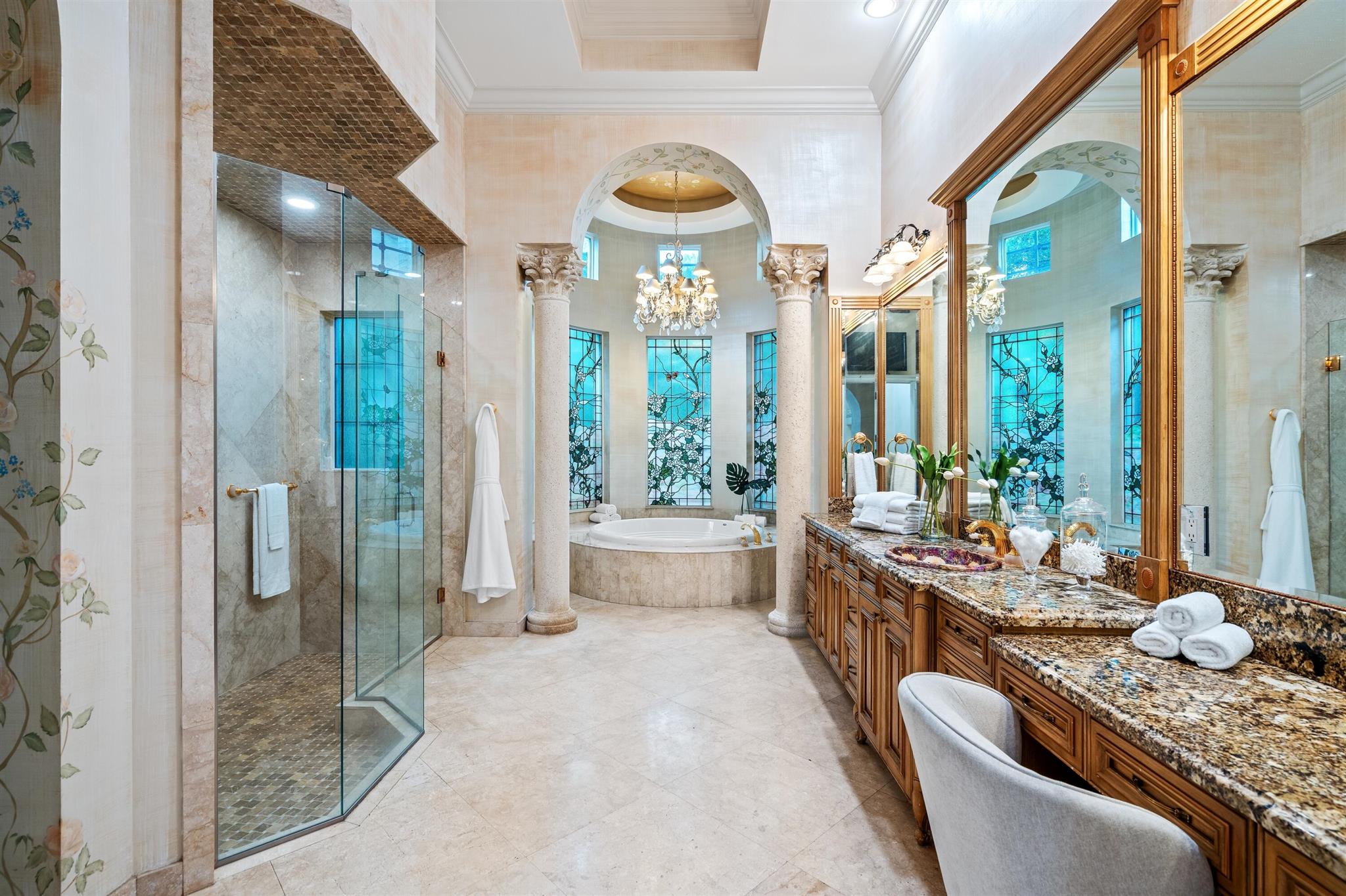 In the Eden of Boca Raton neighborhoods, Long Lake Estates hides in plain sight off of Clint Moore Road, with convenient access to the Turnpike. Discover Boca's premier amenities within a 10-mile+/- radius, including upscale boutiques and fine dining at Town Center Mall and Mizner Plaza, beautiful beaches, sought-after country clubs, respected schools, and well-maintained sports and recreational facilities. But the bustle quickly subsides when you pass through the gates of this neighborhood exuding a graceful regality. Its quiet, canopied roads transport you to a serene Old Florida. Set back on lush, one acre-plus lots, the distinct homes in this community enjoy the utmost privacy. The 10,327+/- sq. ft. Mediterranean estate sits on a paved horseshoe driveway behind an elegant porte-cocher
