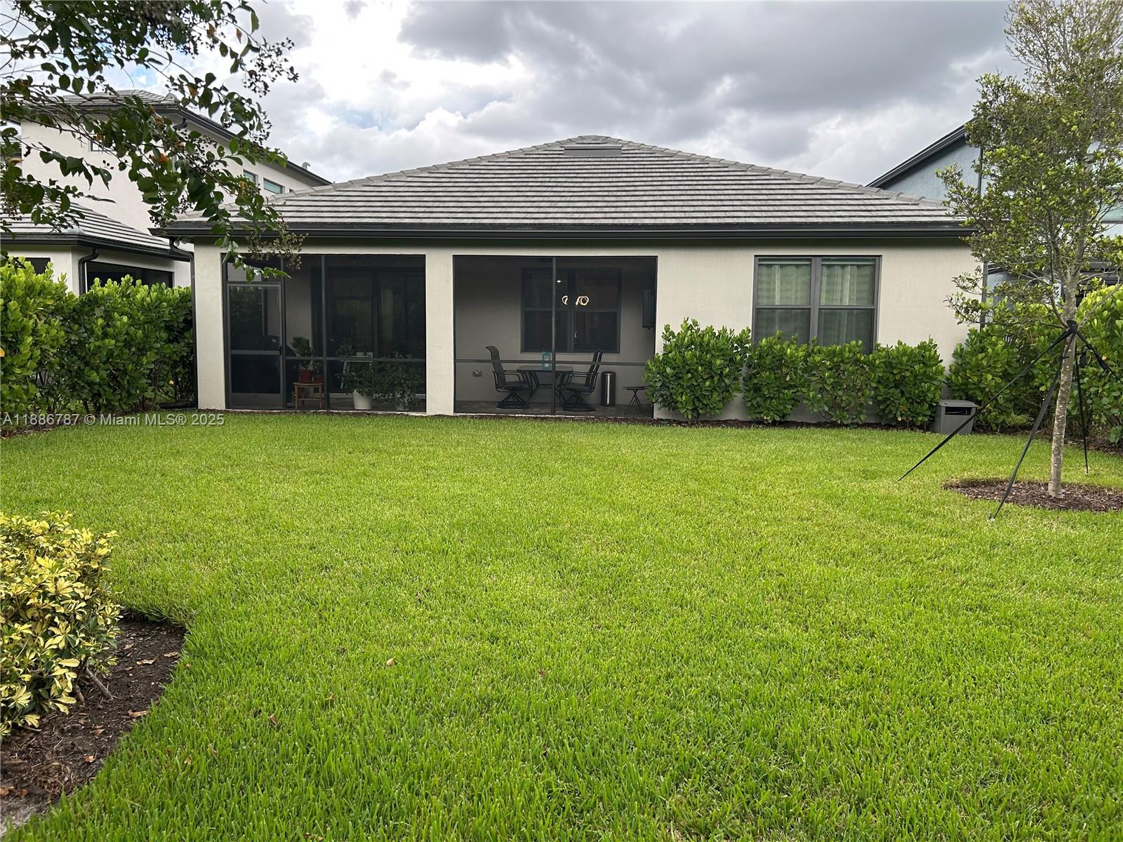 This beautiful 2023 construction single level home is a fusion of modern luxury and practical design. The open-concept living area and chef's kitchen with Kitchenaid appliances & quartz counters is designed for seamless entertaining and everyday enjoyment. Three large bedrooms and two full bathrooms provide ample space for rest and relaxation. The den/office space offers versatility for work or leisure. White wood plank tile extends throughout the house, for both aesthetic appeal and durability. The spacious tropical backyard creates a private garden environment. The 2 car garage provides ample room for parking & storage. The gated Oak Tree community residents enjoy a resort style pool, fully-equipped gym, pickleball courts, a dog park and more, all designed to elevate your daily living.