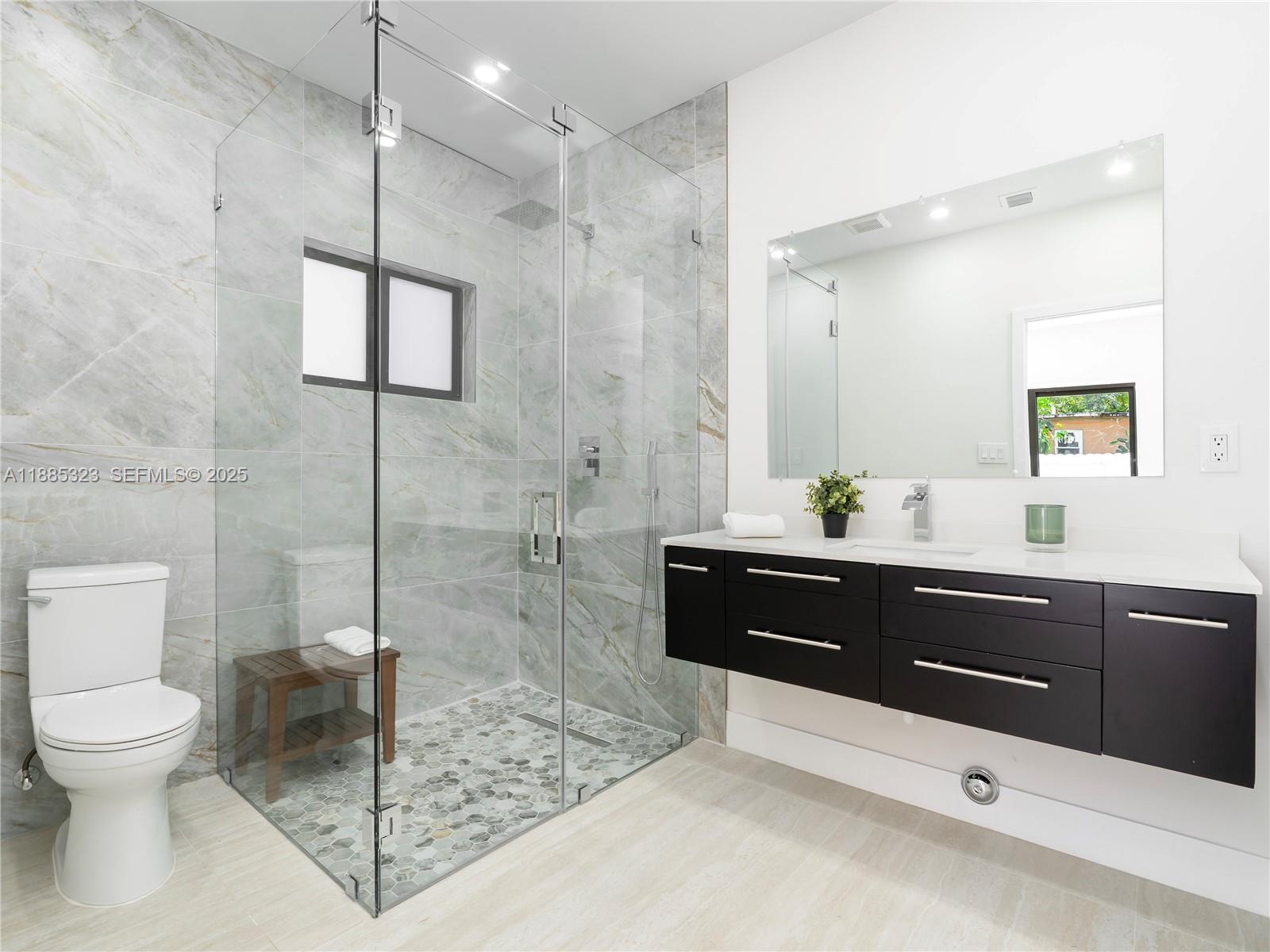 Welcome to this stunning home, fully renovated in 2025 with a thoughtfully designed addition and all major upgrades already completed. Enjoy peace of mind with brand new electrical wiring, plumbing, roof, and central A/C, ensuring modern comfort and efficiency throughout. The interior showcases timeless travertine porcelain tile flooring, adding elegance and durability to every space. A custom kitchen features premium KitchenAid appliances, sleek cabinetry, and a layout perfect for both cooking and entertaining. Outside, the property is fully fenced for privacy, highlighted by a beautiful modern gate with dual car entrances on either side of the home, offering convenience and curb appeal. A true turnkey residence blending style, quality, and functionality.