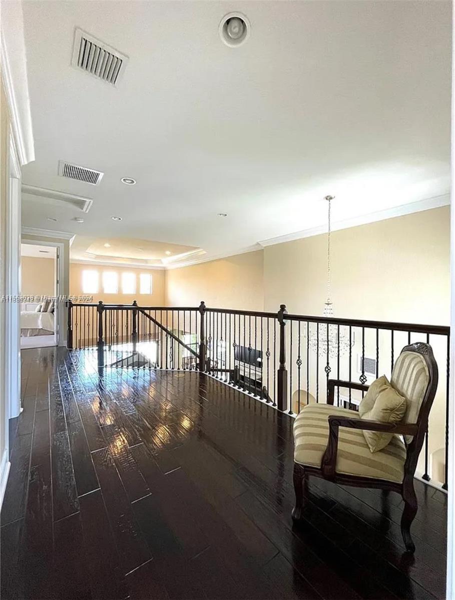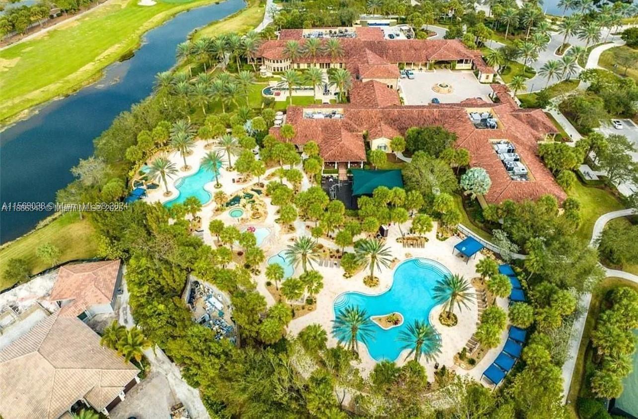 Rented until april 2026... great tenants - Parkland Golf Country Club -Beautiful Tuscan-style home with 5 beds & 3 baths (5th bed used as office/multi-purpose room). Imagine waking up every morning or sitting on your back patio while taking in a magnificent & serene water view. The home also features a wonderful pool w/built-in sound system in the lanai ideal for entertaining outdoors. 2 new A/C units. Indoor security system, crown molding throughout, fenced-in yard, open concept floor plan. Kitchen w/stainless steel appliances & lovely espresso cabinets, granite countertops, breakfast bar, diagonal tile floors throughout main living areas. Stunning stairway w/wrought iron & immaculate espresso hardwood floors in loft (upper level). Impact glass windows. Ext painted in 2019.
