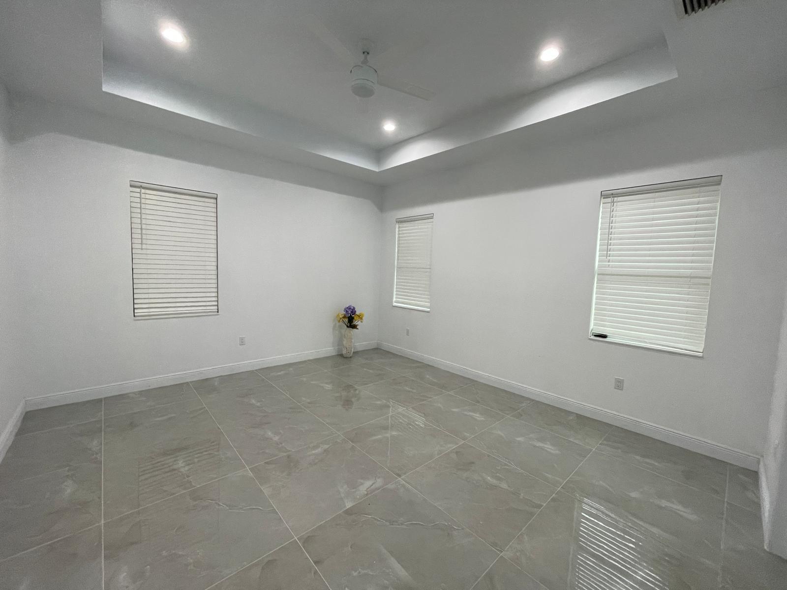 4 Bedroom 3 Bath Custom Built Home. Newly built in 2021. Modern Elegance and wide open floor plan with 10-foot high ceilings in every room, accentuated by tray ceilings in the living room, kitchen, dining area, and 2 large master bedroom En-Suites with His and Hers walk in showers and separate bathing tub. Designed with a split bedroom layout on opposite sides of the home for privacy and additional 2 more guest bedrooms as well—each detail meticulously designed to elevate quality of living in this architecturally well designed home. Screened in Florida room, Laundry room. No HOA!