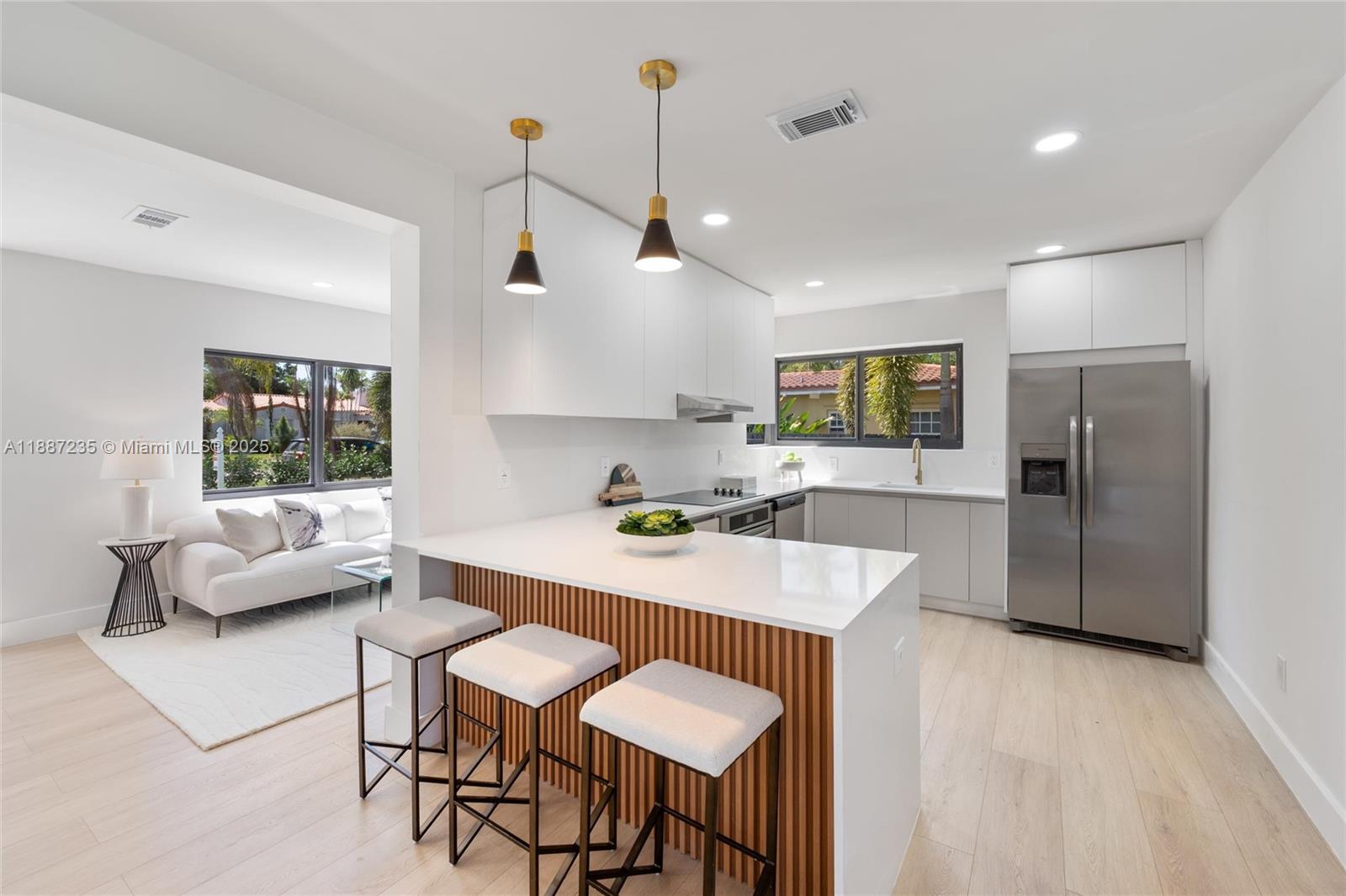 Renovated from top to bottom, this Miami Shores residence blends timeless style with a flexible floor plan. The open-concept kitchen is a centrepiece—perfect for both the chef and the entertainer. Each bedroom enjoys its own bath, plus there is a cabana bath for the pool you’ll envision on the 9,350 sq. ft. lot. Features include impact windows and doors, white oak floors, in-house laundry, and meticulous attention to detail. With all-new systems—including roof, plumbing, and septic—this home offers complete peace of mind. Nestled in the heart of Miami Shores, it delivers a prime central location with the rare “neighborhood vibe” so hard to find in a major city.