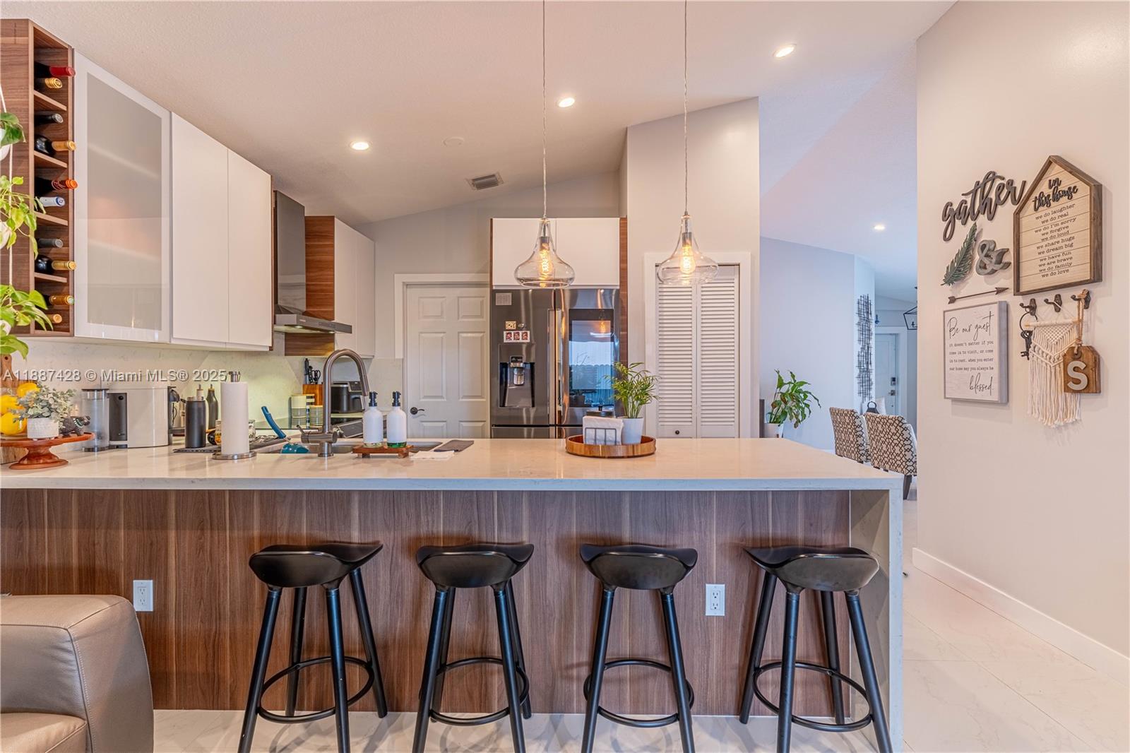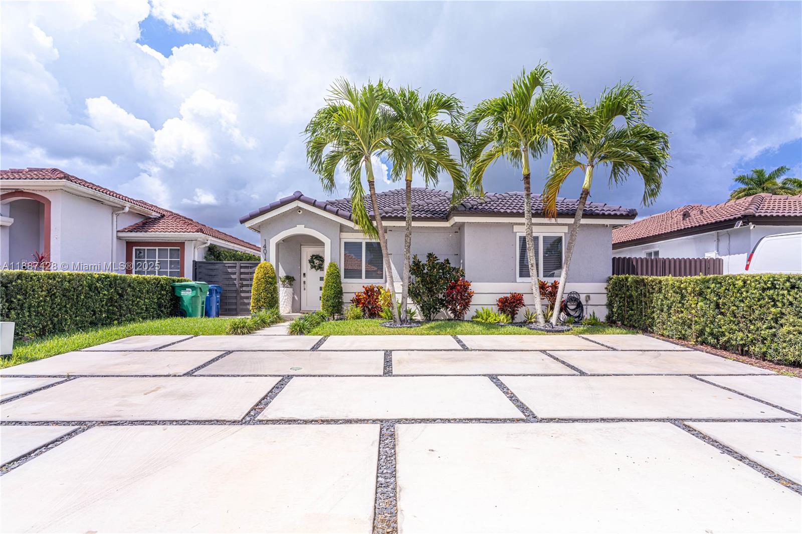 Step into this beautifully renovated home, showcasing a modern kitchen with contemporary appliances, waterfall countertops and stylish finishes, thoughtfully designed for both comfort and functionality. Enjoy year-round peace of mind with impact-resistant windows and doors, offering both security and energy efficiency. Titan tankless water heater for on-demand hot water, a dedicated storage room, and a backyard shed. The home also features a brand-new, gray-tiled terrace adds a sleek modern touch to the outdoor area, perfect for relaxing or entertaining outdoors. A nice cement block driveway provides ample parking space. On the side of the property, a cemented section offers enough space to comfortably fit a small boat or additional storage needs.