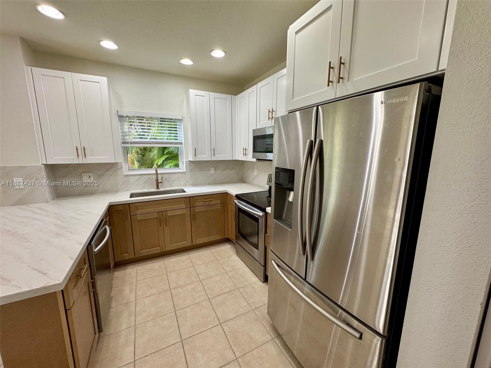 Step into style and comfort in this 3BR/2.5BA home located in a gated community! Brand New modern Kitchen with Fantasy Gold Quartz and 42' wood cabinets plus brand-new impact windows and doors, freshly painted inside and out, and a partially renovated master bathroom. 2024 Water Heater, 2023 Garage Door Motor with built-in Camera. Ceramic floors on 1st floor and wood floors on 2nd level. The kitchen flows seamlessly into the dining area, where you’ll find a custom built-in bar perfect for entertaining guests. Step outside to your patio with a pergola, ideal for relaxing, grilling, or hosting gatherings. Enjoy a 2-car garage plus a large driveway for plenty of parking. Just steps away from the community pool and playground. HOA Fees includes lawn maintenance, cable, alarm, and amenities.