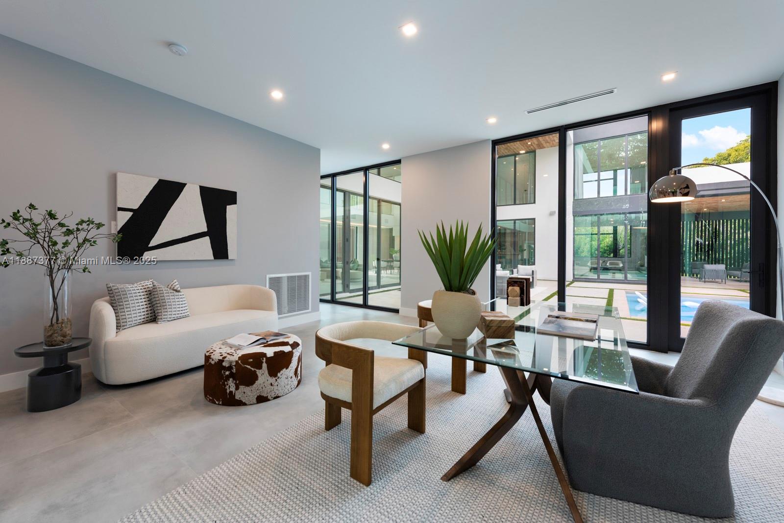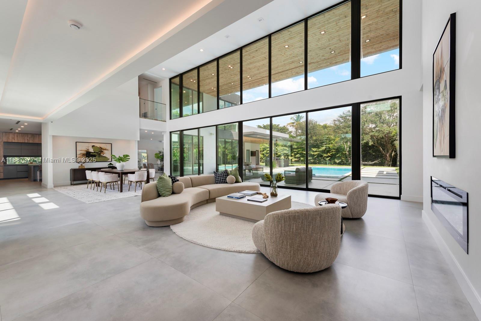 Stunning and luxurious 2024 two-story estate on a prime deep and lush gated Pinecrest acre. Impeccable design and taste mixed with elegant and practical indoor and outdoor living spaces. Tons of special features including: 21' ceiling height in an open formal great room, kitchen w/Viking appliances and wine storage, entryway water feature, custom wood pivoting front door, and more! Serene primary suite includes a private balcony, resort-style bathroom w/free standing tub, and top-of-the-line built-in closets. Pool-patio area is an entertainer’s dream w/covered kitchen, oversized 18x50 pool, and plenty of yard space. 3-car garage with 2-car carport, wonderful layout with staff/guest quarters, and all the best Pinecrest schools and services!