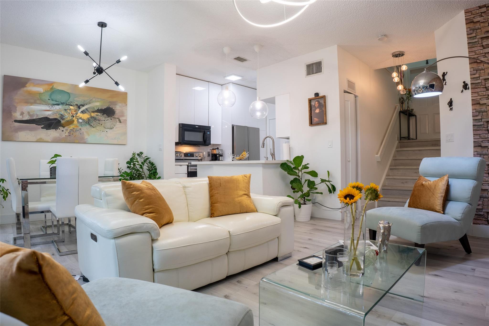 Beautifully updated tri-level townhouse featuring 2 bedrooms, 2.5 bathrooms, and a 1-car garage. The main level offers a bright open layout with a modern half bath, sleek kitchen with lacquered wood cabinetry, quartz countertops, and stainless steel appliances. Upstairs, both bedrooms include updated baths with stylish finishes. Enjoy new flooring throughout, fresh interiors, and a private fenced patio ideal for outdoor living. Convenient location close to shopping, dining, schools, and major highways.