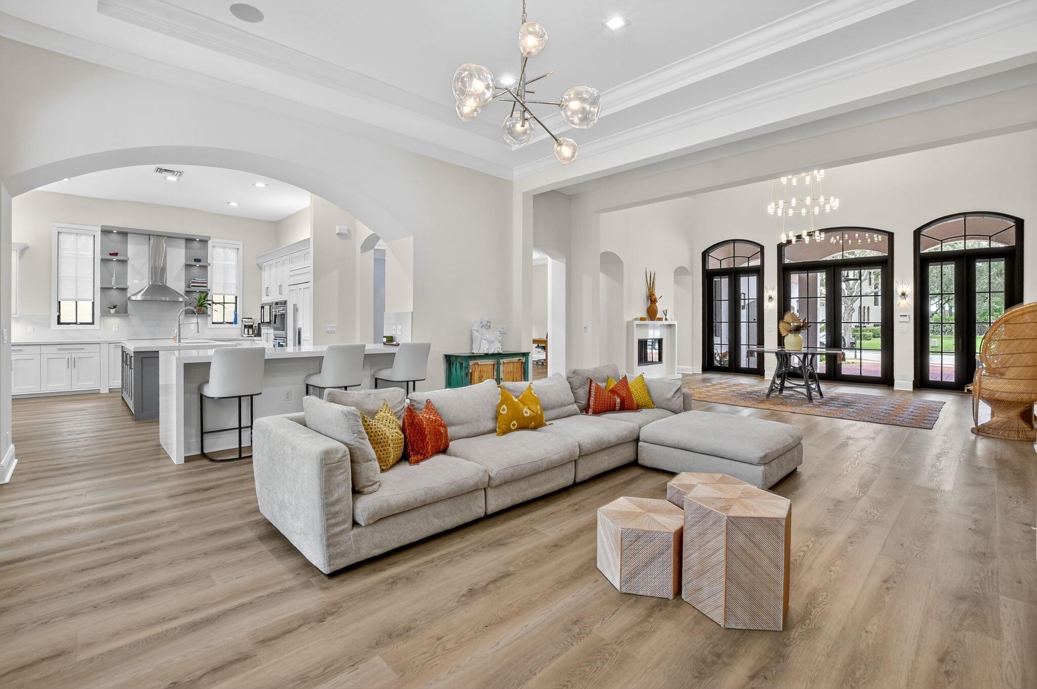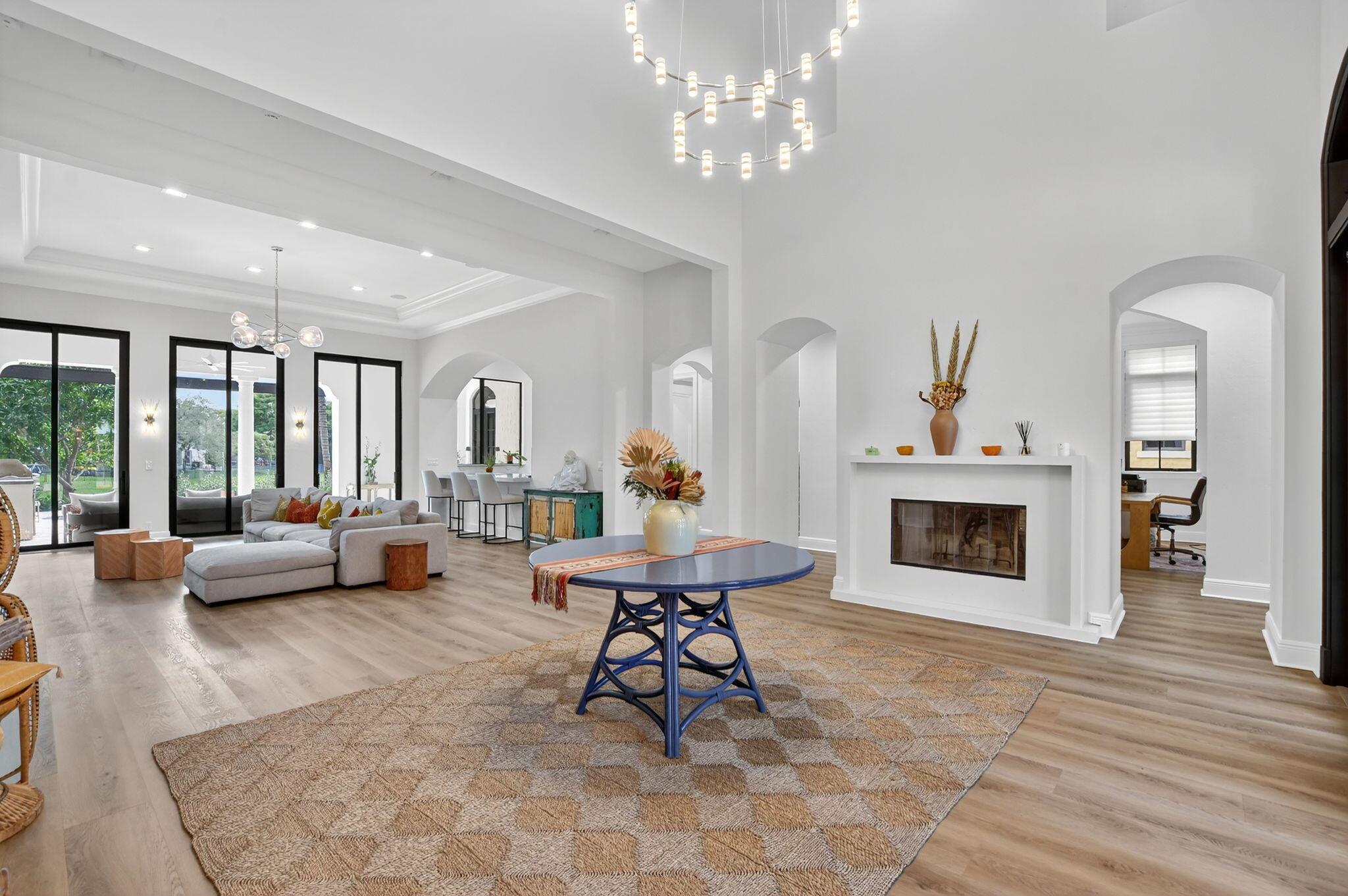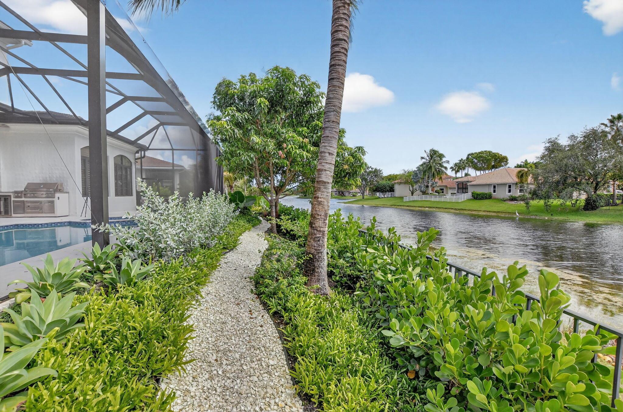 Experience refined luxury in this move-in ready waterfront estate on one of Parkland Golf & Country Club's most prestigious streets. This expanded Minorca model offers 6 bedrooms including a first-floor primary suite, 4 full & 2 half baths combining elegant design in a serene, resort-style community. Inside, in addition to the renovated kitchen, living areas & bathrooms, other upgrades include updated waterproof flooring (no carpet in sight) and newly installed hurricane impact sliding doors for seamless indoor/outdoor living. Outside, enjoy the unobstructed view from the fully screened pool patio and lush new backyard landscaping. In addition to the private pool & spa, there is a custom outdoor grill perfect for entertaining.