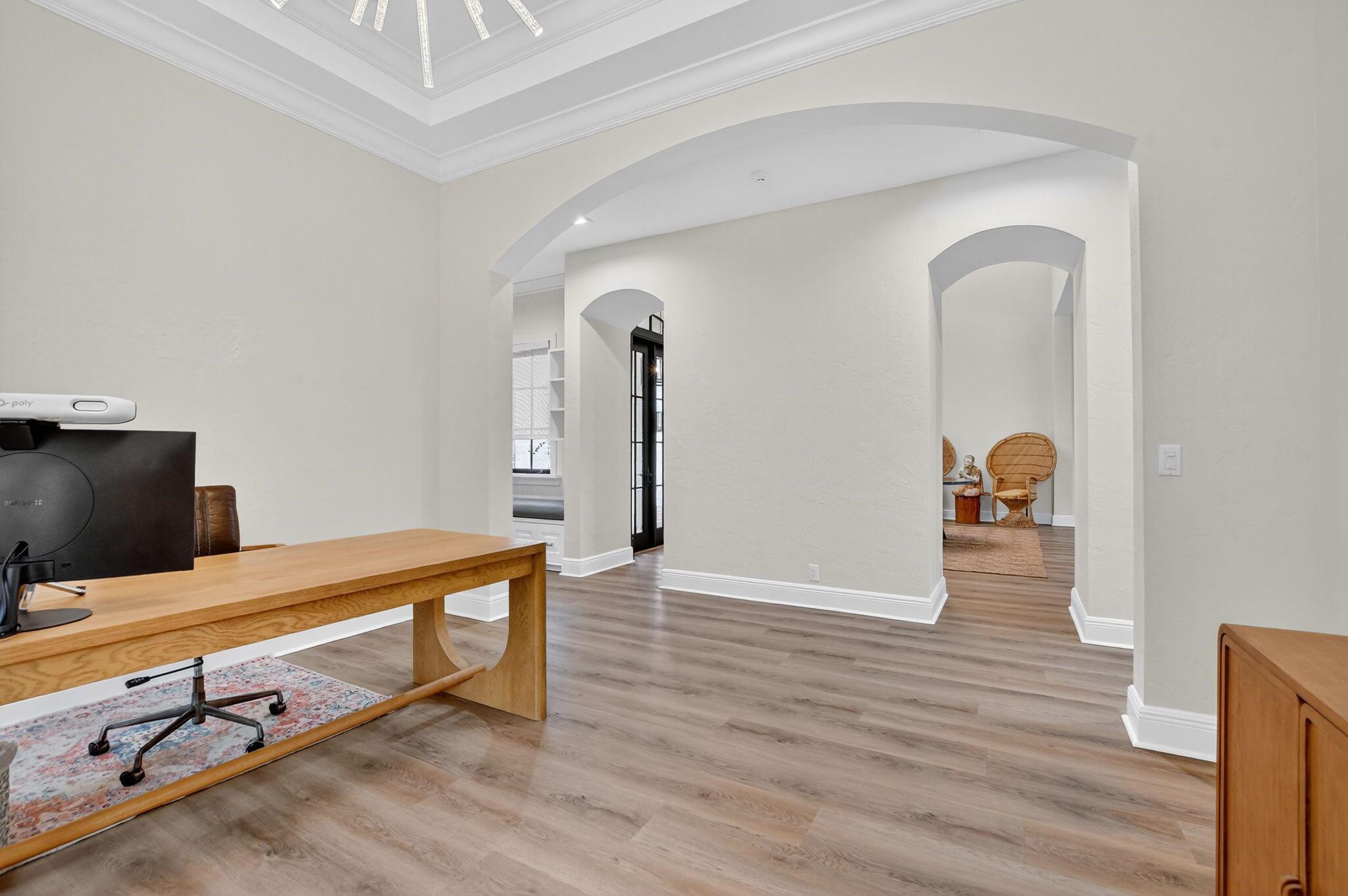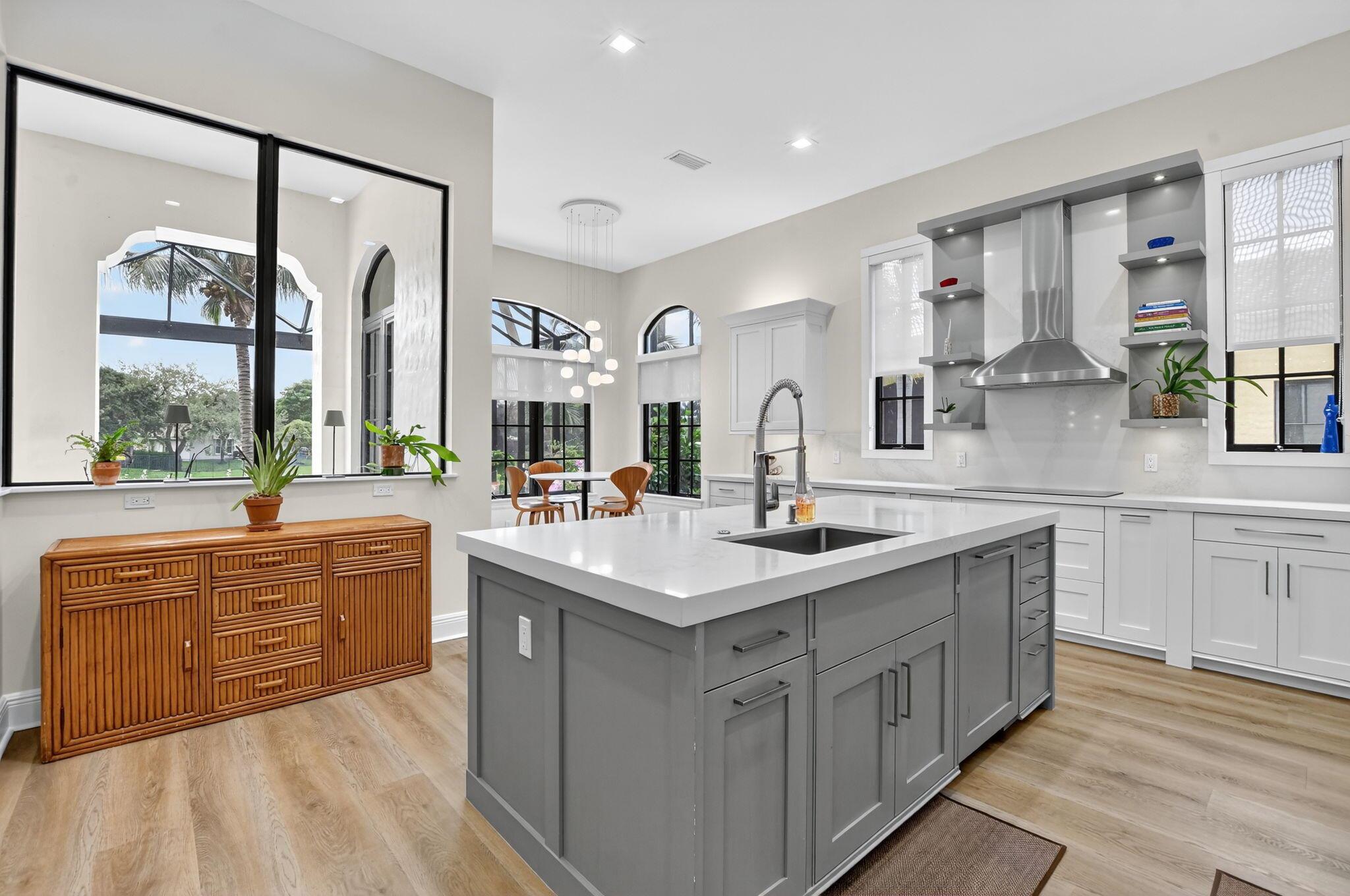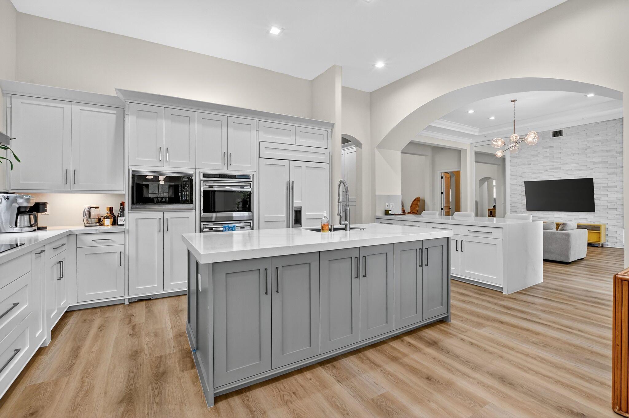 Experience refined luxury in this move-in ready waterfront estate on one of Parkland Golf & Country Club's most prestigious streets. This expanded Minorca model offers 6 bedrooms including a first-floor primary suite, 4 full & 2 half baths combining elegant design in a serene, resort-style community. Inside, in addition to the renovated kitchen, living areas & bathrooms, other upgrades include updated waterproof flooring (no carpet in sight) and newly installed hurricane impact sliding doors for seamless indoor/outdoor living. Outside, enjoy the unobstructed view from the fully screened pool patio and lush new backyard landscaping. In addition to the private pool & spa, there is a custom outdoor grill perfect for entertaining.