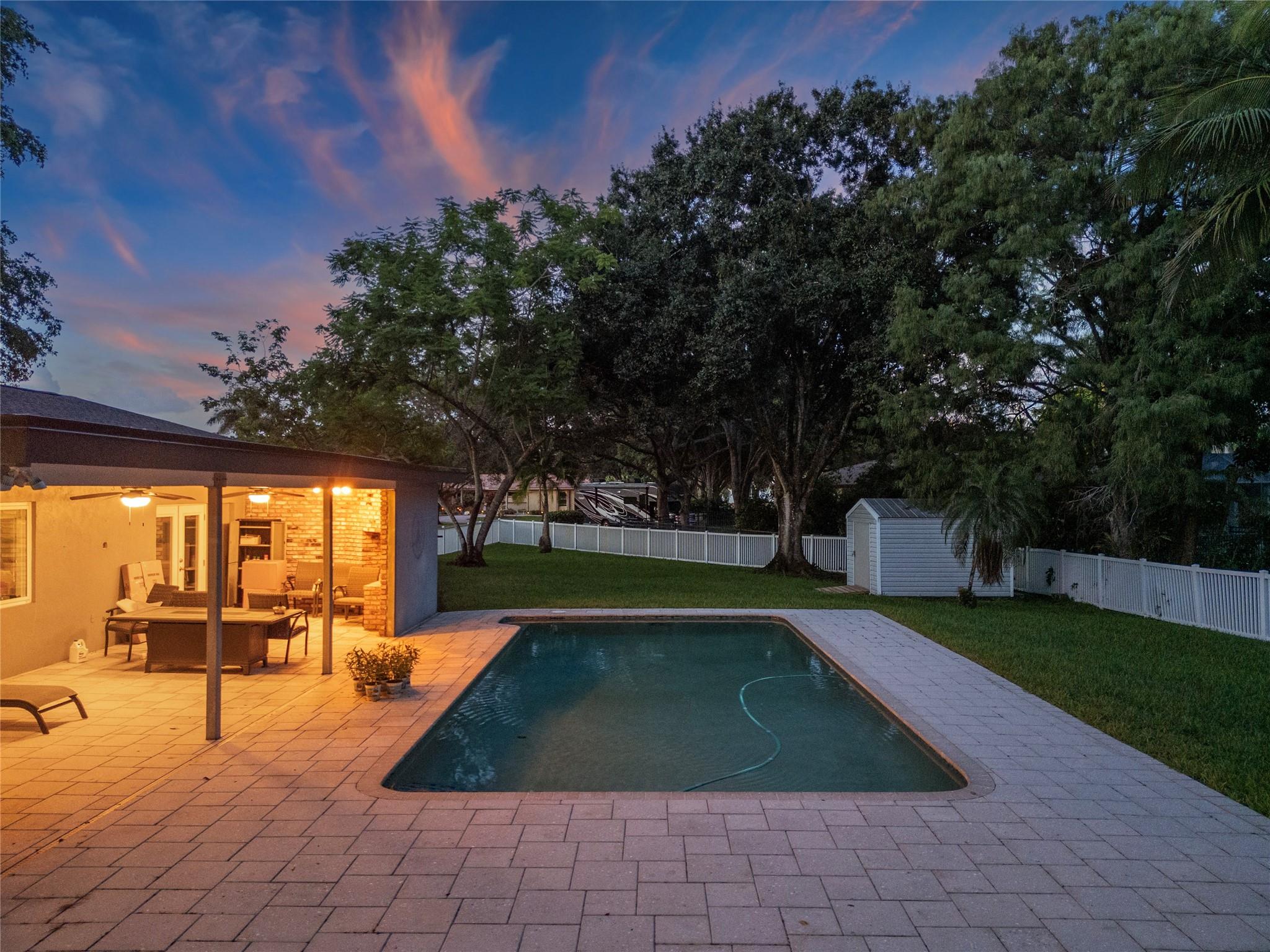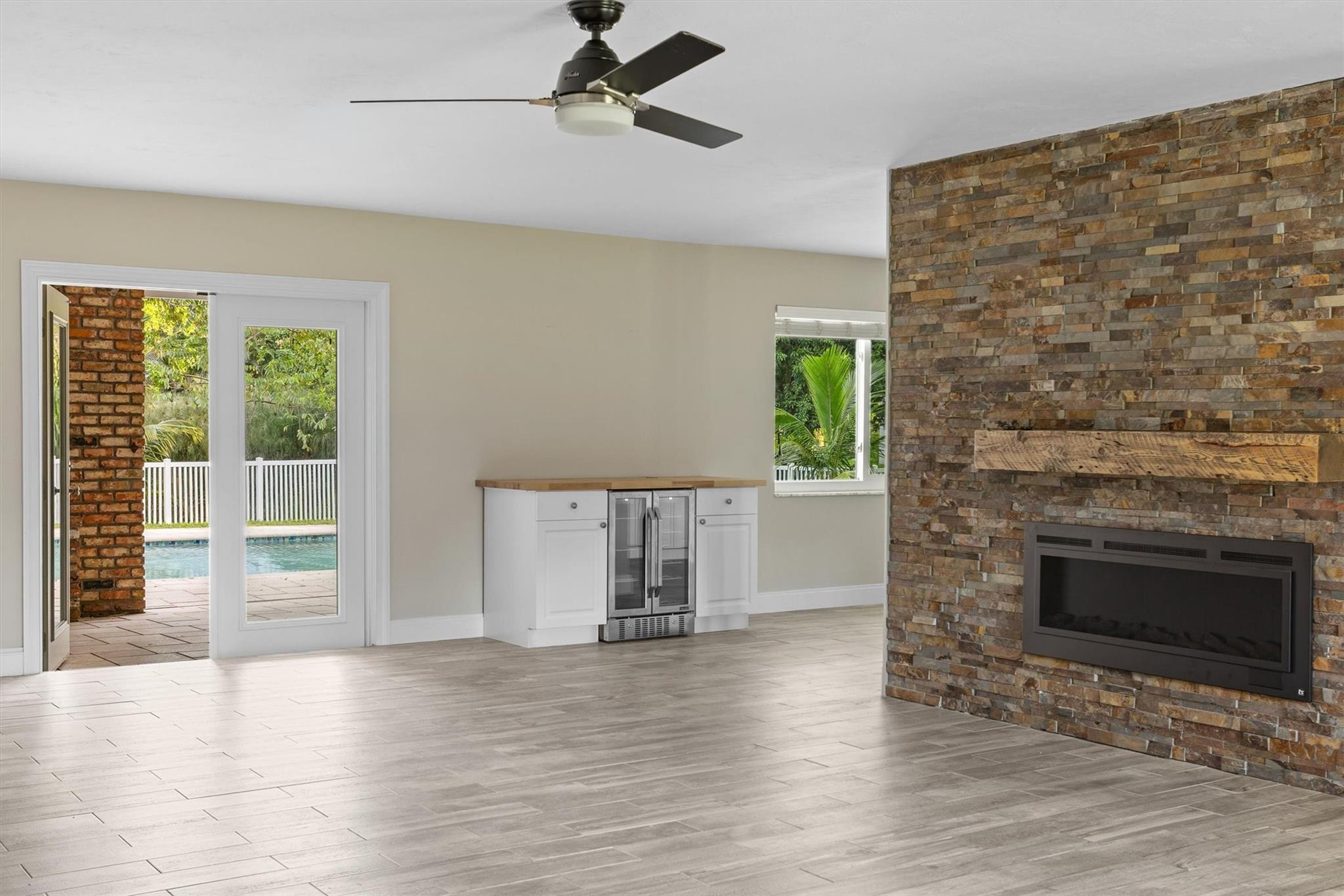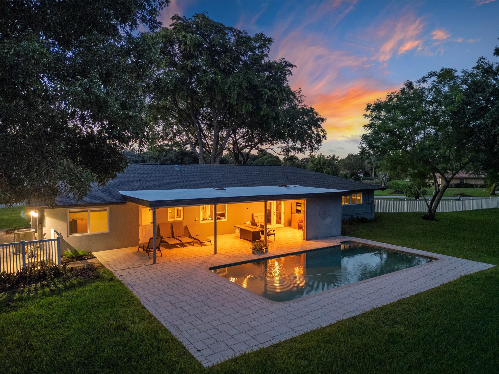 Tucked at the end of a double cul-de-sac in Davie’s Prestigious Hiatus Isles, this one-story retreat blends privacy and lifestyle. Wake up to shimmering lake views and birdsong, spend afternoons by the oversized pool or casting into a fish-filled pond, and gather in the evenings by a cozy fireplace. Sunlight fills bay-windowed living and dining rooms, while the eat-in kitchen perfectly frames the water. Sliding doors open to a covered patio for alfresco dining and sunset views, with room to add your own dock. In a serene, non-HOA enclave near top schools, every arrival feels like coming home. This is an opportunity to step into this lifestyle with ease.