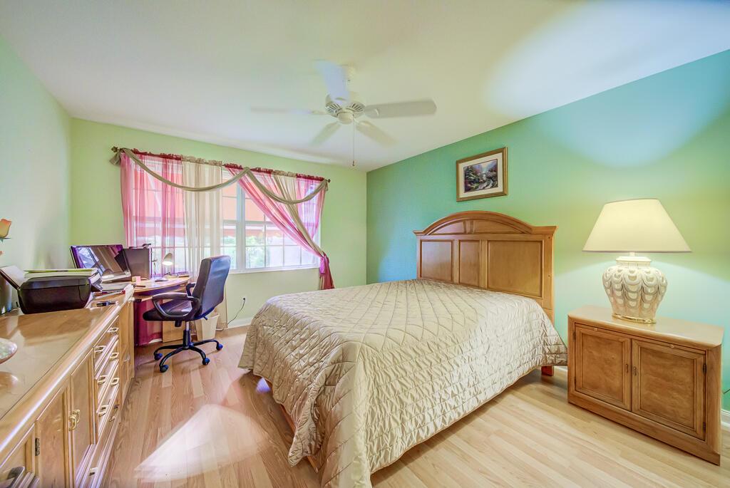 Welcome to this charming lakeview villa, offering 2 bedrooms, 2 bathrooms, and a 2-car garage. RiverWalk offers luxury, resort-style living with ought membership fees! This one-story home features an open layout with elevated ceilings, neutral colors, tile floors in common areas, recessed lighting, and ceiling fans. The modern kitchen boasts white cabinetry and granite countertops, perfect for culinary pursuits. An inside laundry room adds convenience, complete with a sink and washer/dryer. The spacious master bedroom includes laminate floors, a walk-in closet with custom built-ins, a second closet, and an ensuite bathroom featuring a double vanity sink, shower with glass doors, and a linen closet.