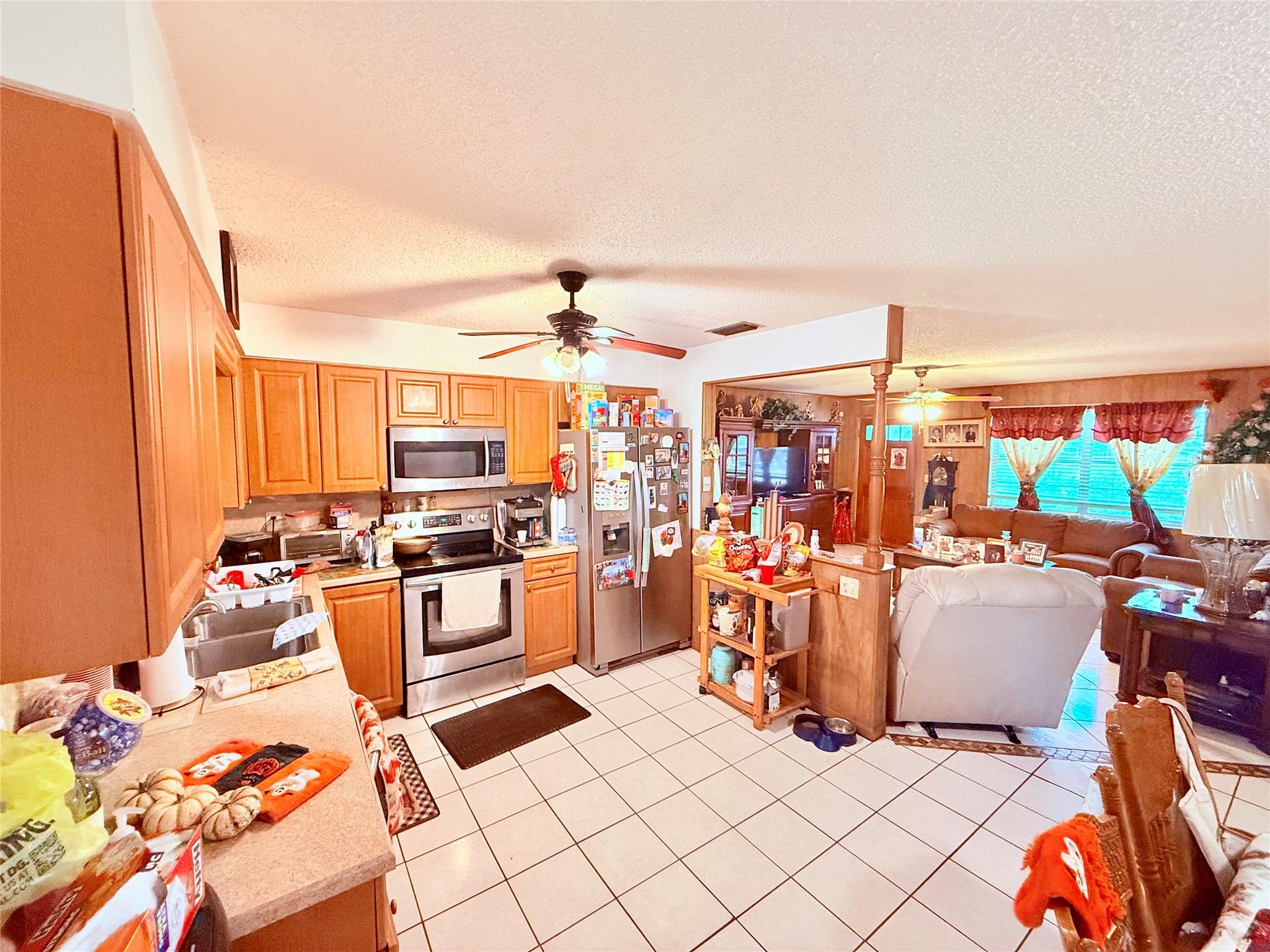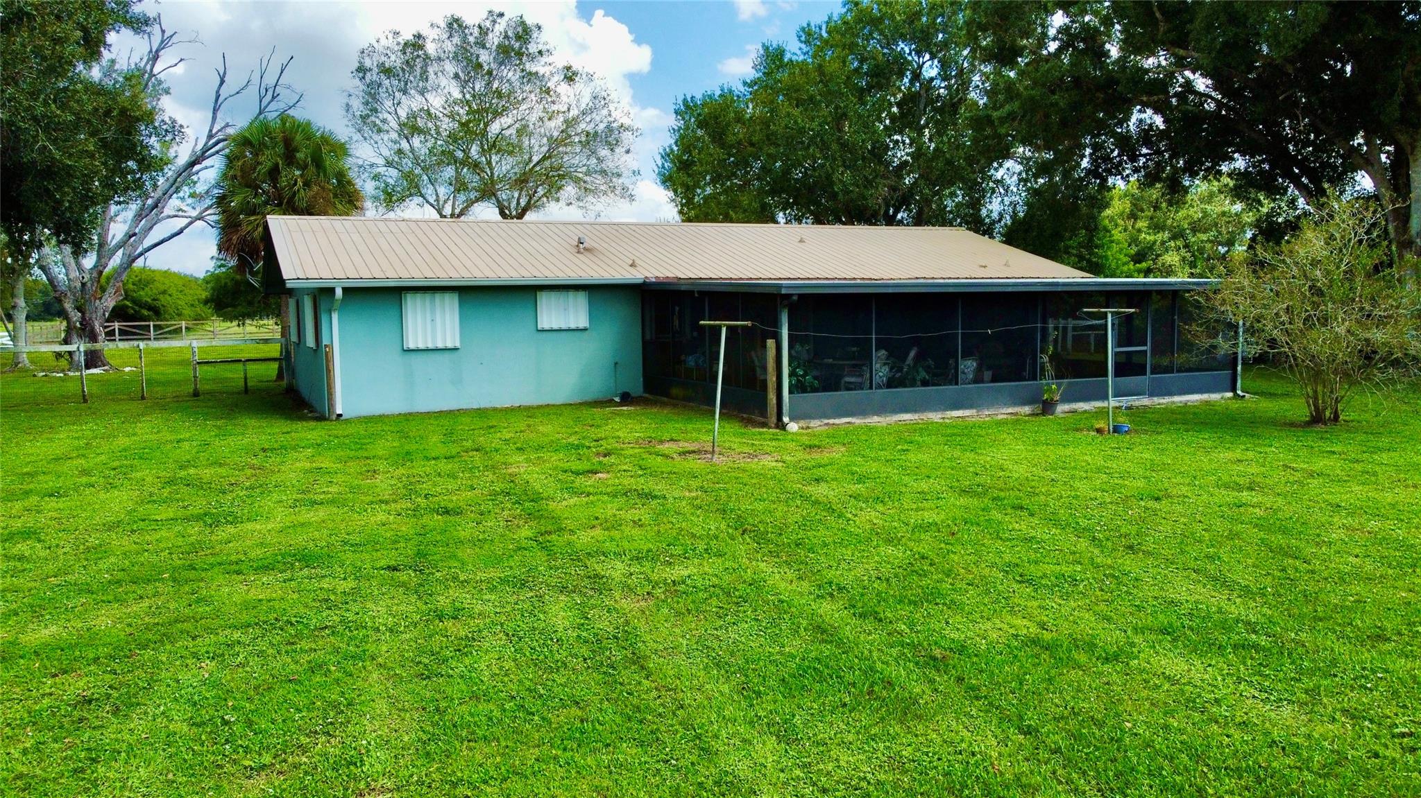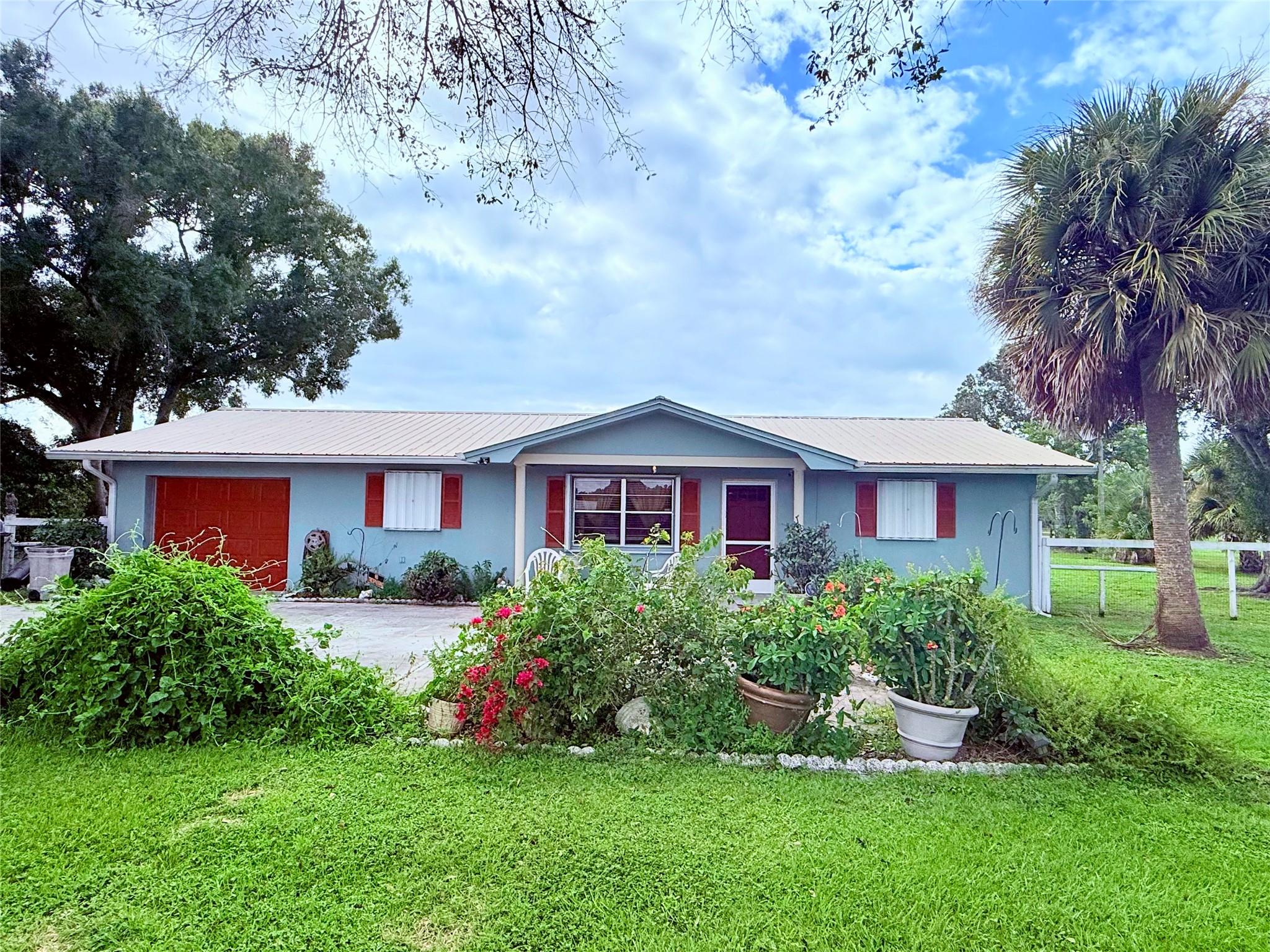 Welcome to your peaceful paradise! Set on a spacious 5.5 acre lot, this 3-bedroom, 2-bath home offers comfort, functionality, and country charm. Inside, enjoy an open layout with tile flooring throughout and a kitchen featuring stainless steel appliances. Relax on the large screened-in back porch, perfect for enjoying quiet views. Additional features include a spacious laundry room, metal roof, accordion hurricane shutters, and a one-car garage. Outside, a pole barn adds versatility for storage, hobbies or animals. With open space all around, there's plenty of room to make it your own. Lots of potential & space to create your perfect homestead! Call today for a showing! Don’t miss this private slice of Florida—schedule your showing today!