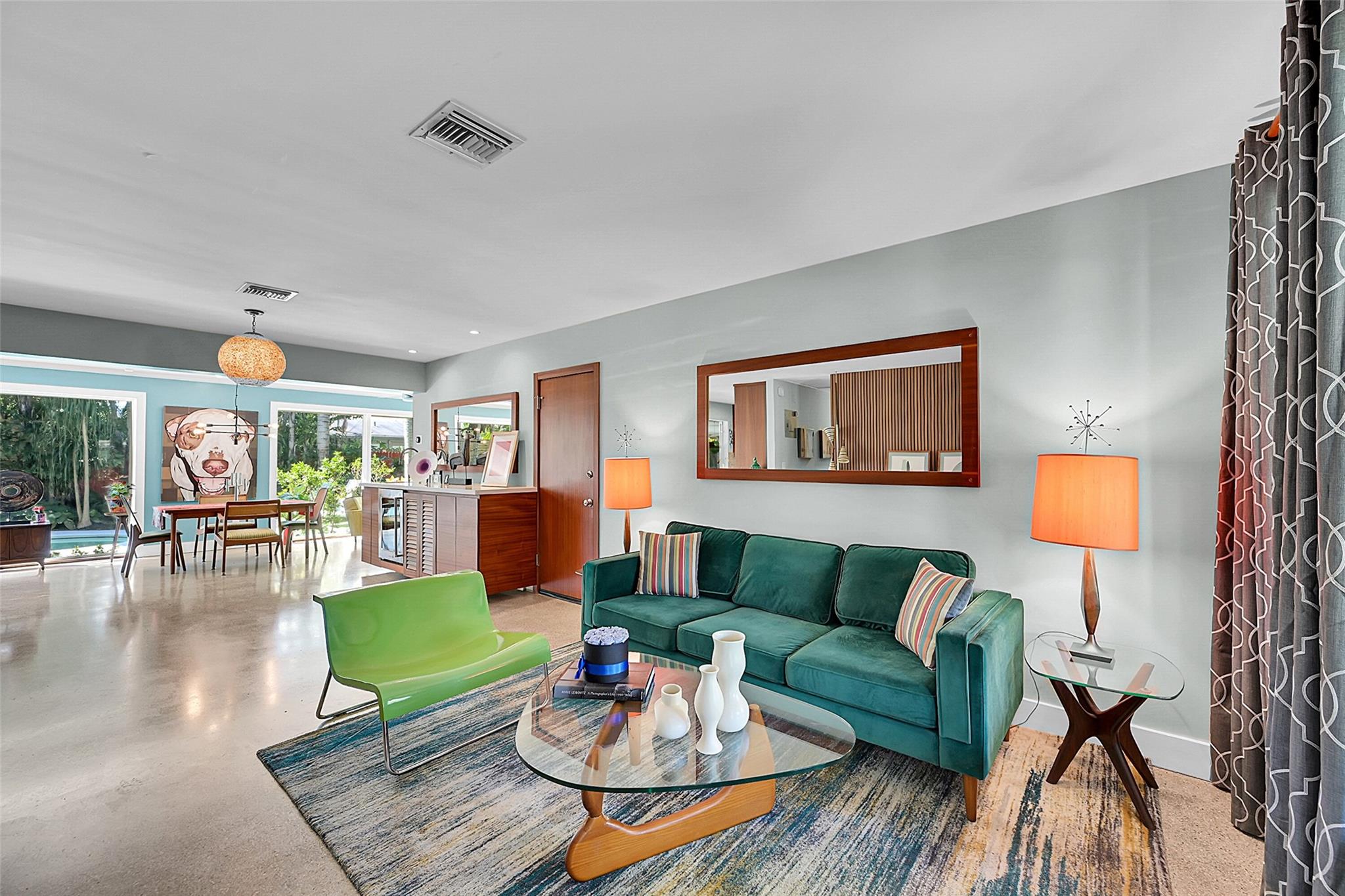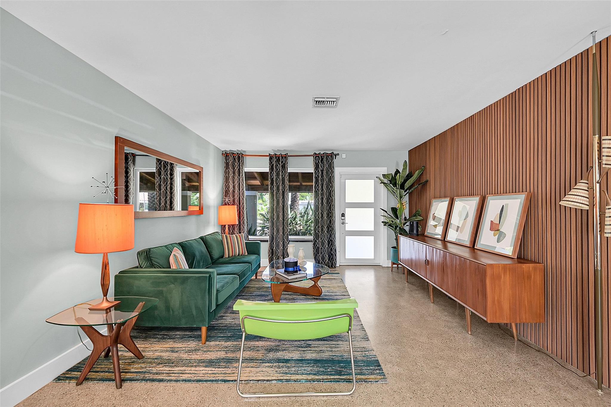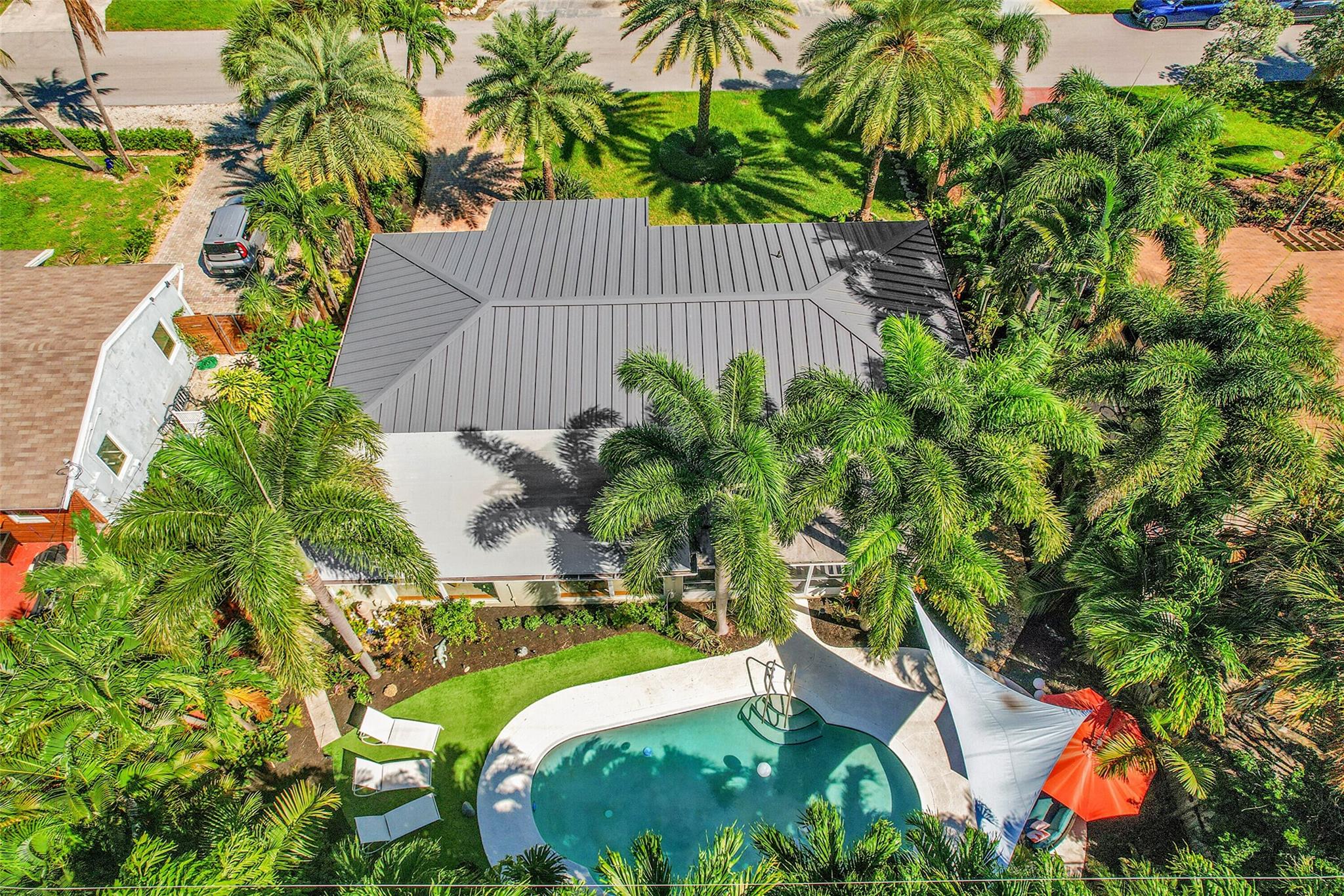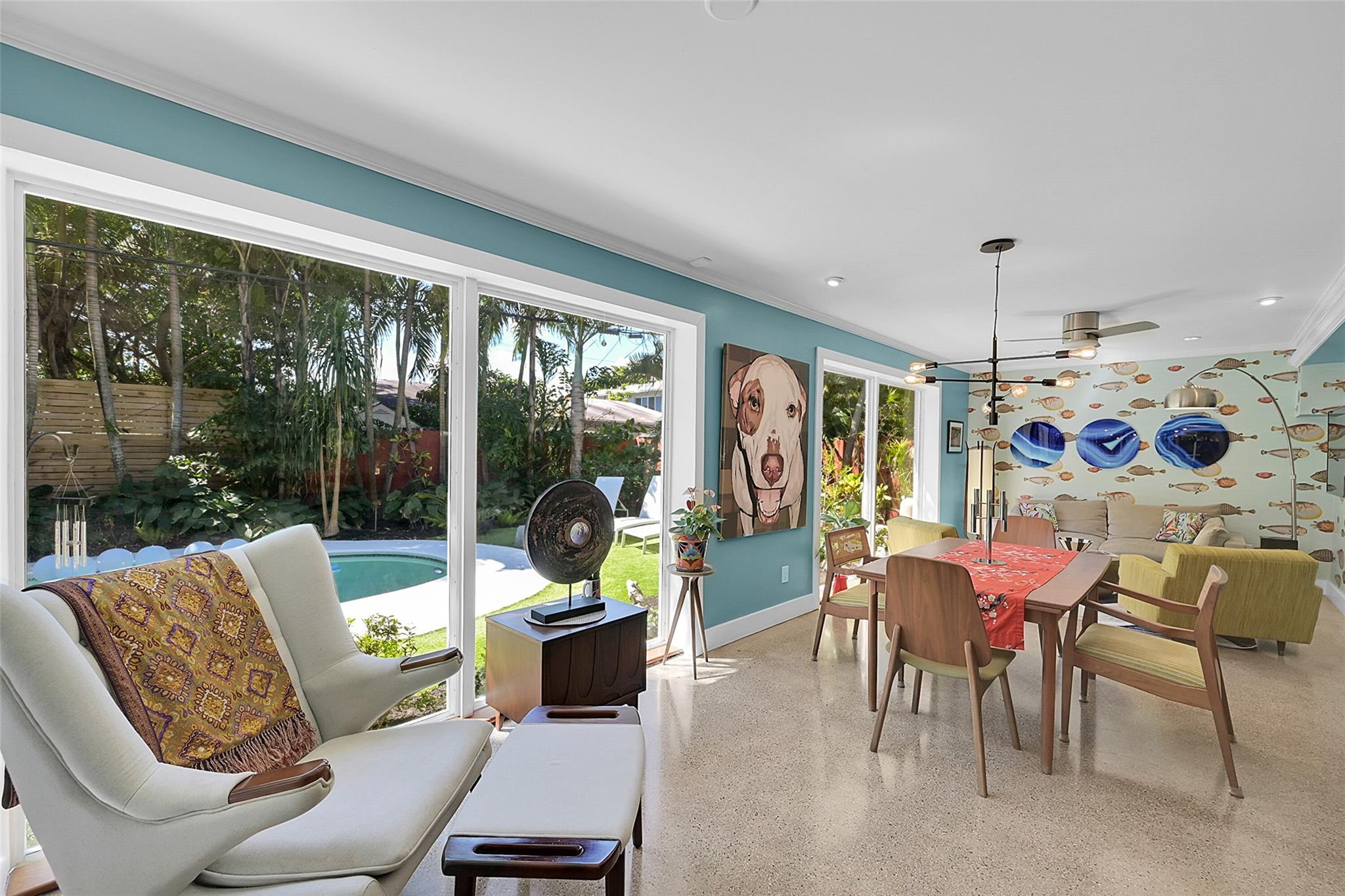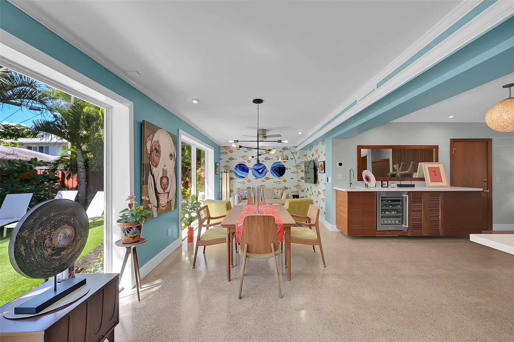 Experience the perfect fusion of mid-century modern design and today’s comforts in this 3BR/2BA Wilton Manors treasure. Ideally located minutes from Wilton Drive, shopping, dining, and the beaches. Light-filled open concept living showcases a stunning kitchen with stainless steel appliances, custom cabinetry, and terrazzo floors that flow throughout. Expansive impact doors and windows frame lush tropical views. Recent upgrades include a 2025 roof, renovated baths, and whole-house generator hook-up. The flexible 3rd bedroom doubles as a den or office. Relax on the screened porch overlooking landscaped gardens, dramatic lighting, and heated pool. A 1-car garage adds convenience to this private retreat making it a perfect blend of style, function, and location.