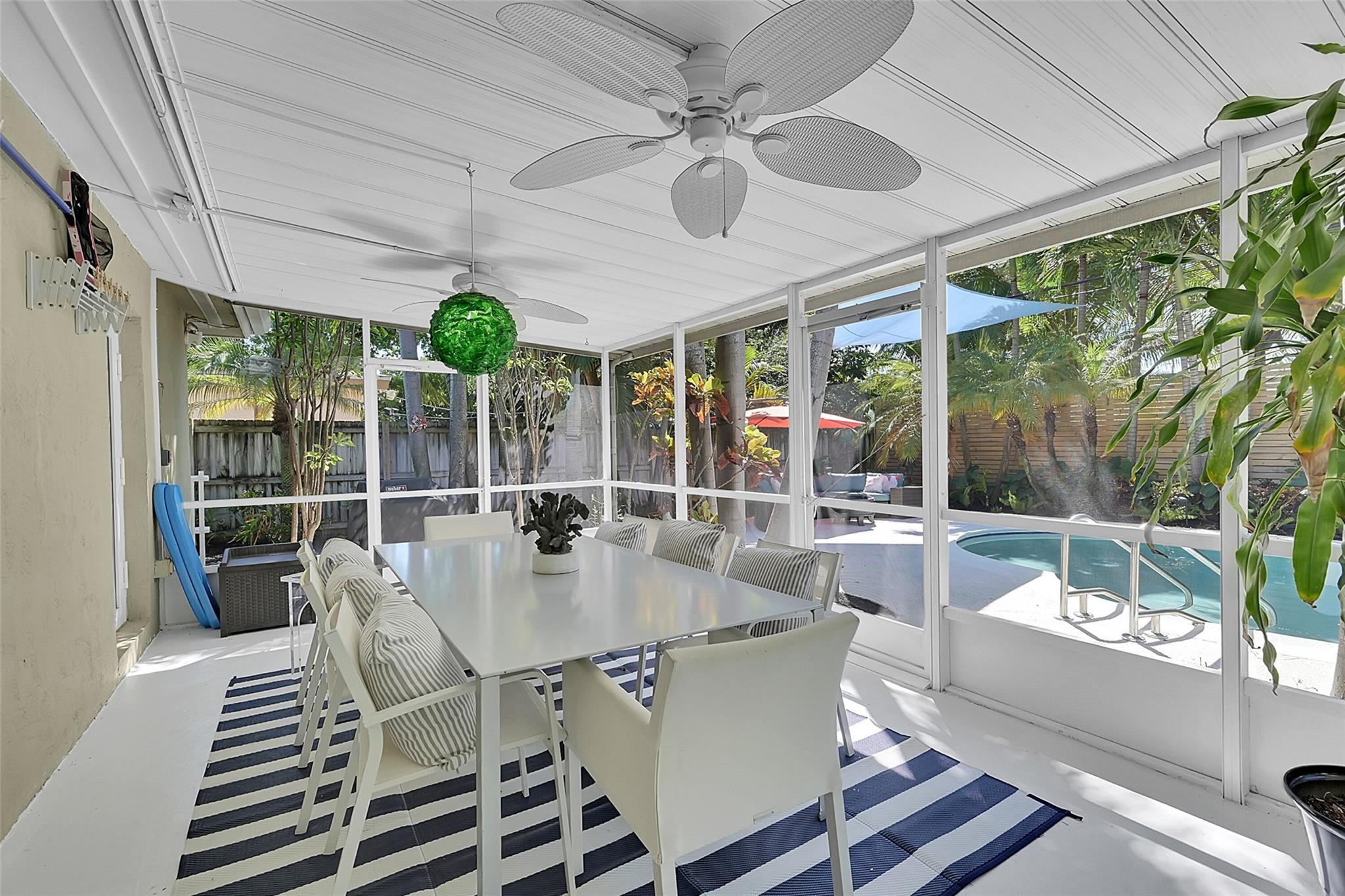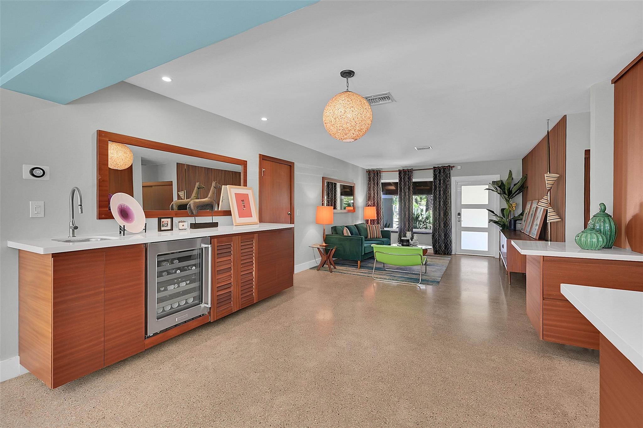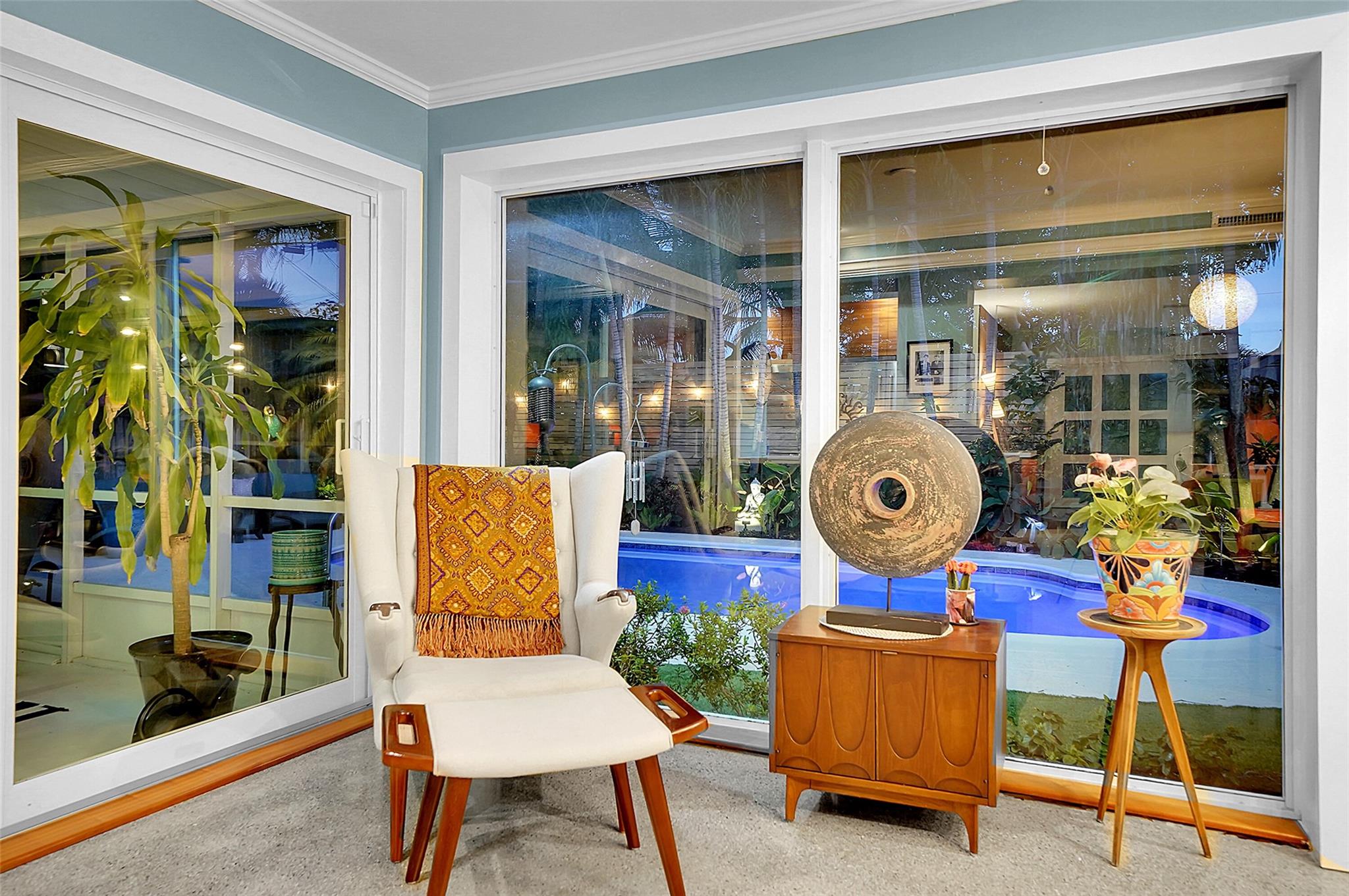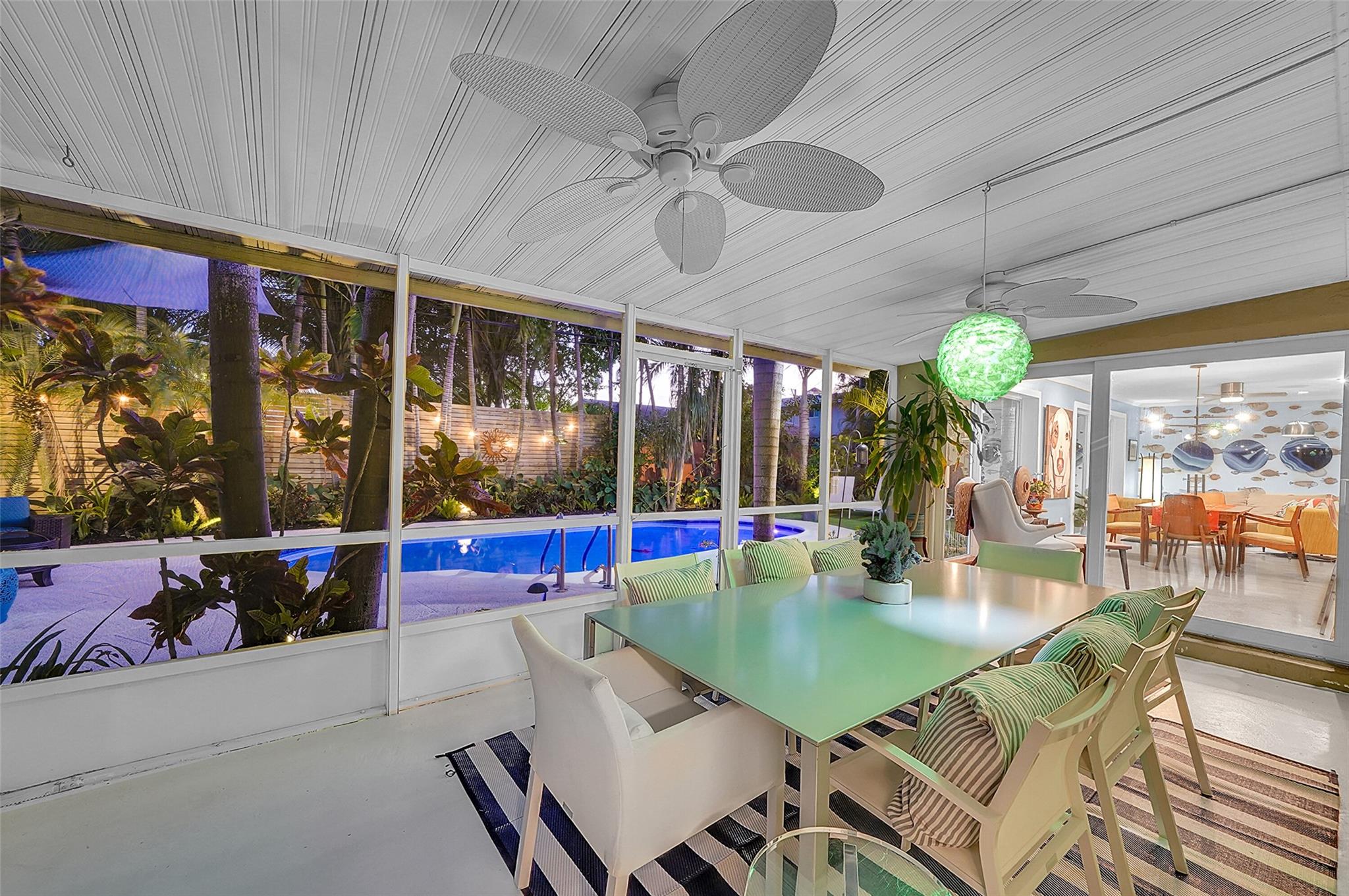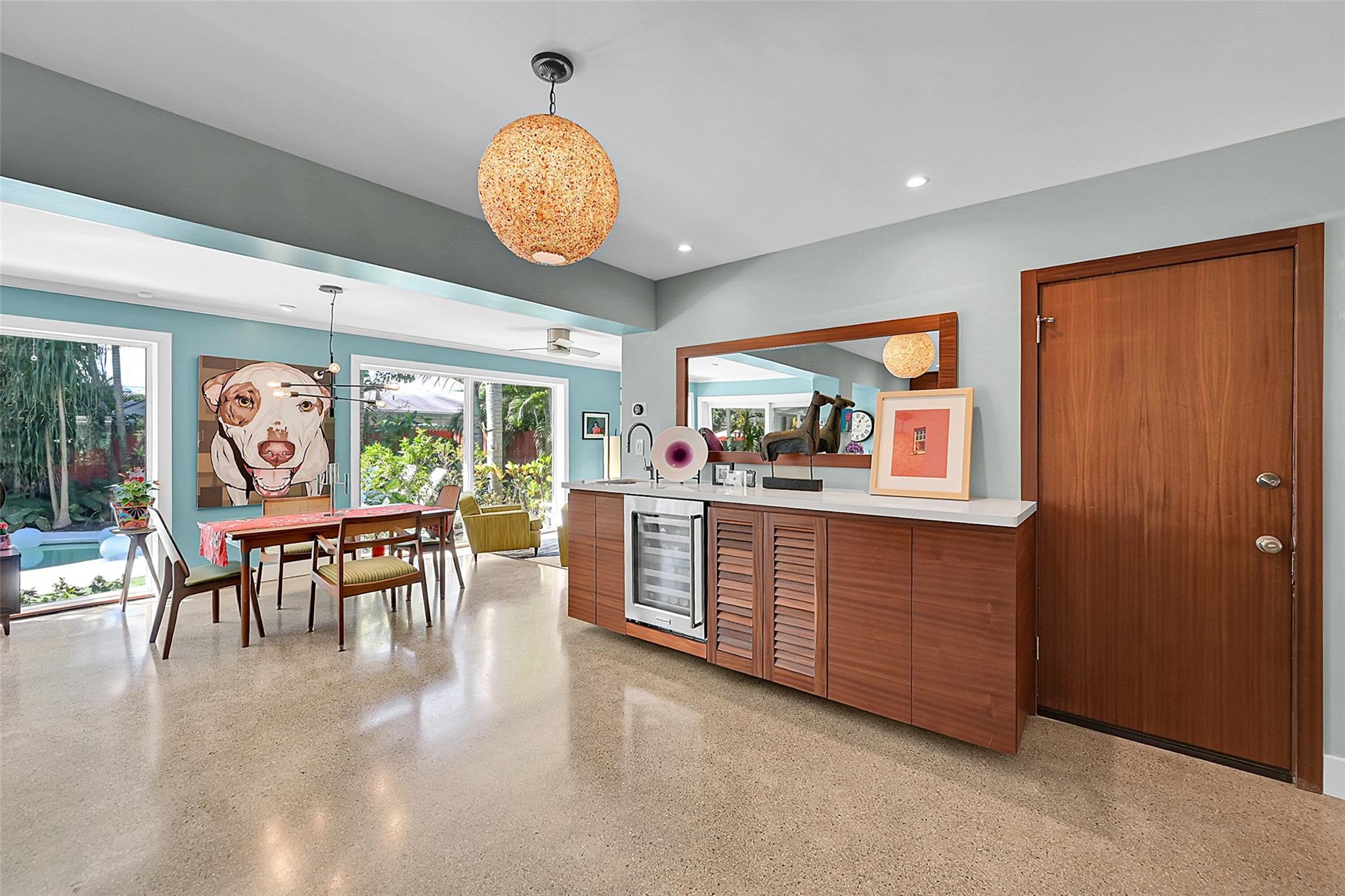 Experience the perfect fusion of mid-century modern design and today’s comforts in this 3BR/2BA Wilton Manors treasure. Ideally located minutes from Wilton Drive, shopping, dining, and the beaches. Light-filled open concept living showcases a stunning kitchen with stainless steel appliances, custom cabinetry, and terrazzo floors that flow throughout. Expansive impact doors and windows frame lush tropical views. Recent upgrades include a 2025 roof, renovated baths, and whole-house generator hook-up. The flexible 3rd bedroom doubles as a den or office. Relax on the screened porch overlooking landscaped gardens, dramatic lighting, and heated pool. A 1-car garage adds convenience to this private retreat making it a perfect blend of style, function, and location.