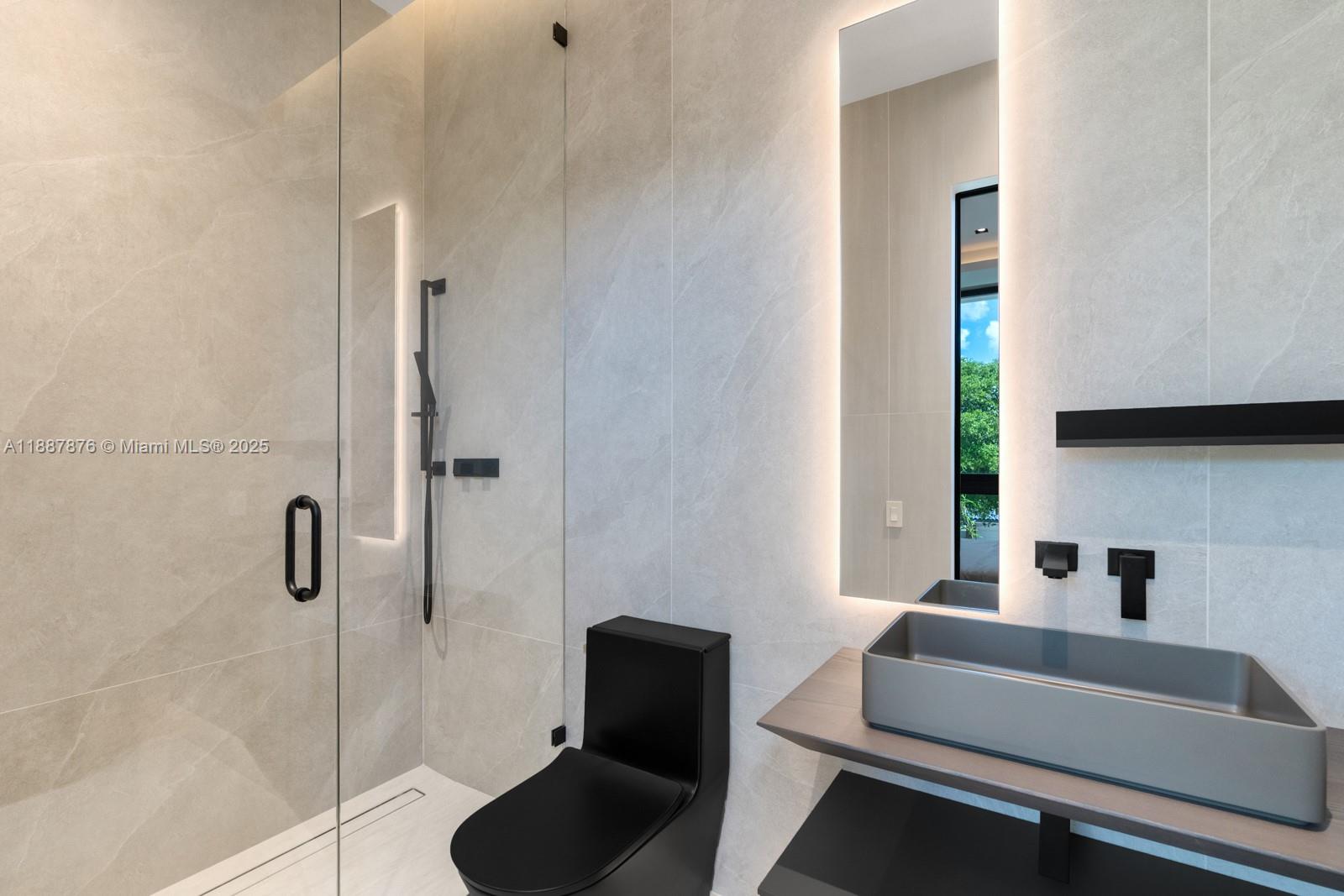 This waterfront estate in gated Keystone Point blends architectural excellence with modern flair. Designed by PRAXIS Architecture + Design and built by Gamma Construction, the never-lived-in residence offers nearly 6,000 sq ft with 6 bedrooms and 5.5 baths. Floor-to-ceiling impact windows bathe the two stories in natural light, highlighting interiors by CB Design with custom closets and spa-like baths. The Italian Mia Cucina kitchen pairs Wolf and Sub-Zero appliances, while a Crestron smart system ensures effortless living. Outdoors, 75 ft of water frontage provides deep-water dockage and direct bay access, alongside a heated saltwater pool, spa, and lush landscaping for privacy. All minutes from Bal Harbour Shops and Miami Country Day School.