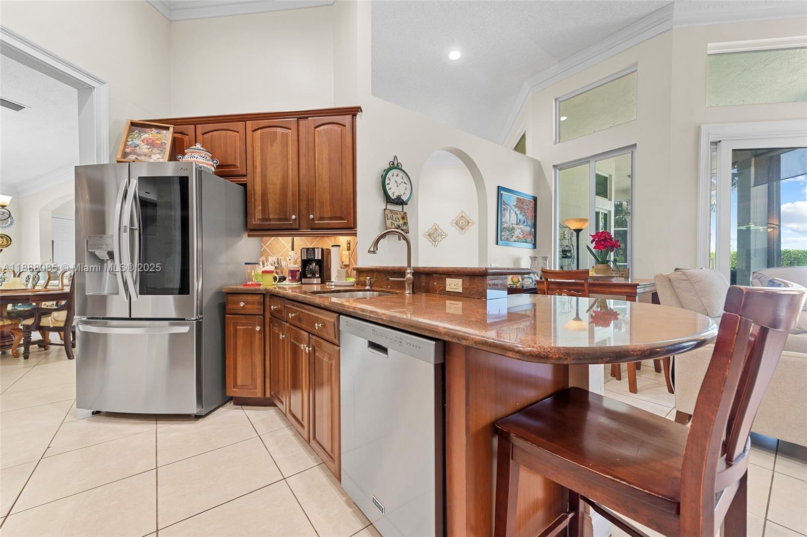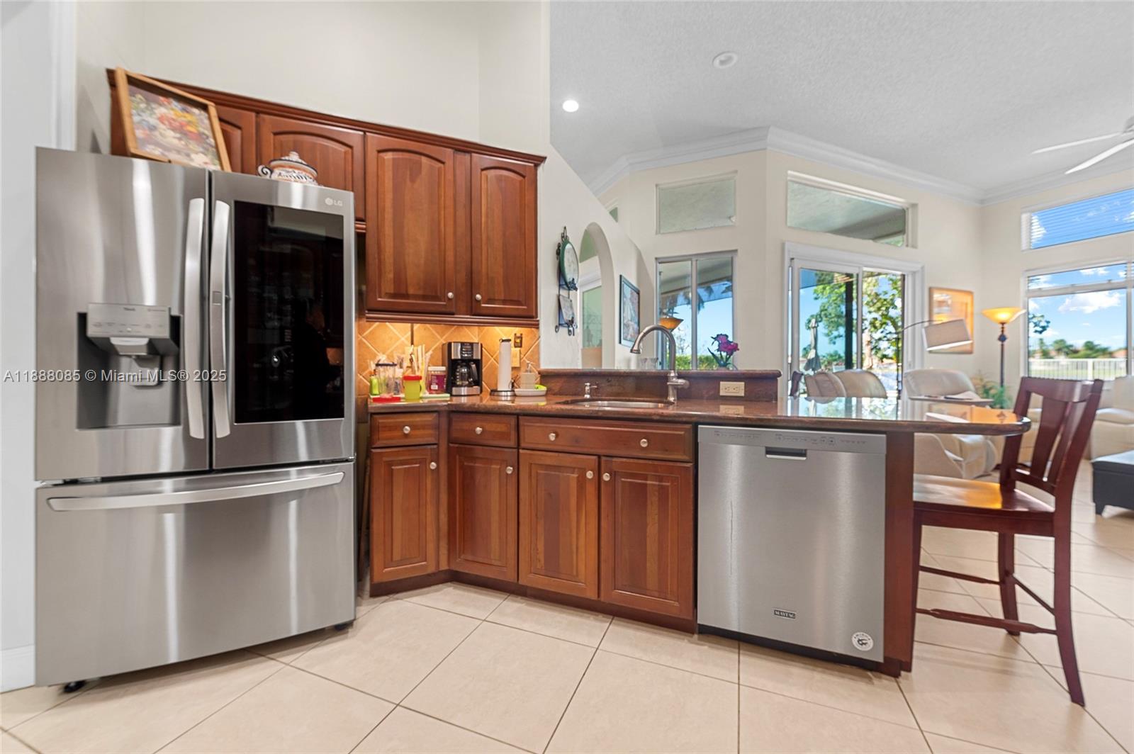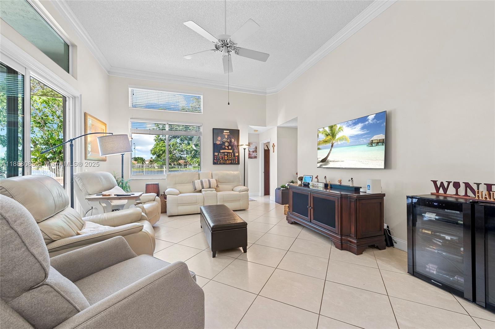 Set on one of Weston’s largest lakes at The Lakes. Standout home perfect for a large family and effortless indoor-outdoor entertaining. 4BR, 3.5BA with a 2008 barrel-tile roof, impact windows and garage door, and accordion shutters. Bright, open interiors with plenty of natural light. All-porcelain flooring and LED lighting. Kitchen remodeled (2018) with granite, LG refrigerator, Samsung range (2018), and GE Profile microwave (2019). Primary suite with two walk-in closets and a 2018 spa bath with marble floors, large shower, and separate soaking tub. Resurfaced pool & spa (2024) with new lighting/handrails and a new heater (2024), plus fenced yard. Tankless water heater (2023). Guard-gated, with pool, playground, and fields. Prime Weston location near A-rated schools, parks, and shopping.