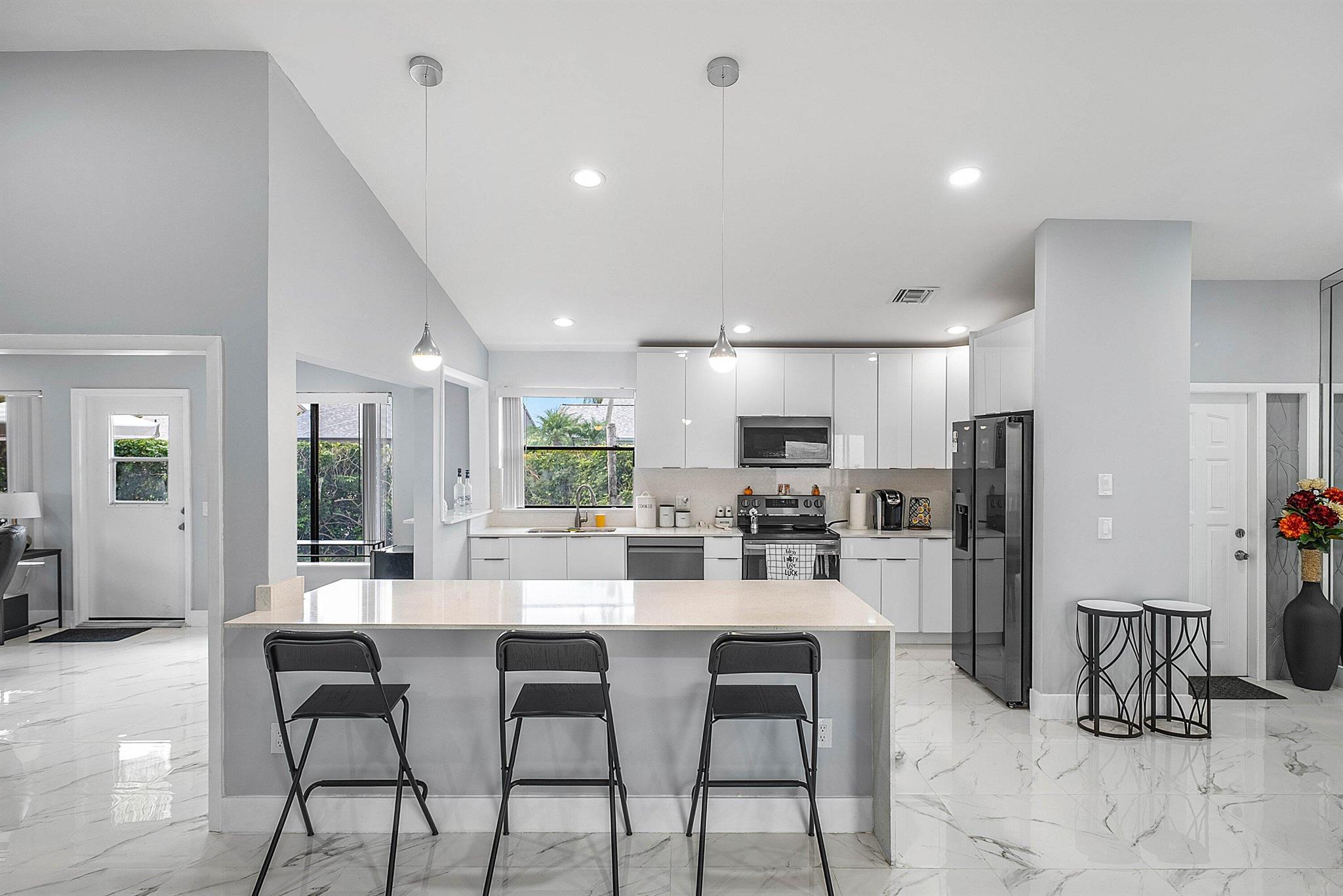 Welcome to this beautifully renovated 3 bedroom, 2-bath home with a spacious two-car garage, nested in the highly sought after gated community of Rainberry Bay in Delray Beach. This split floor plan home sits on a corner lot and features: brand new floors, completely renovated kitchen, new appliances, updated bathrooms, new AC system, new water heater and a newer roof. HOA amenities include tennis courts, pools, gym, clubhouse etc.