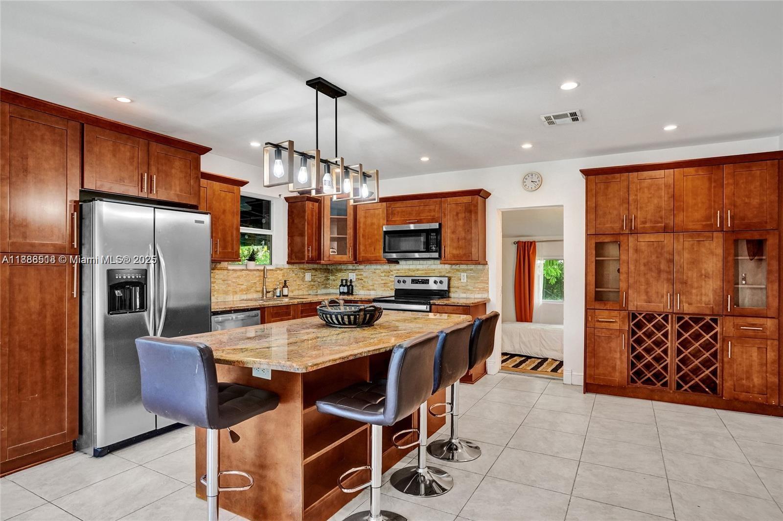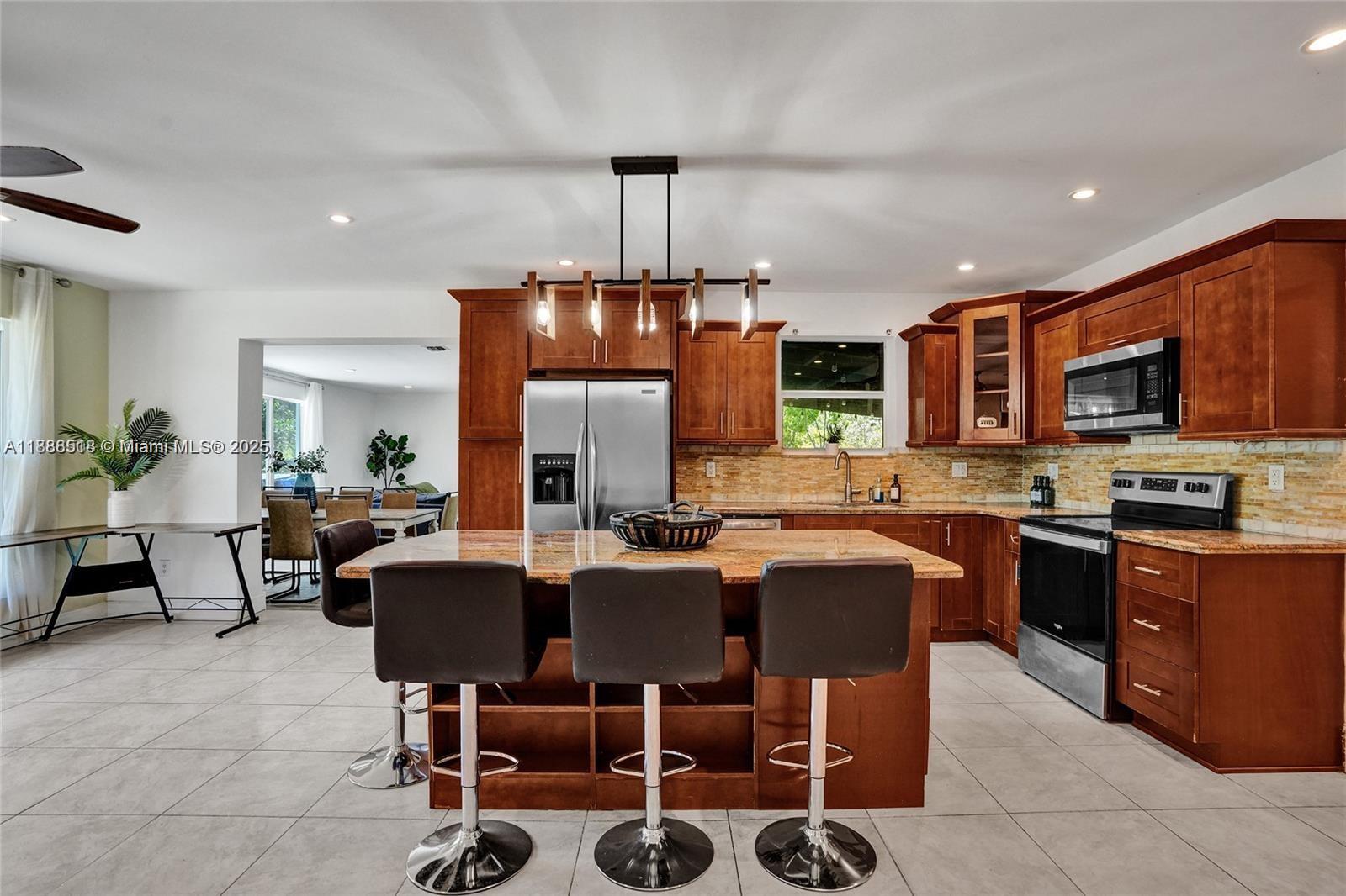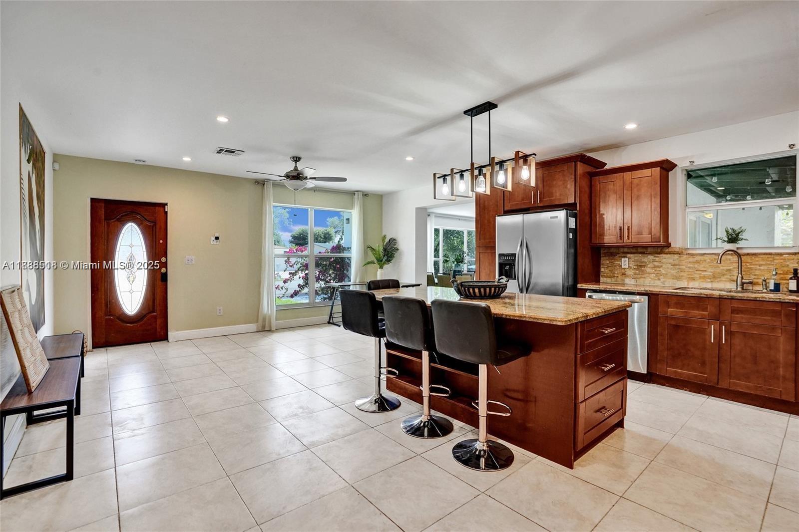 This property qualifies for a closing cost credit up to $8,475.00 through the Seller’s preferred lender. A remodeled home in a prime location—just 15 minutes to Aventura Mall, 3 minutes to I-95, and 15 minutes to the beach. Move-in ready, furnished or unfurnished, with a NEW ROOF (2025)! Enjoy an open floor plan with a spacious kitchen featuring granite countertops, brand new stainless steel appliances, a large island, beautiful lighting, and tons of natural light. Includes impact windows, tankless water, newer HVAC unit. The large fenced yard is perfect for pets and includes a storage shed. Ideal for investors looking for cash flow through seasonal rentals. Underground electric recently installed by FPL to reduce power outages during storms.