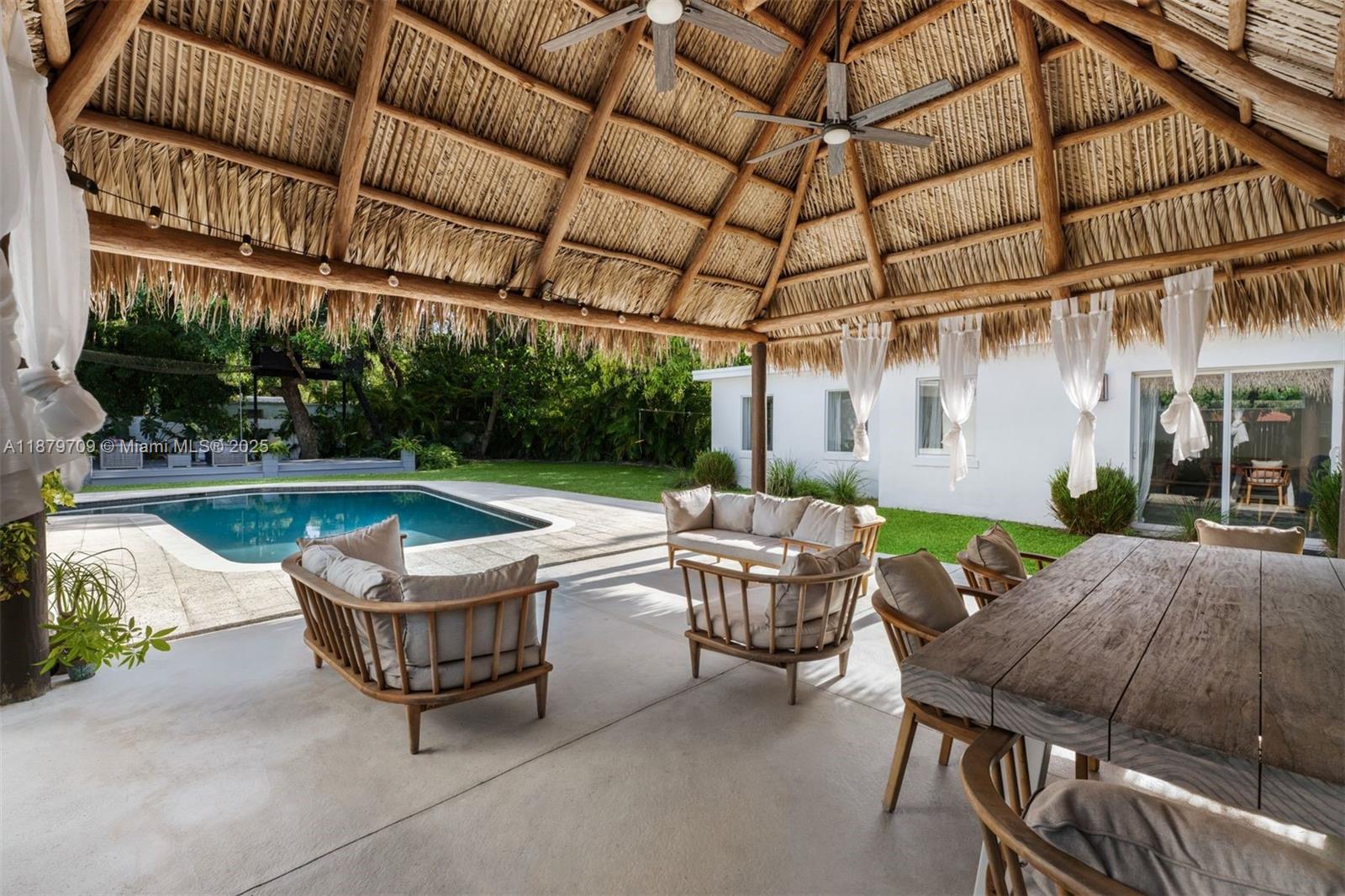 Turn-key gated Mimo estate on an expansive 14,878 SF lot offering exceptional privacy. This 5-bedroom, 4.5-bathroom residence features a thoughtful layout with a dedicated home office and seamless indoor-outdoor flow. The oversized backyard is a sanctuary with mature trees, lush landscaping, and a sparkling pool—perfect for entertaining or unwinding. Enjoy multiple outdoor living areas including a covered patio and private outdoor shower. A detached guest house provides ideal space for visitors or flexible use. Additional features include a covered carport with EV charger, secure gated entry, and abundant afternoon light throughout the home. Designed for modern living and move-in-ready comfort, this residence delivers privacy, functionality, and timeless appeal.