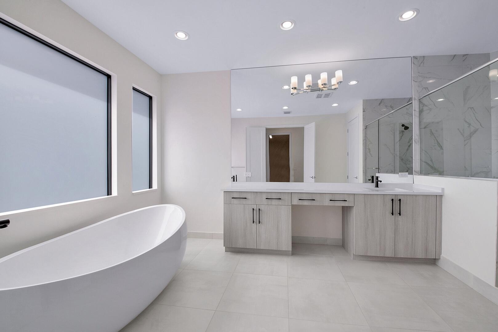 Welcome to this stunning Polynesia model in the sought-after community of Lotus Palm. The foyer leads to a formal living room with soaring two-story ceilings and an elegant formal dining area. The spacious family room flows seamlessly into an open chef's kitchen featuring quartz countertops, a center island with snack bar, stainless steel appliances, double ovens, a 5-burner gas range, and a sunny breakfast nook. The first floor also offers a cabana bath and a guest bedroom with an ensuite bath and walk-in closet. Upstairs, the luxurious primary suite impresses with a double-door entry, coffered ceiling, expansive walk-in closet, and his and hers bathrooms.