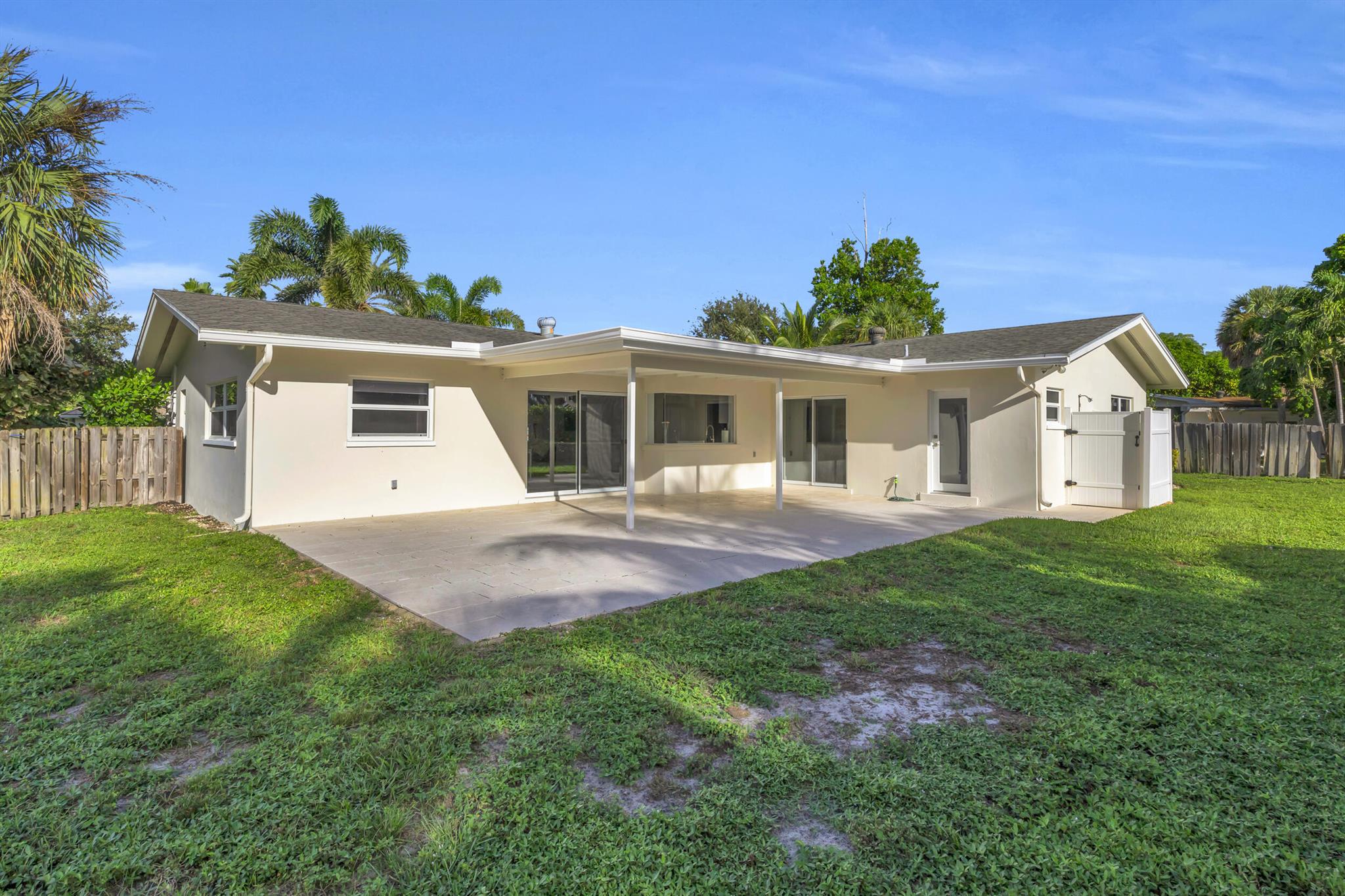 Charming and well-located CBS home in popular Tequesta Country Club. This updated 3-bedroom home is situated on a premier corner lot in a quiet, secluded part of the community. 40 Pinetree feels light, bright, and inviting. Recent improvements include an open kitchen, modernized bathrooms, wood-look tile flooring, and wood floors in bedrooms. Enormous, fenced-in back yard includes a firepit, travertine patio, and outdoor shower. Most windows are hurricane impact glass. Incredibly efficient, split floor plan makes this home feel bigger than the square footage. Useful office/den space and large indoor laundry room add value. Tequesta CC has a private boat ramp and day dock for residents. Golf cart-friendly community with direct access both Turtle Creek Club and Tequesta Country Club.