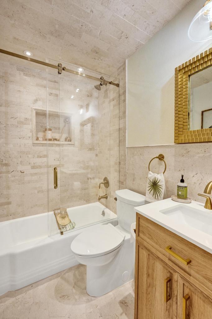 Coastal Elegance Meets Designer Luxury in This Fully Renovated Sanctuary Step into this exquisitely designed and fully renovated 3-bedroom, 3-bathroom retreat, masterfully curated by renowned interior designer Jeanne Michelle of Palm Beach, Florida. This turnkey coastal haven blends refined luxury with seaside charm, offering a move-in-ready experience where no detail has been overlooked. Every space is thoughtfully appointed with high-end furnishings, fine antiques, and nature-inspired accents, creating a serene and sophisticated ambiance throughout. Textured wallpaper, grasscloth wall coverings, and natural fiber elements add warmth and depth to each room, while Smeg small appliances and carefully selected designer pieces elevate the home's modern coastal style.
