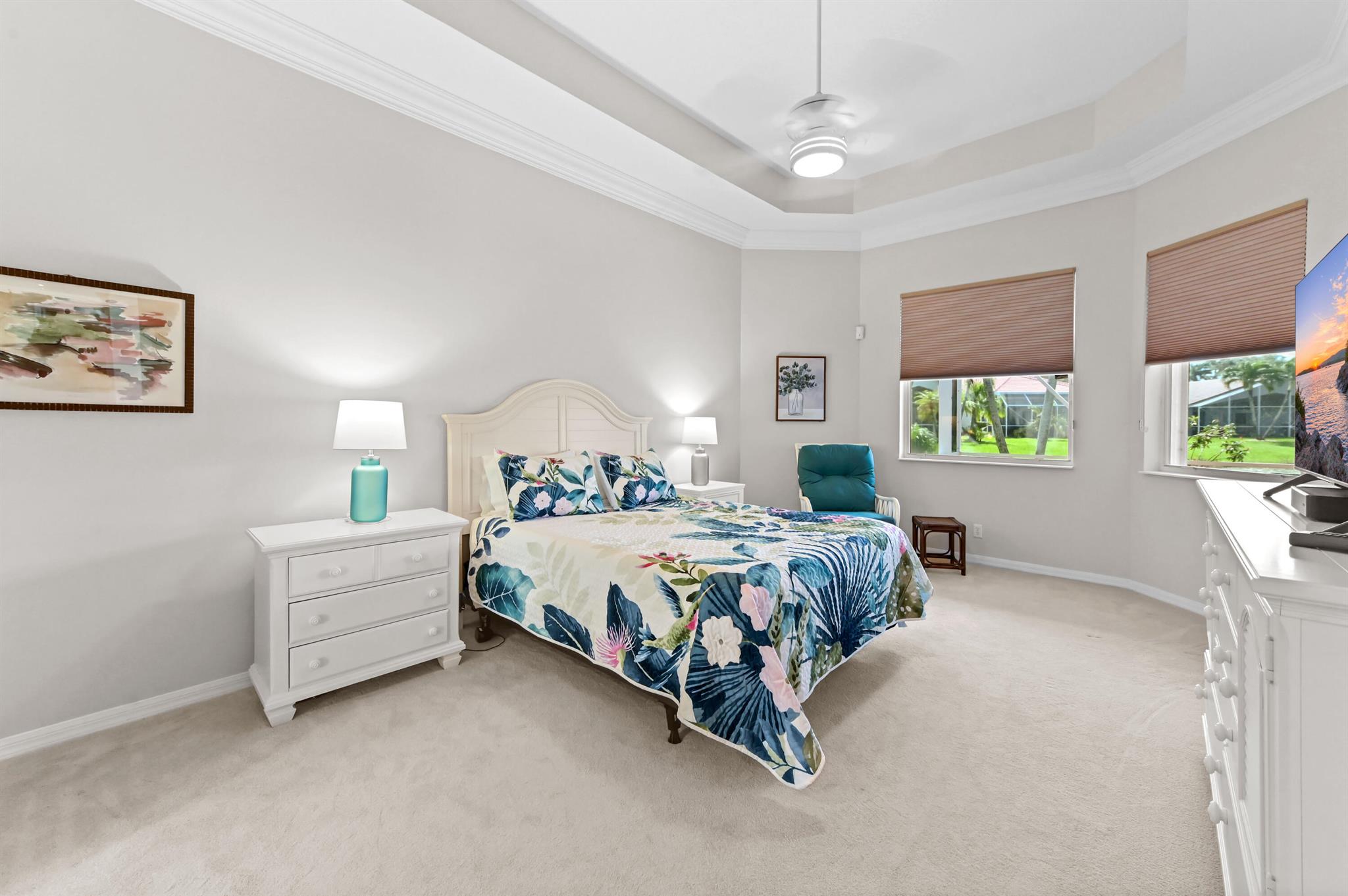 This beautiful residence offers the epitome of the Bellaggio lifestyle, combining modern comfort with stunning water views!Prepare to be captivated by the picturesque, south-facing lake views from this meticulously maintained Novara model. Boasting over 2,000 square feet of air-conditioned living space, this spacious home is bathed in natural light and features high ceilings complemented by elegant crown molding throughout. The entire interior is painted in a light, neutral color, offering a fresh, bright, and move-in-ready feel. Adding to its appeal, the main living areas feature beautiful tile flooring laid on the diagonal, enhancing the expansive, open design.