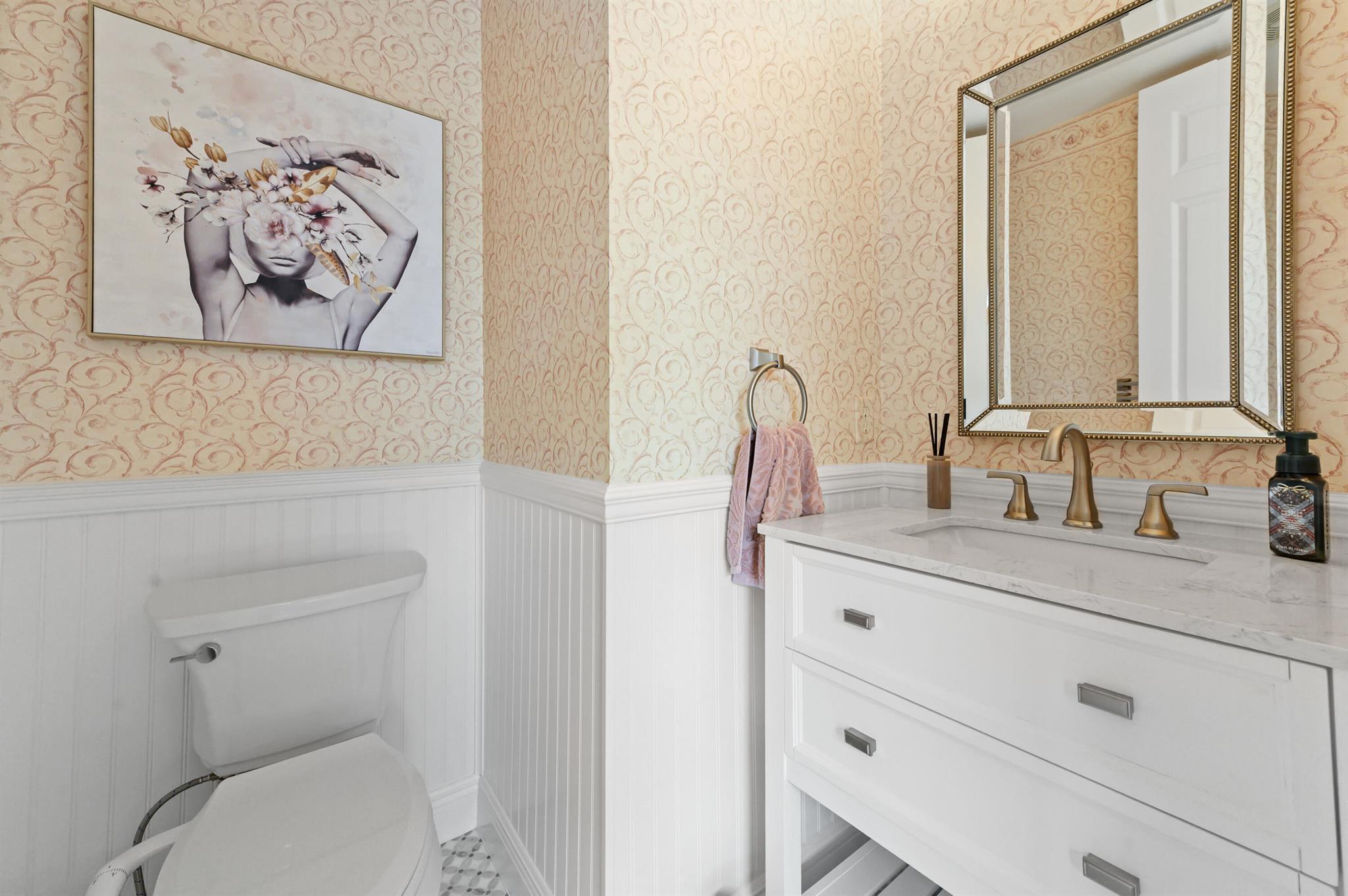 Welcome to this stunning, executive pool & waterfront home, perfectly situated in the highly sought-after, Journey's End community in Lake Worth. NEW ROOF & AC UNIT!!! The luxury begins the moment you pull up the paver driveway, framed by lush tropical landscaping and a beautiful 3-car garage with arched doors. Step inside to a grand, two-story foyer where you are greeted by rich, dark wood-look flooring and elegant wainscoting that lines the beautiful staircase. The main level is designed for sophisticated entertaining, featuring a formal dining room defined by a sparkling crystal chandelier and tasteful trim work.