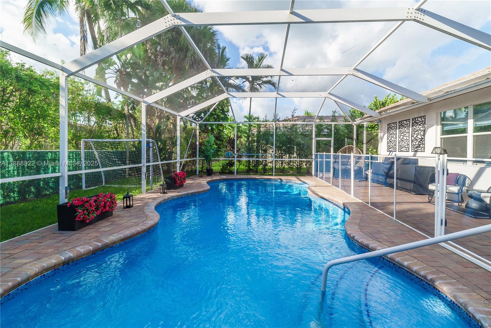 Welcome to Country Glen, one of Cooper City’s most exclusive gated communities. This elegant one-story residence features 5 bedrooms, 3.5 bathrooms, and a 3-car garage. The open floor plan is ideal for families and entertaining, complemented by a lush landscaped yard, screened-in paved patio, and sparkling heated saltwater pool. The elegant primary suite showcases a private sitting area and expansive closets, complemented by rich laminate wood flooring throughout the home and beautifully finished tile in the bathrooms. Community amenities include 24/7 security, parks, tennis, and basketball courts. Top-rated public and private schools, shopping, and parks are nearby, with houses of worship within walking distance. Move-in ready for its new owners.